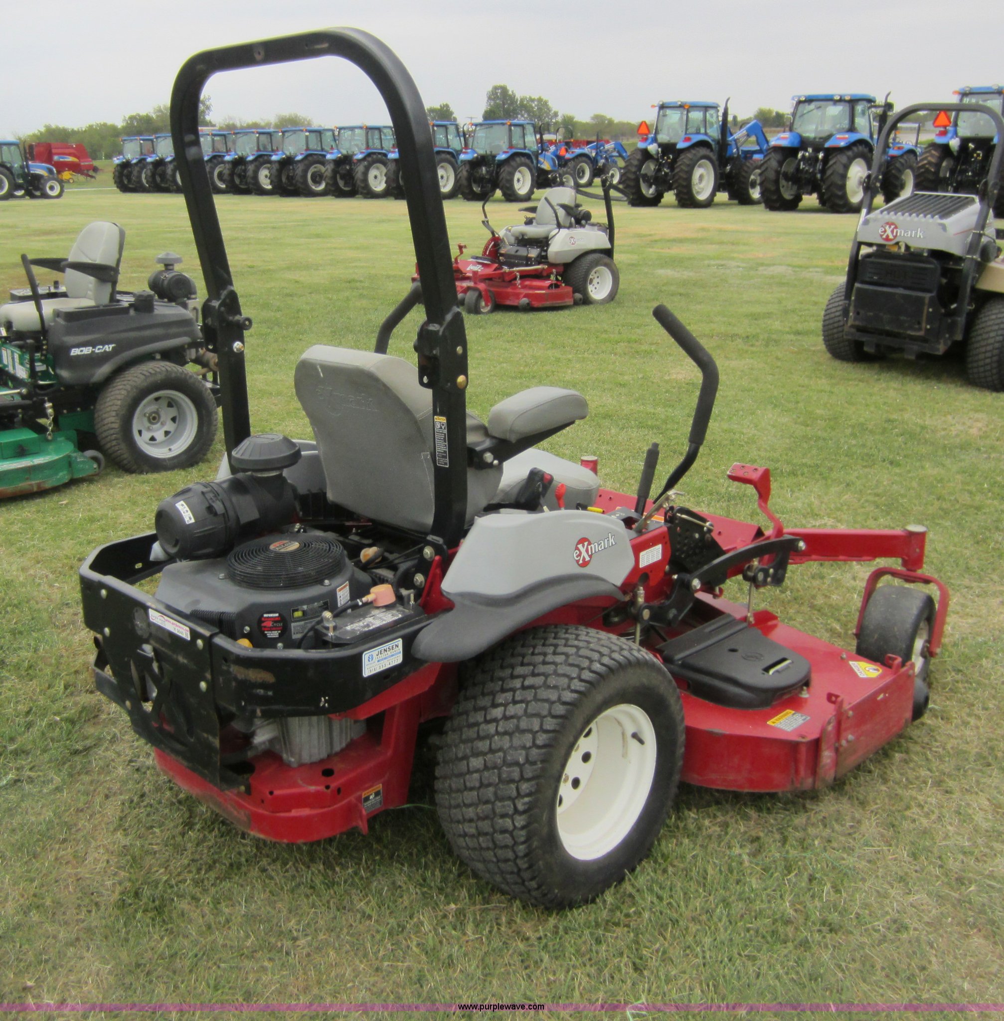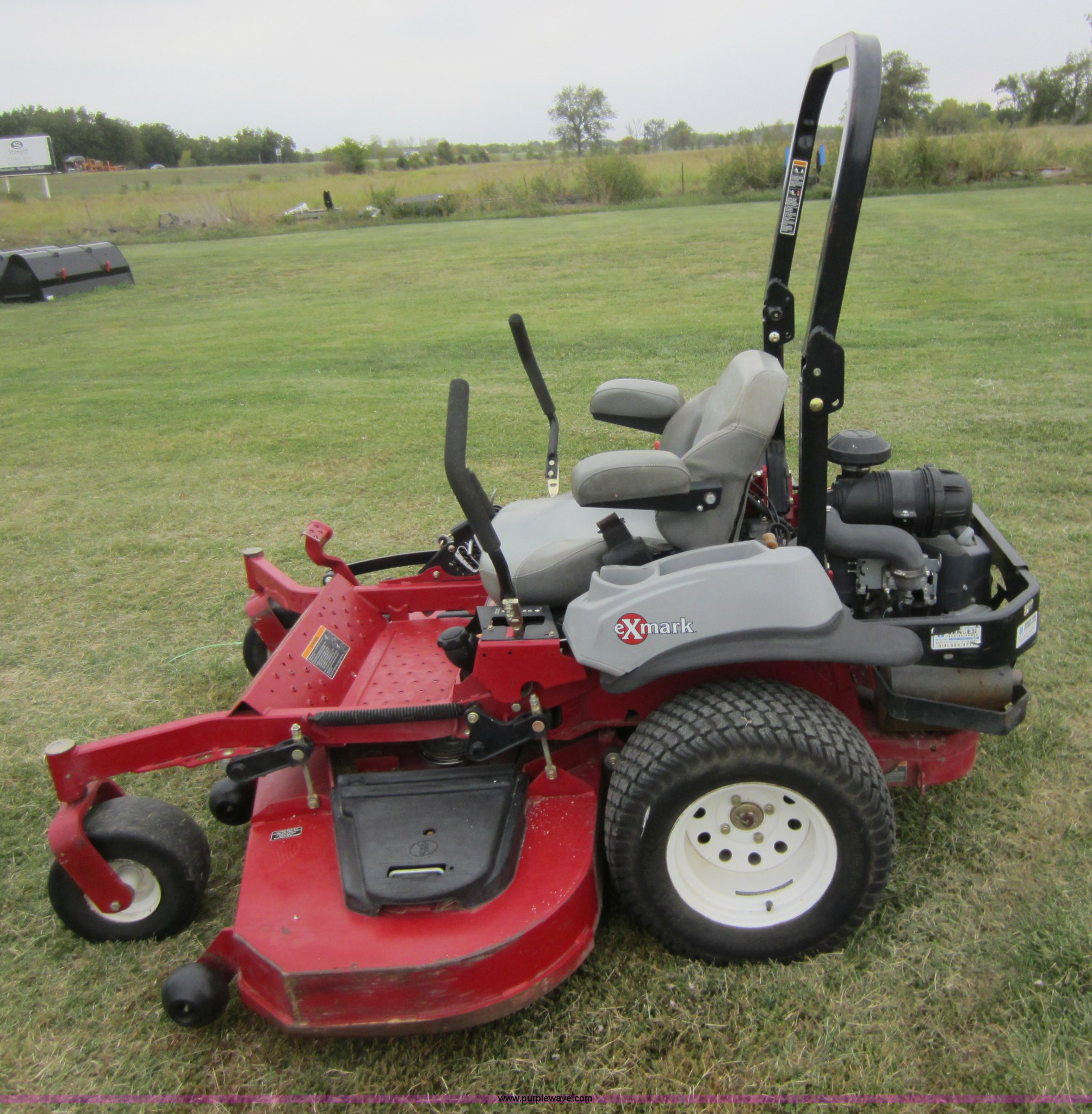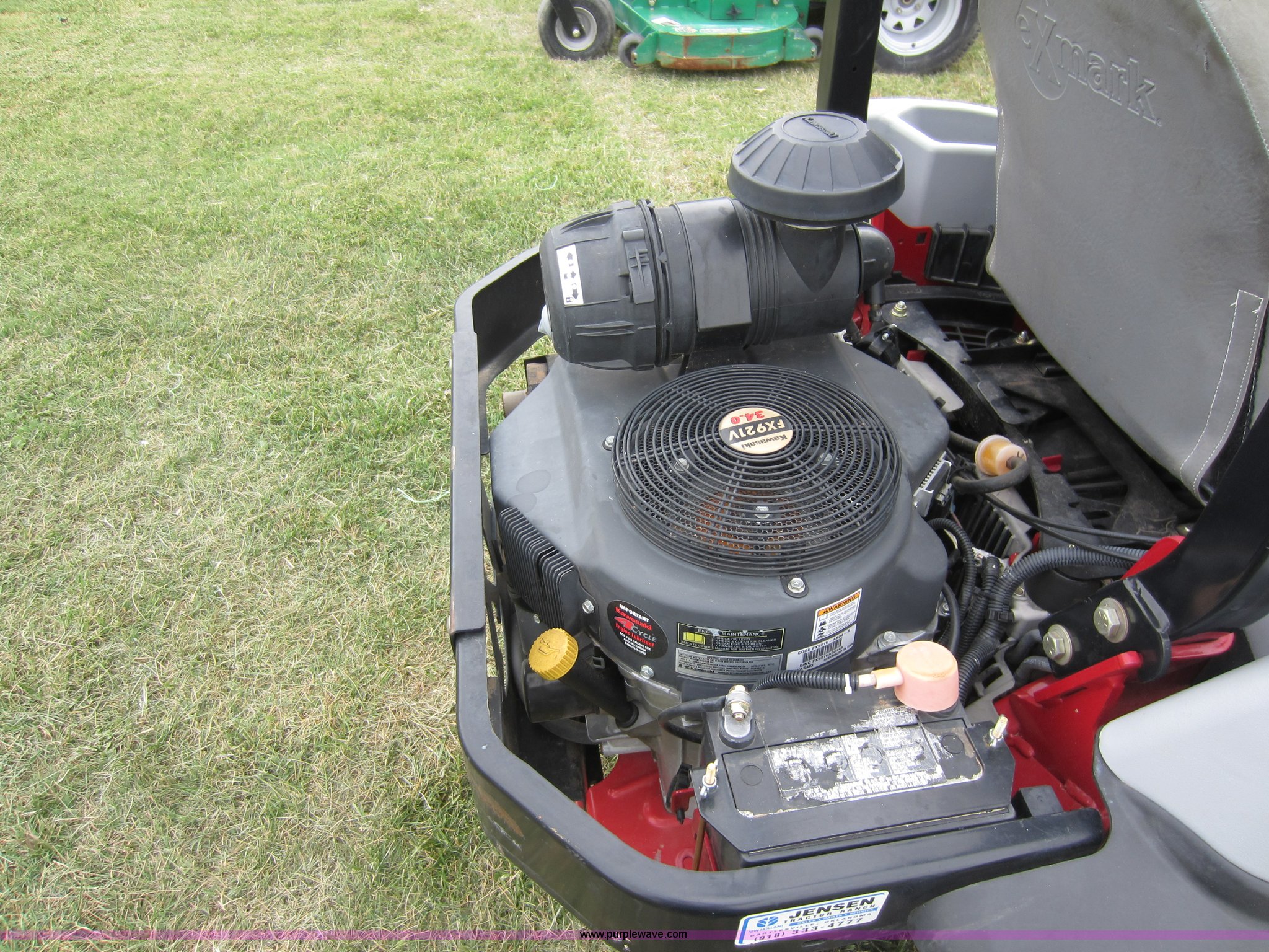 Purple Wave is selling a used Commercial Turf Mower in Oklahoma. This item is a 2009 Ex Mark commercial lawn mower with the following: 616 hours on meter, Model LZZ34KA726, 72" deck, Kawasaki 34 HP gas engine, Hydrostatic transmission, Mulch kit, Serial 858013