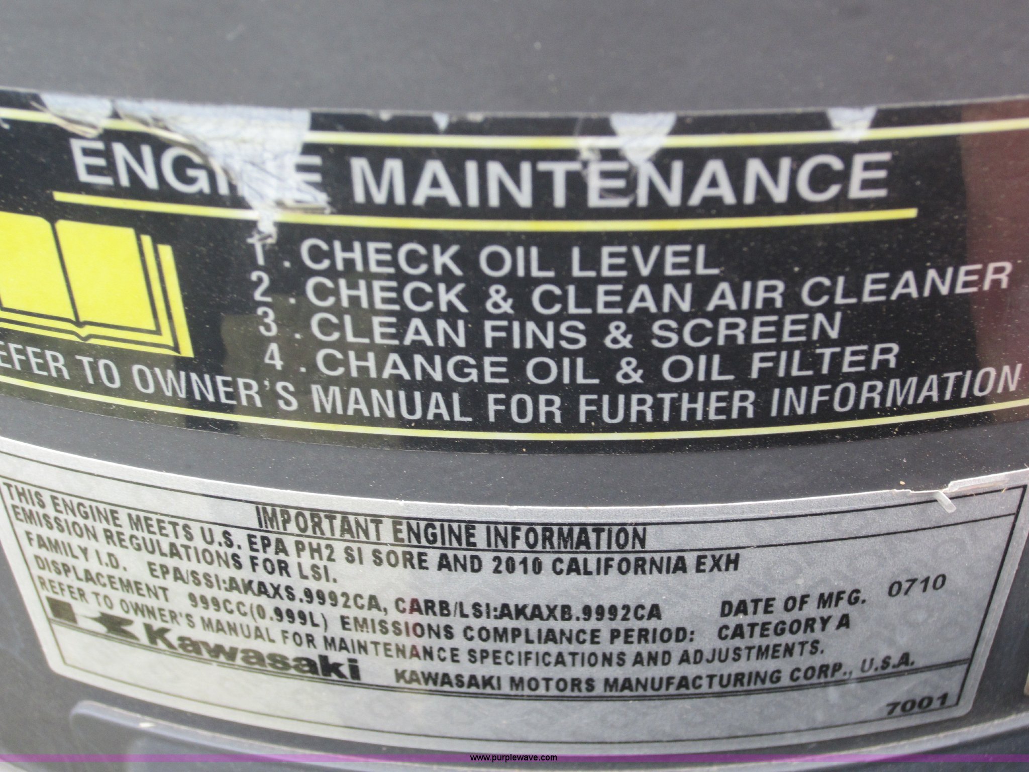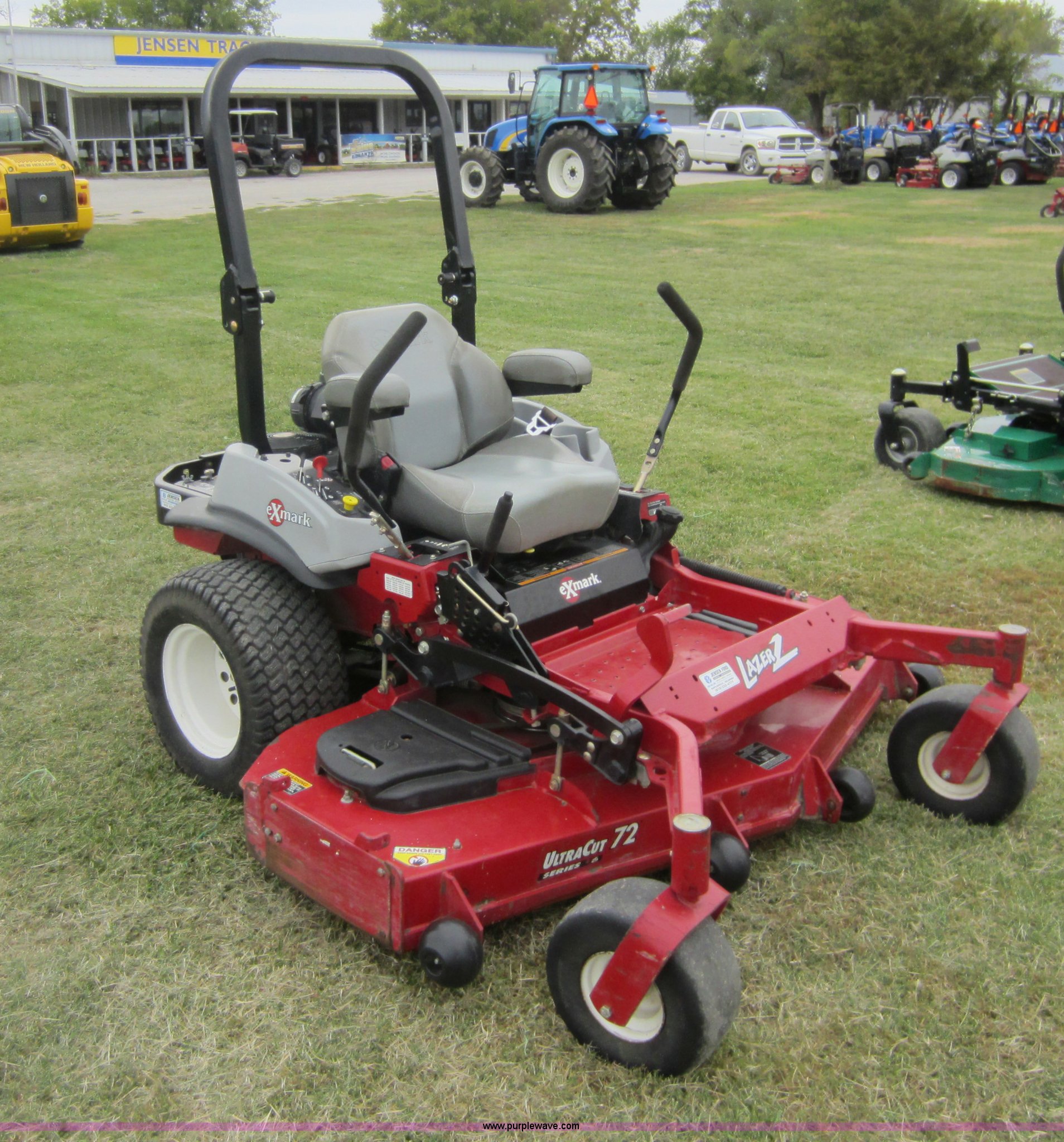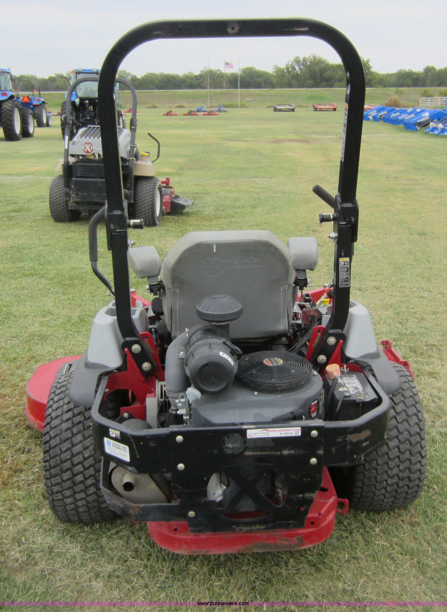 Purple Wave is selling a used Commercial Turf Mower in Oklahoma. This item is a 2009 Ex Mark commercial lawn mower with the following: 616 hours on meter, Model LZZ34KA726, 72" deck, Kawasaki 34 HP gas engine, Hydrostatic transmission, Mulch kit, Serial 858013