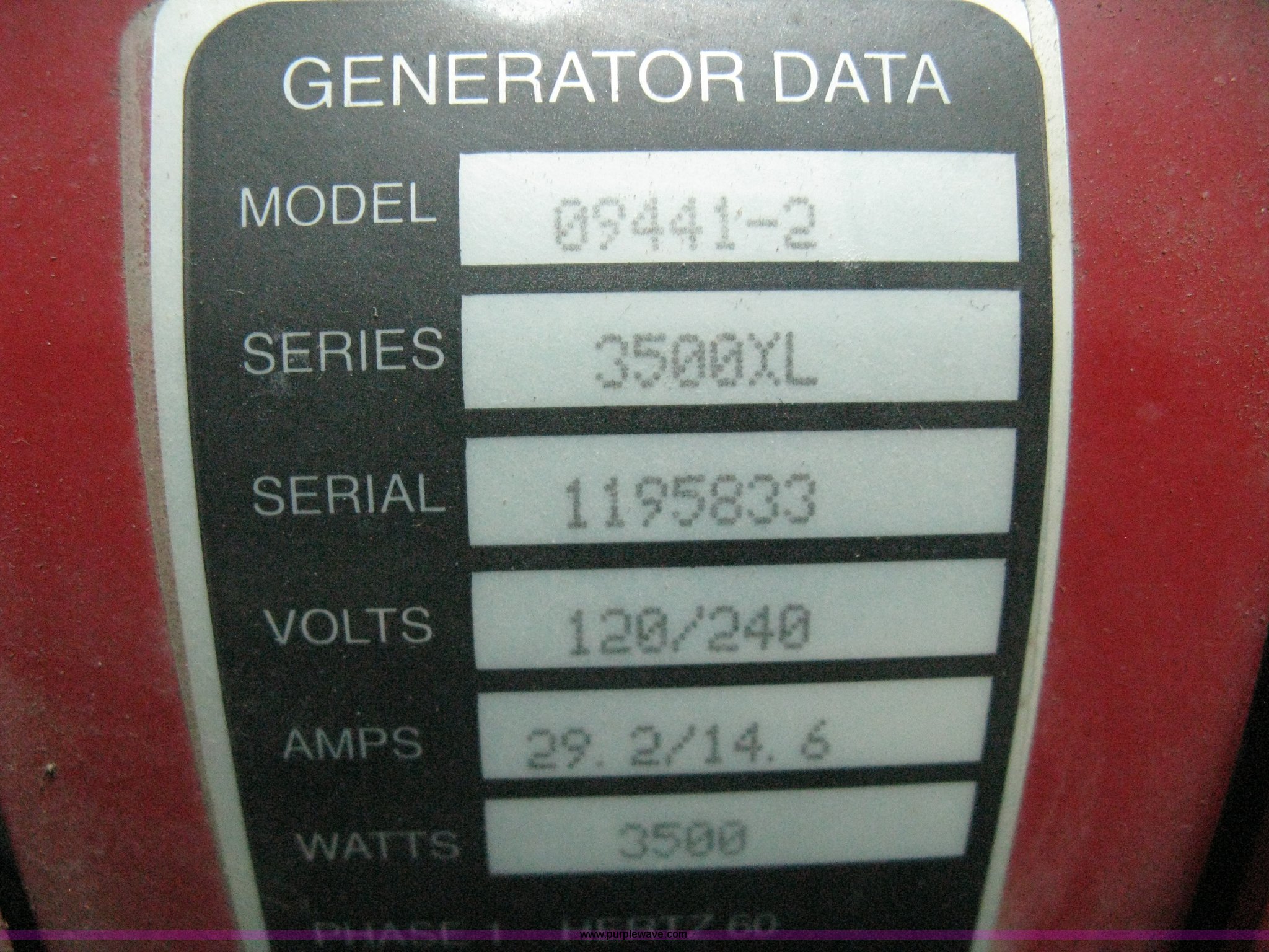 Generac 3500XL generator has sold in Sedgwick, Kansas for $242. Item M9005 sold on October 31st, 2012.