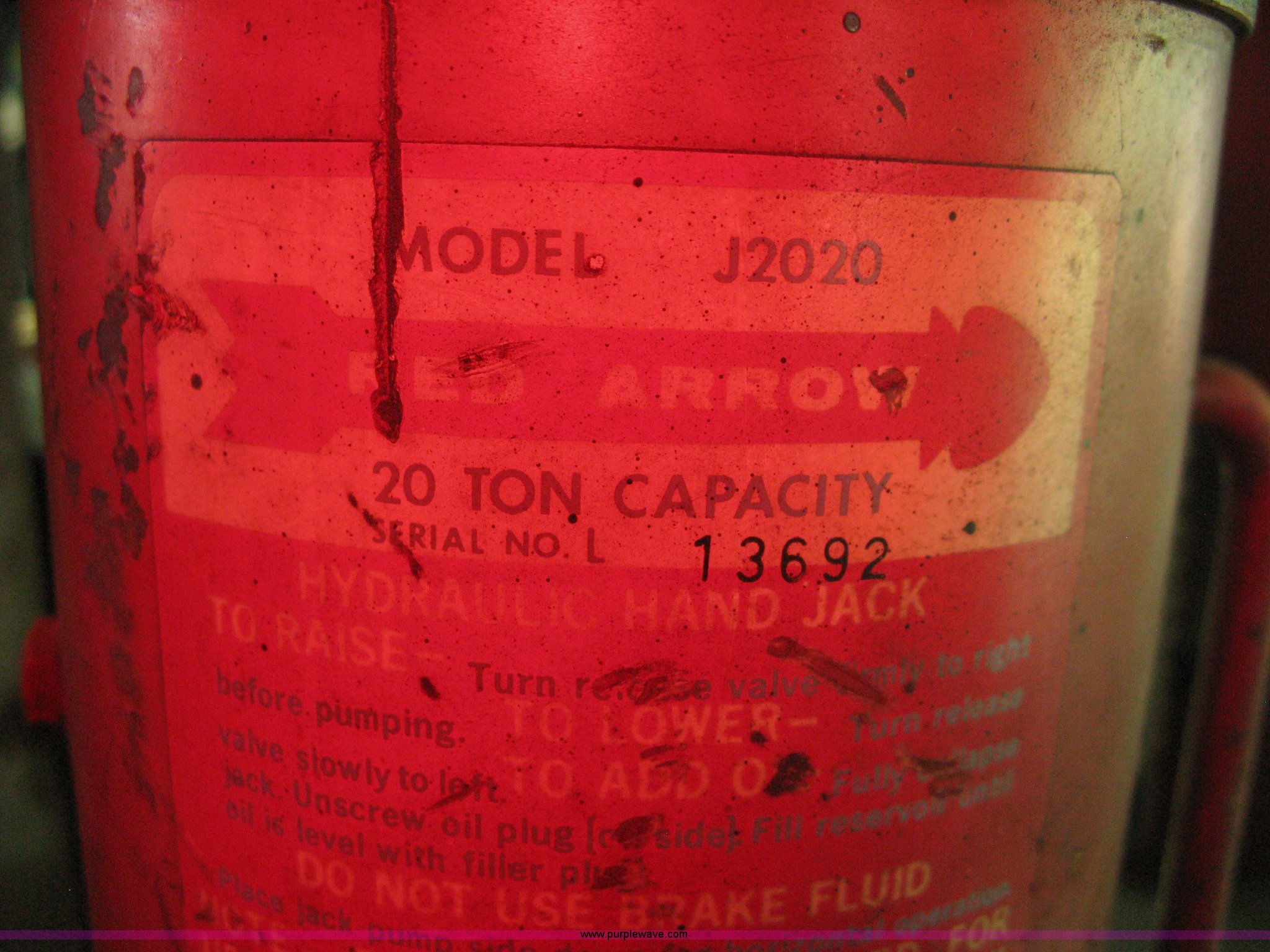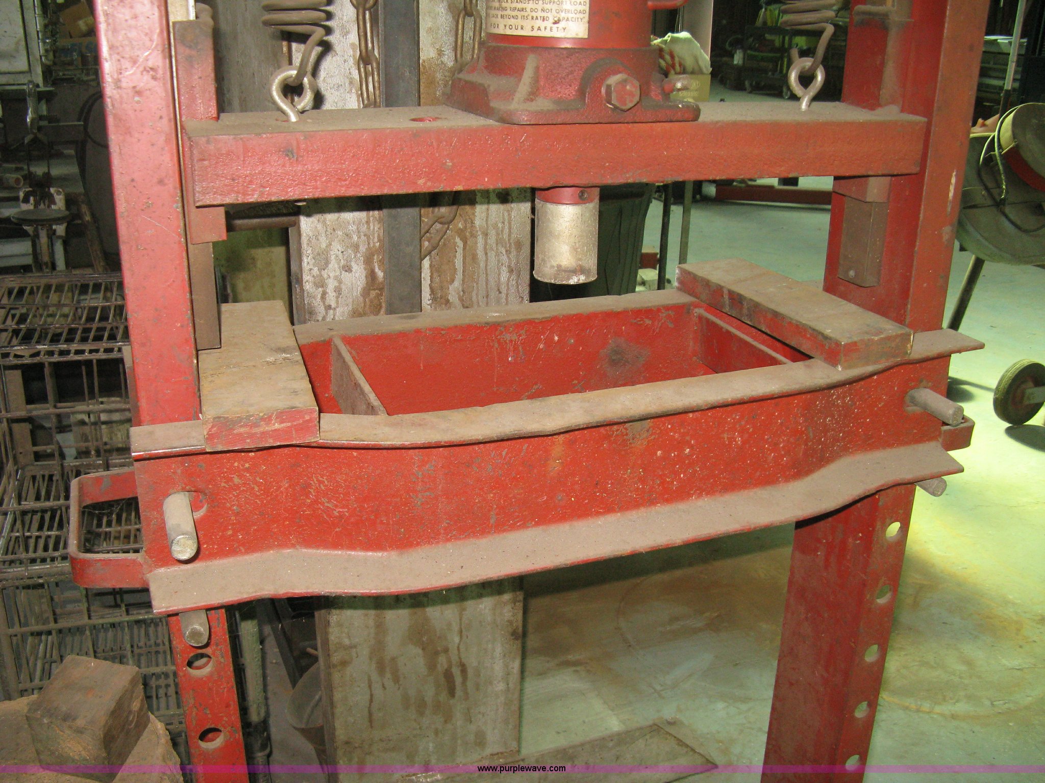 Purple Wave is selling a used Tools in Kansas. This item is a Red Arrow 30 ton hydraulic press with the following: 20 ton hydraulic hand jack, Adjustable height table, Serial U-14275