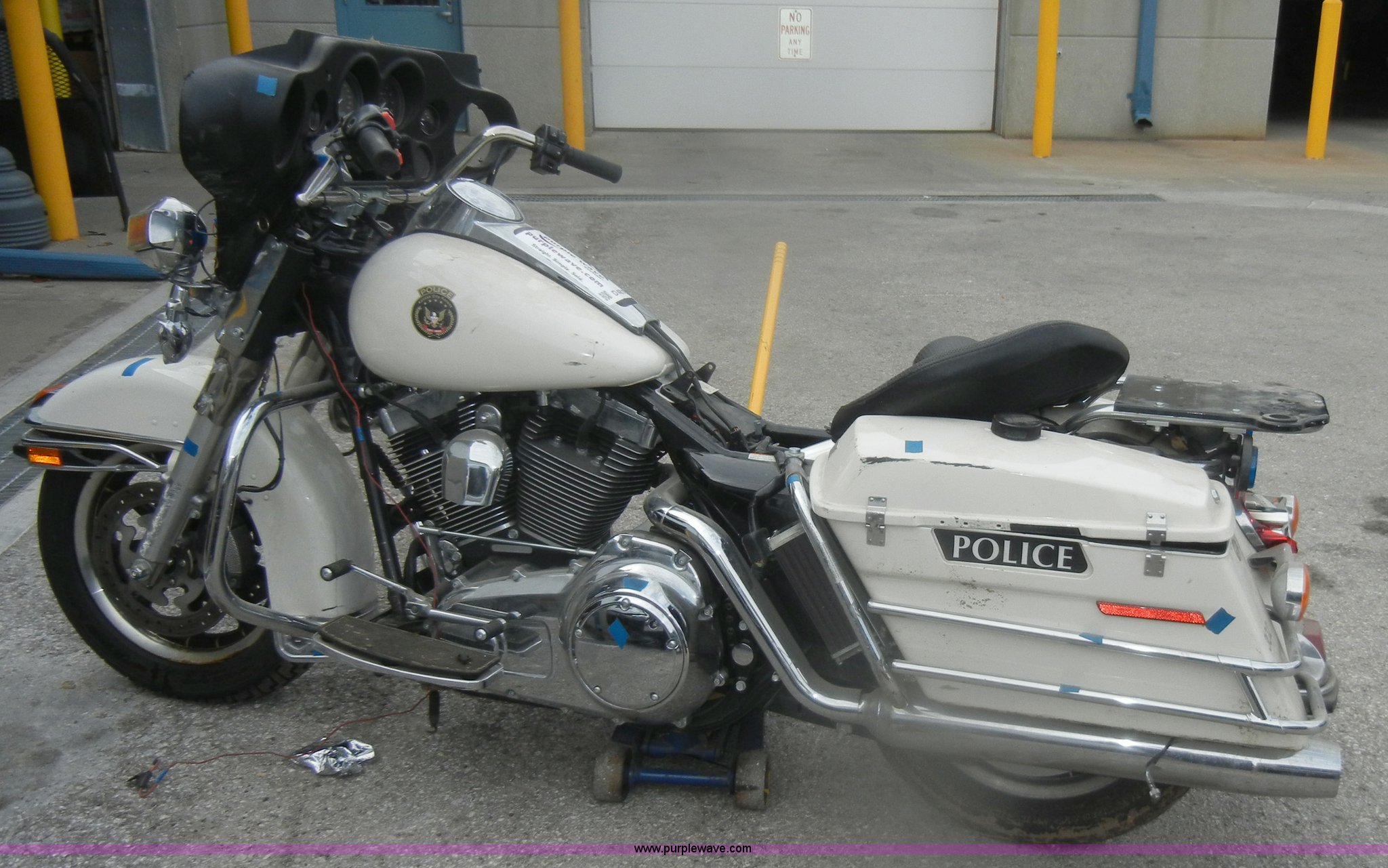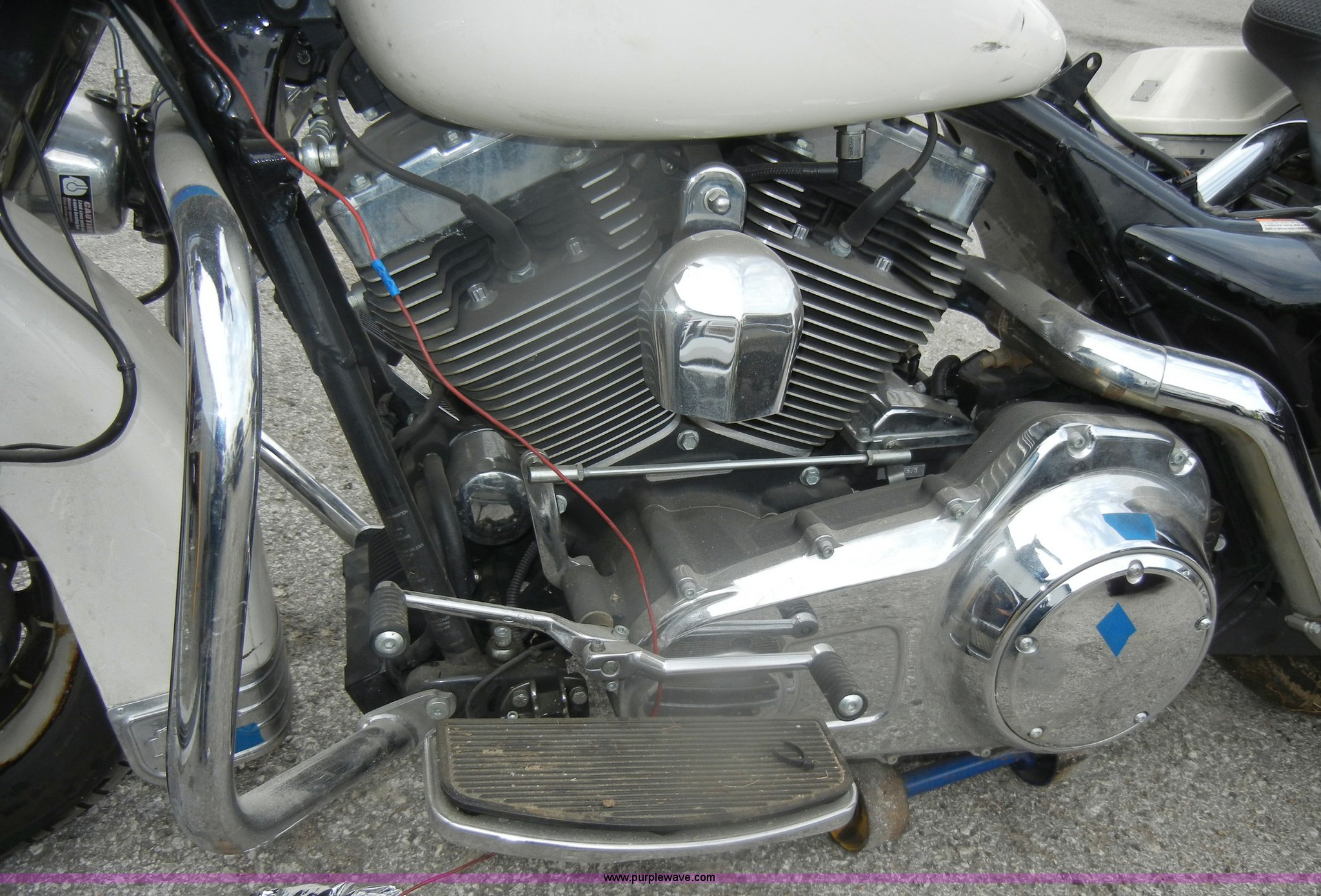 Purple Wave is selling a used Motorcycle in Kansas. This item is a 2008 Harley Davidson FLHTPI motorcycle with the following: 5,495 miles on odometer, Six speed transmission, Disk brakes, MT90B16 M/C tires, Flat, Keys, Non-operational, has been wrecked, Electrical system damaged, Missing parts, Saddlebags damaged
