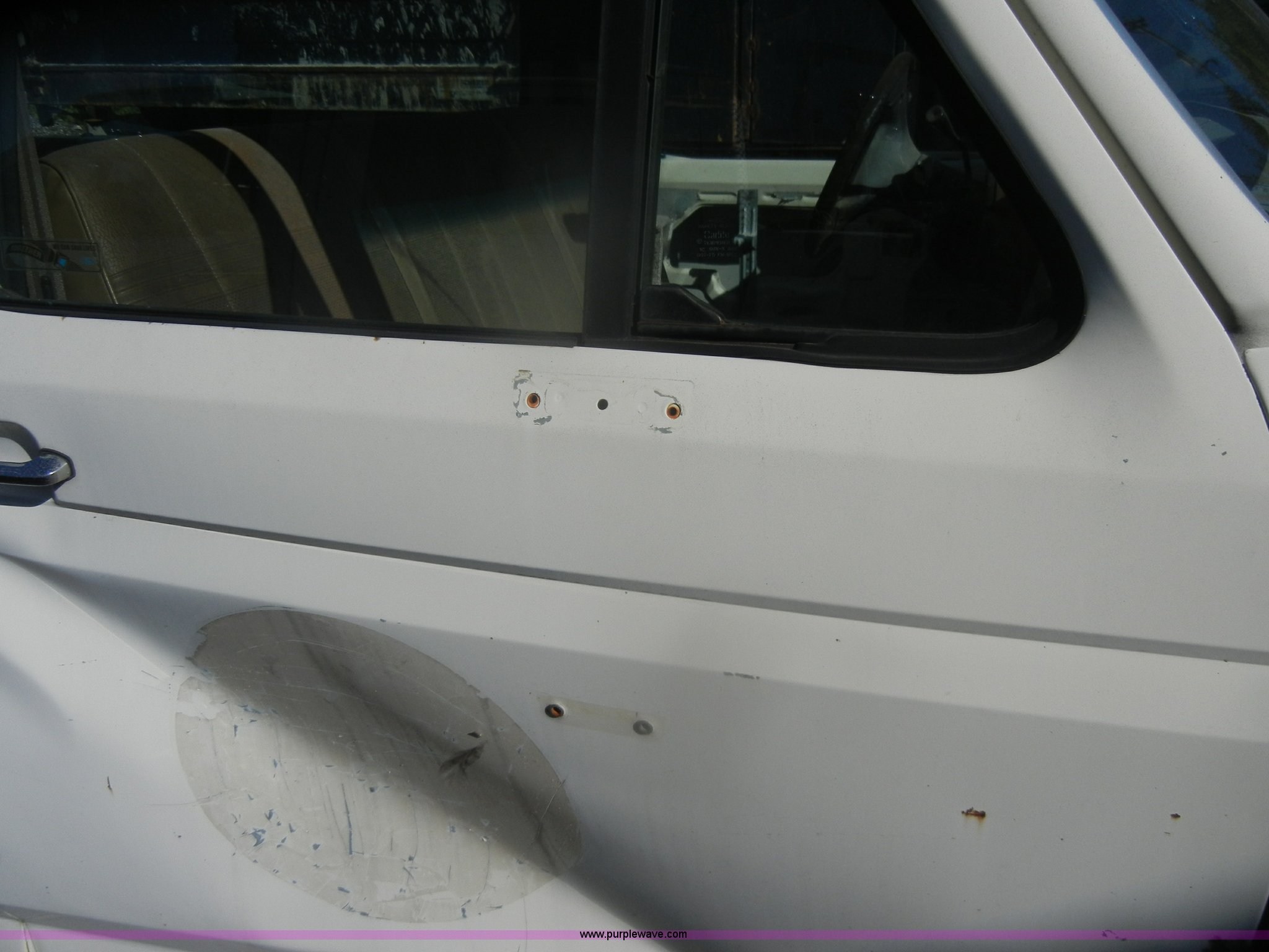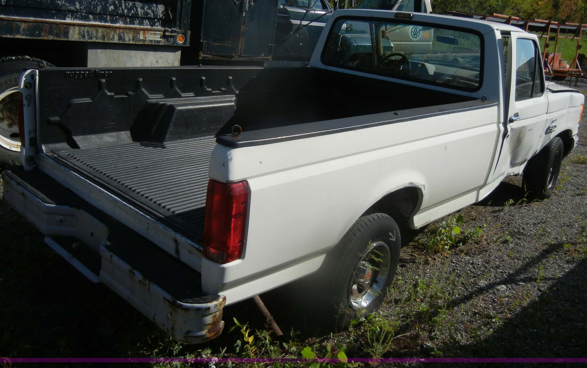 Purple Wave is selling a used Passenger Vehicle in Kansas. This item is a 1991 Ford F150 Custom pickup truck with the following: 72,205 miles on odometer, 4.9L I6 EFI gas engine, Automatic transmission, Heat, AM/FM, Manual windows and locks, Vinyl interior, Dual fuel tanks, Rugged bed liner, Ball hitch, 235/75R15 tires, Flat tires, Interior/exterior cosmetic damage, Cracked windshield, No tailgate, Dents and scratches, Paint peeling/chipping, Missing side mirrors, Will not start, must be towed, No keys
