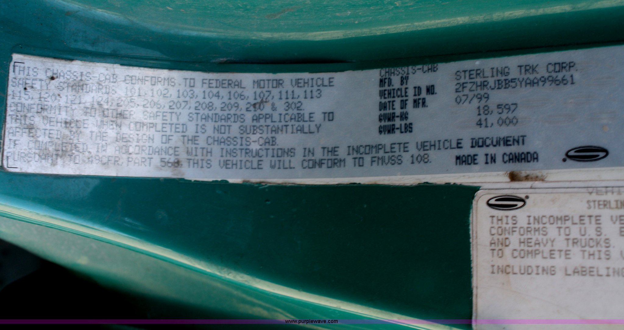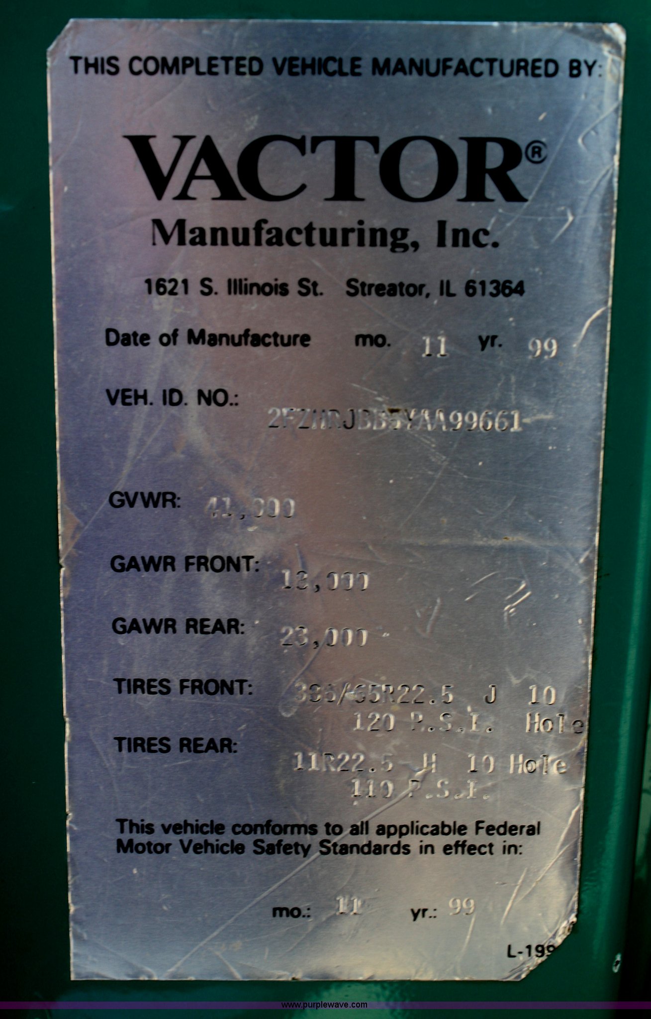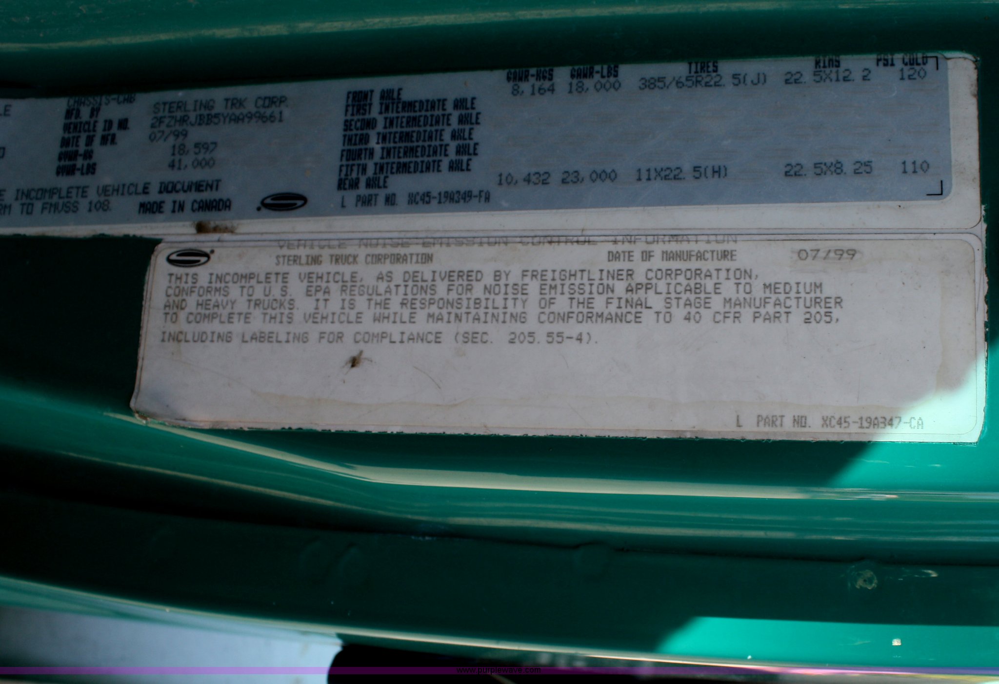 2000 Ford / Sterling L7501 rodder jet truck. Caterpillar 3126 7.2L L6 diesel engine, Automatic transmission, AC and heat, AM/FM, Air seat, Vactor bed Model F8015, Serial 99-11T-1173, Hose reel, PTO, Dual fuel tanks 85 gallon fuel capacity, 55 and 30 gallon fuel tanks, Air brakes, 385/65R22.5 front tires, 11R22.5 rear tires. View Disclosure. Title distribution may be delayed up to 14 days from verification of funds. 2FZHRJBB5YAA99661. Shipping quotes available. Unified Government of Wyandotte Co/KC KS. 5033 State Ave. Kansas City, KS 66102
