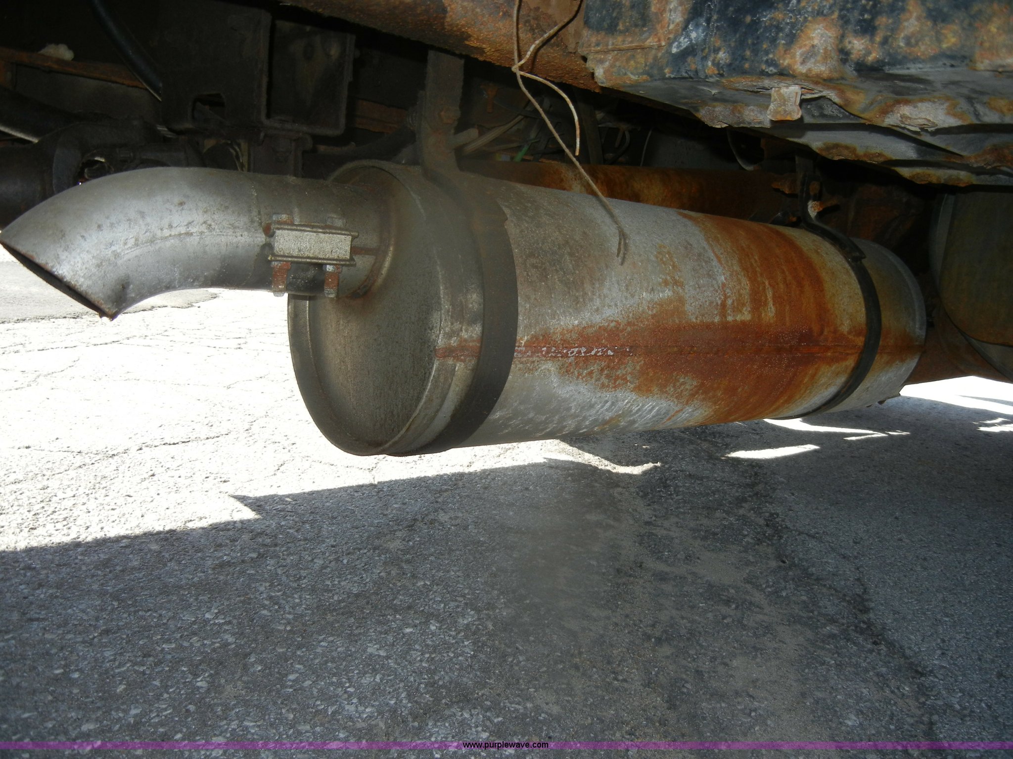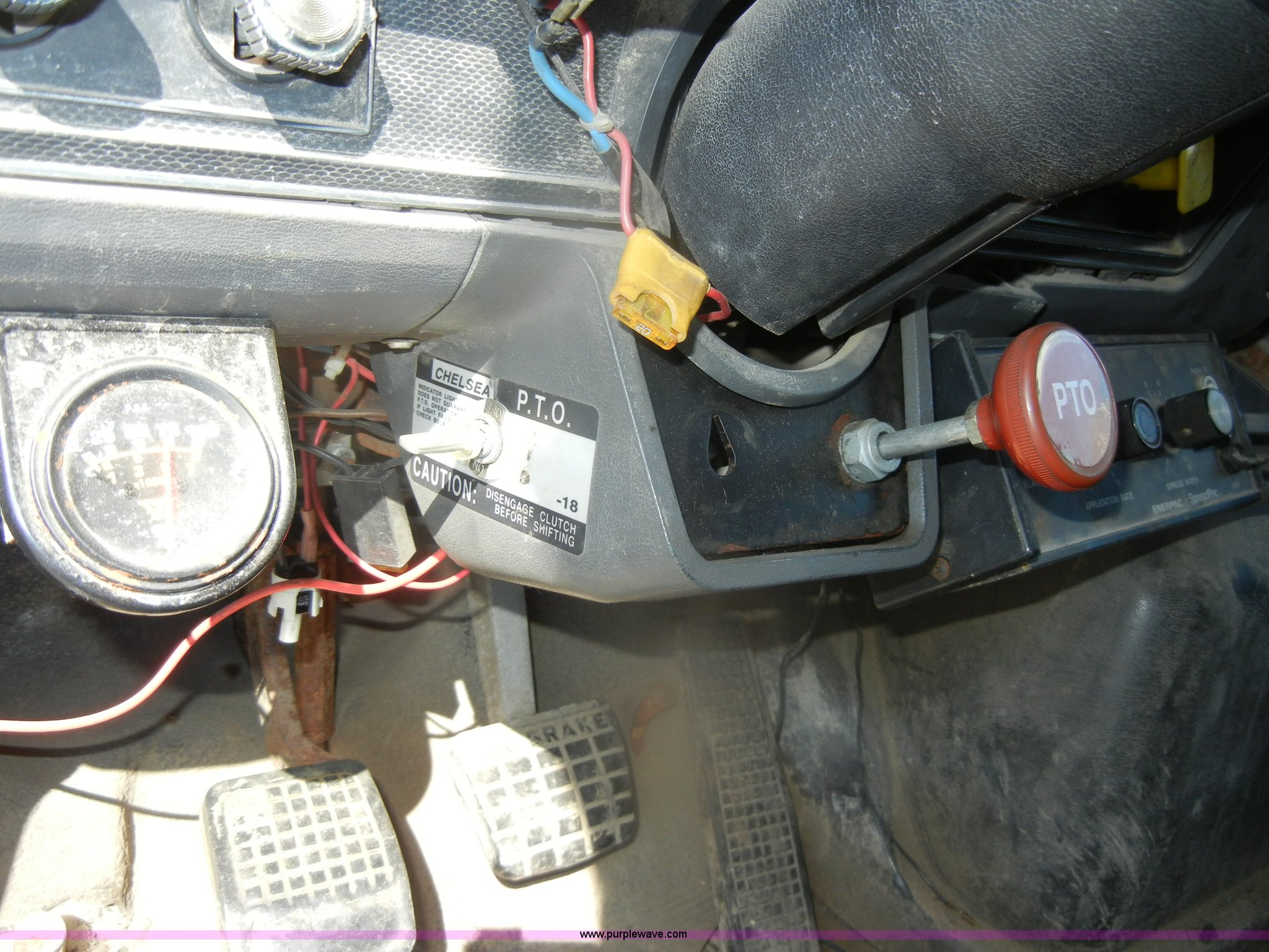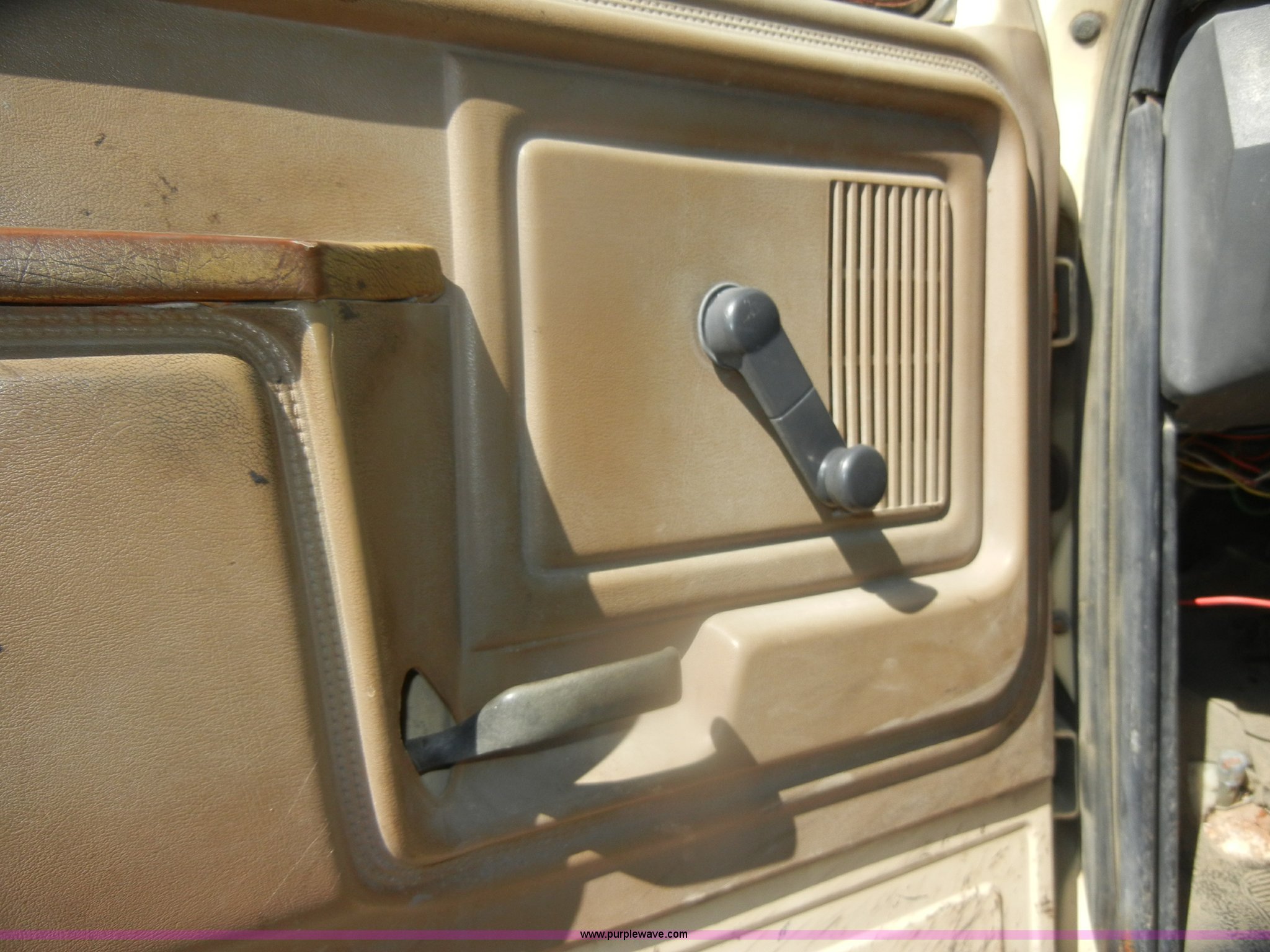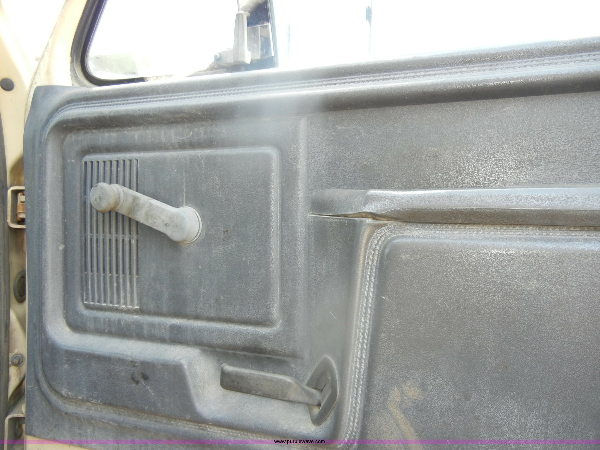 Purple Wave is selling a used Construction Dump Truck in Kansas. This item is a 1994 Ford F800 dump truck with the following: 104,514 miles on odometer, Cummins ISC 8.3L L6 diesel engine, Five speed manual transmission, Two speed axle, Heat, Warren 10' bed, Manual end gate, Flink plow bracket, Swenson 10' spreader, Pintle hitch, 50 gallon fuel tank, Spring suspension, PTO, Air brakes, 10.00R20 front tires, 11R22.5 rear tires, GVWR 33,000 lbs, Rust, Drivers step and floorboard rusted