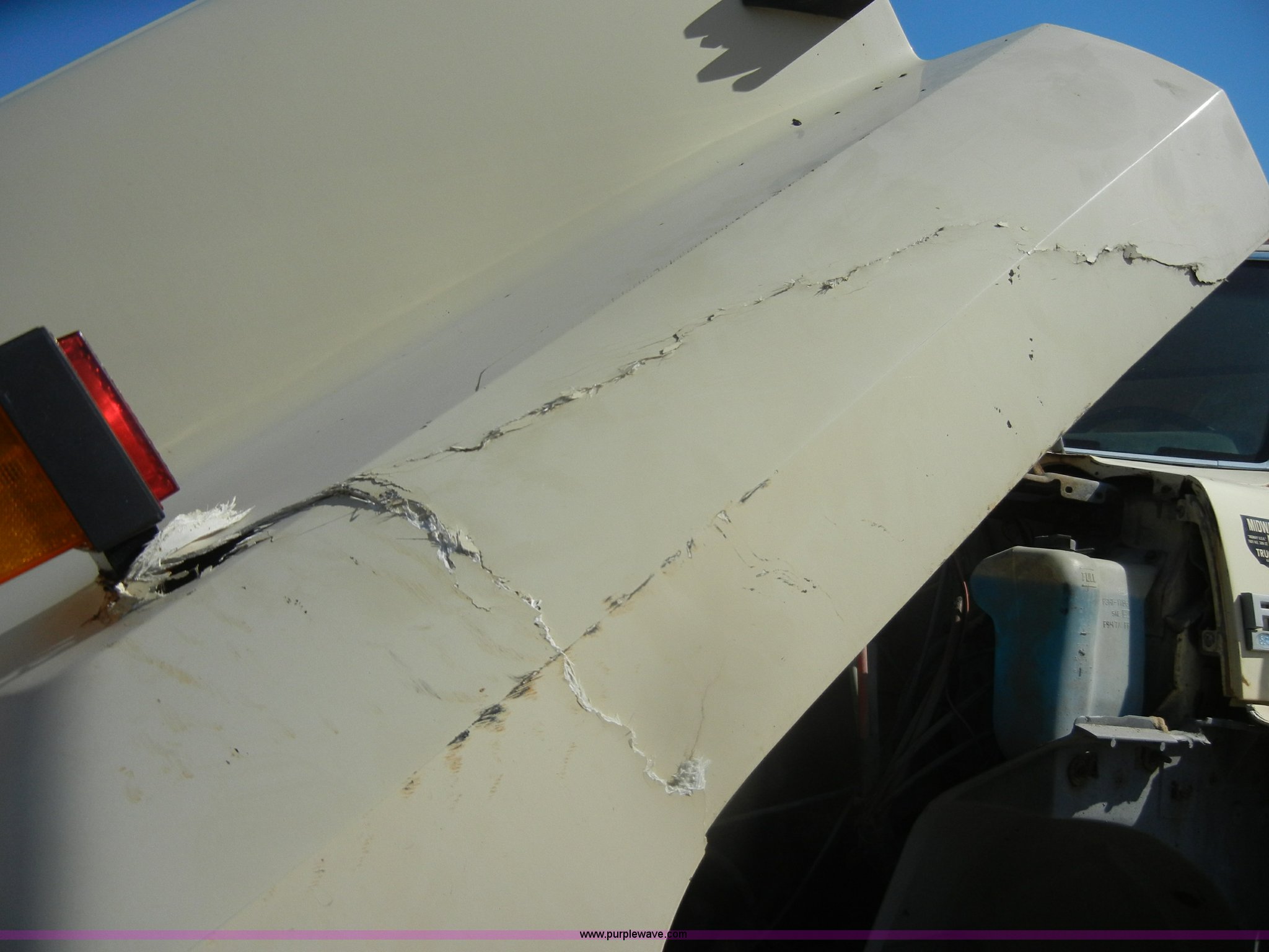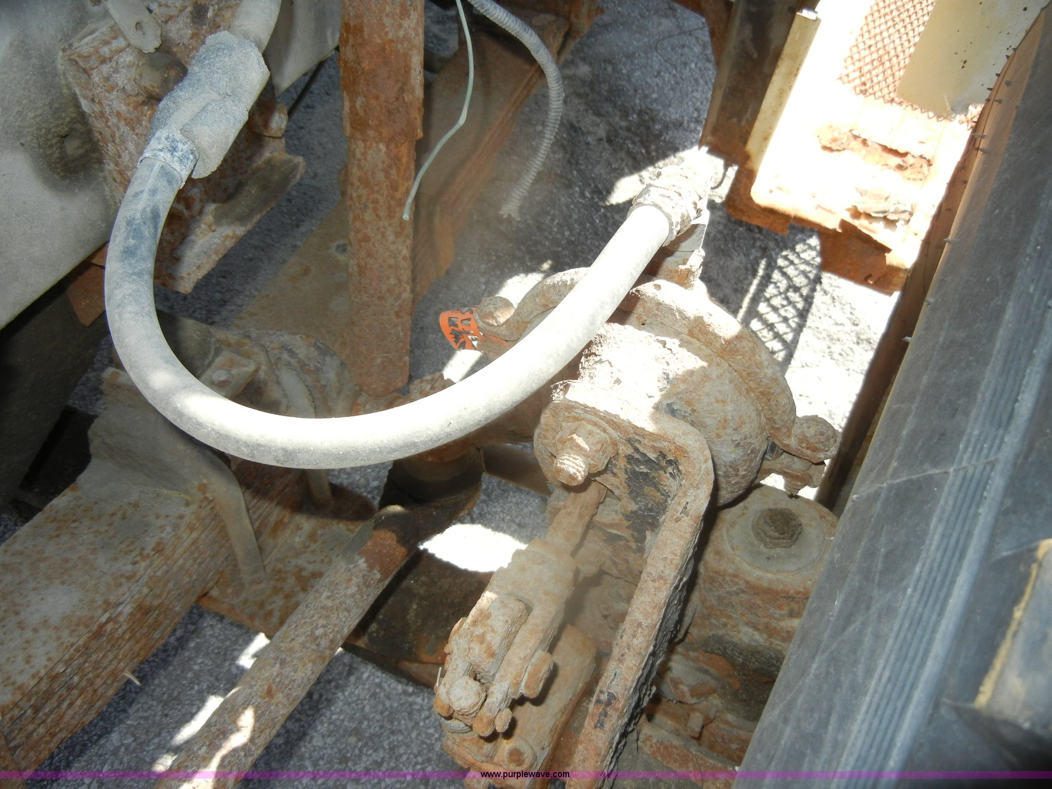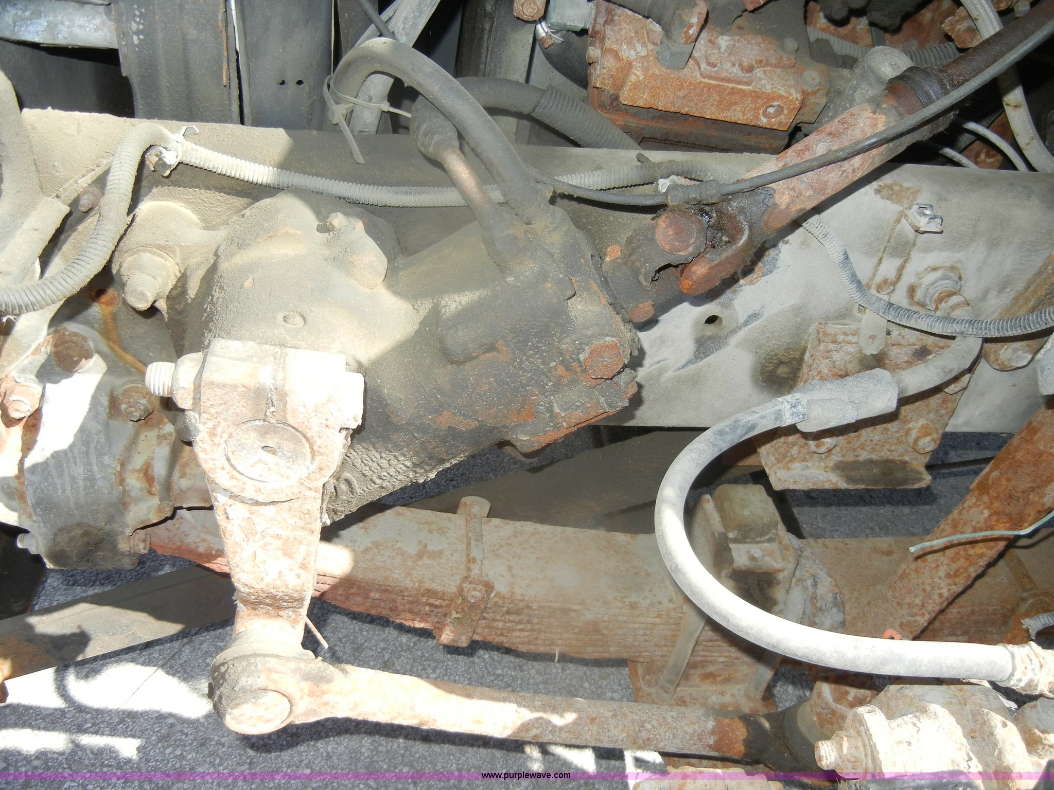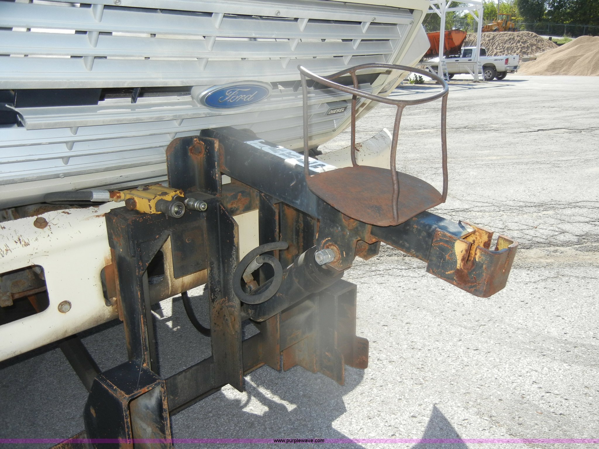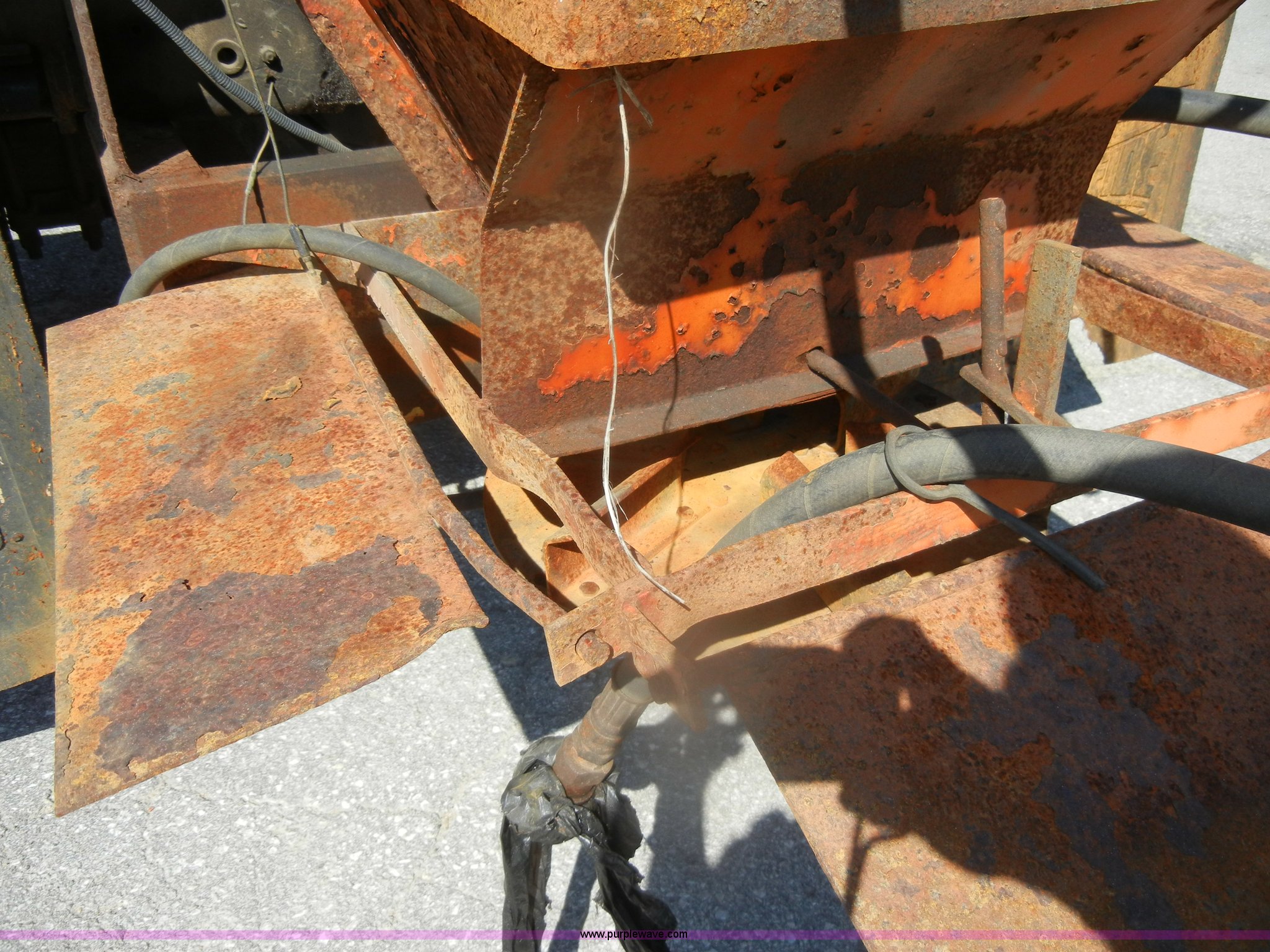 Purple Wave is selling a used Construction Dump Truck in Kansas. This item is a 1994 Ford F800 dump truck with the following: 104,514 miles on odometer, Cummins ISC 8.3L L6 diesel engine, Five speed manual transmission, Two speed axle, Heat, Warren 10' bed, Manual end gate, Flink plow bracket, Swenson 10' spreader, Pintle hitch, 50 gallon fuel tank, Spring suspension, PTO, Air brakes, 10.00R20 front tires, 11R22.5 rear tires, GVWR 33,000 lbs, Rust, Drivers step and floorboard rusted