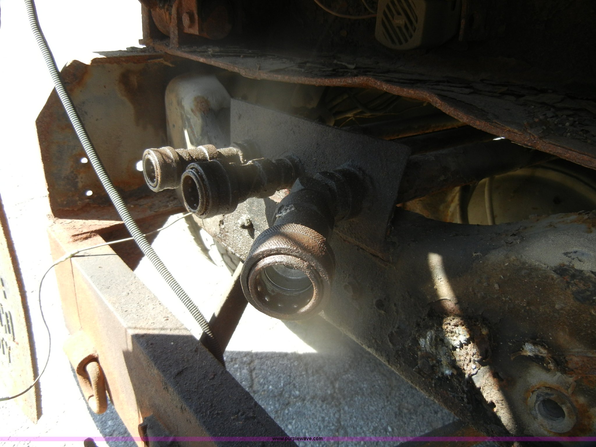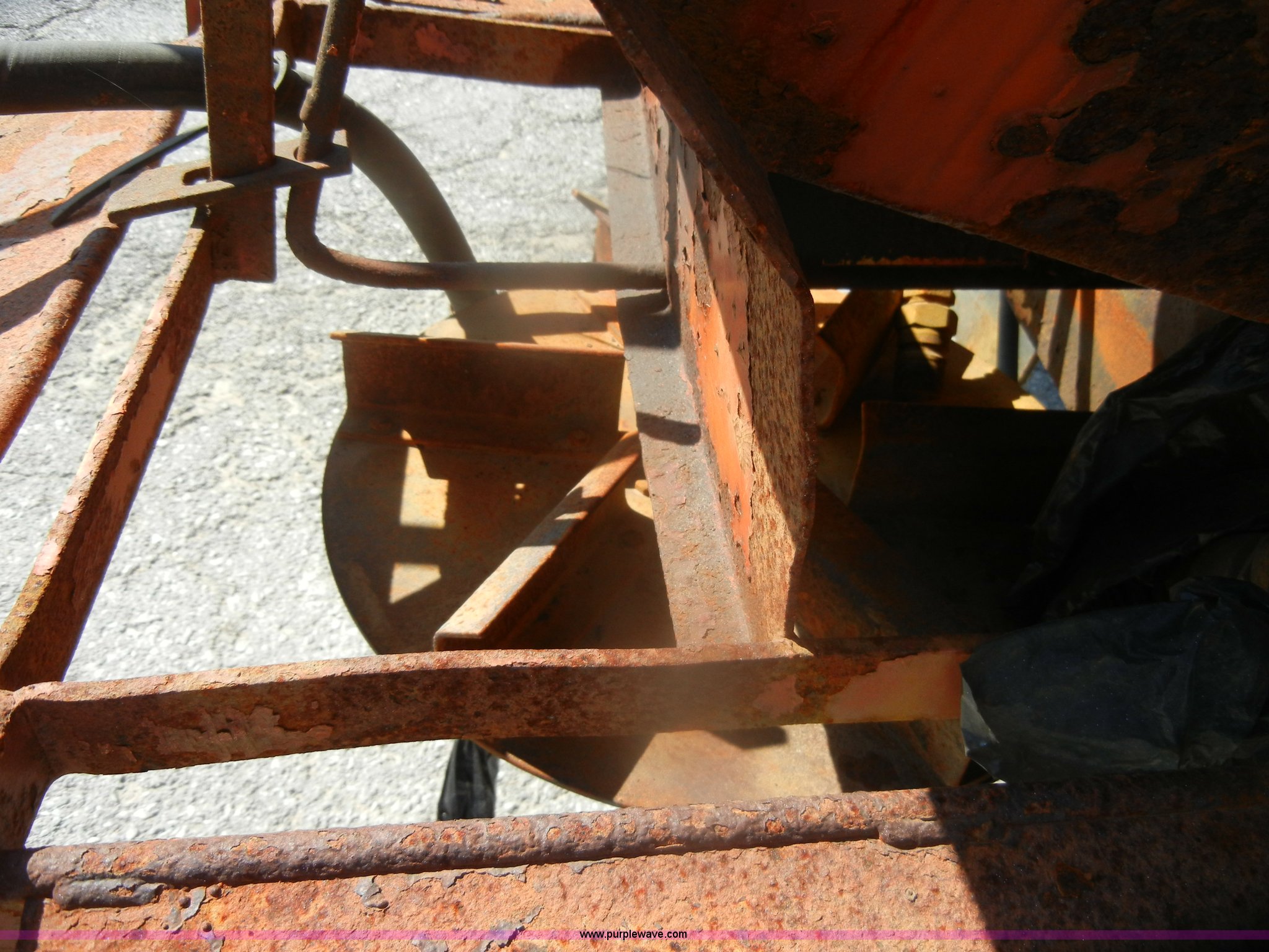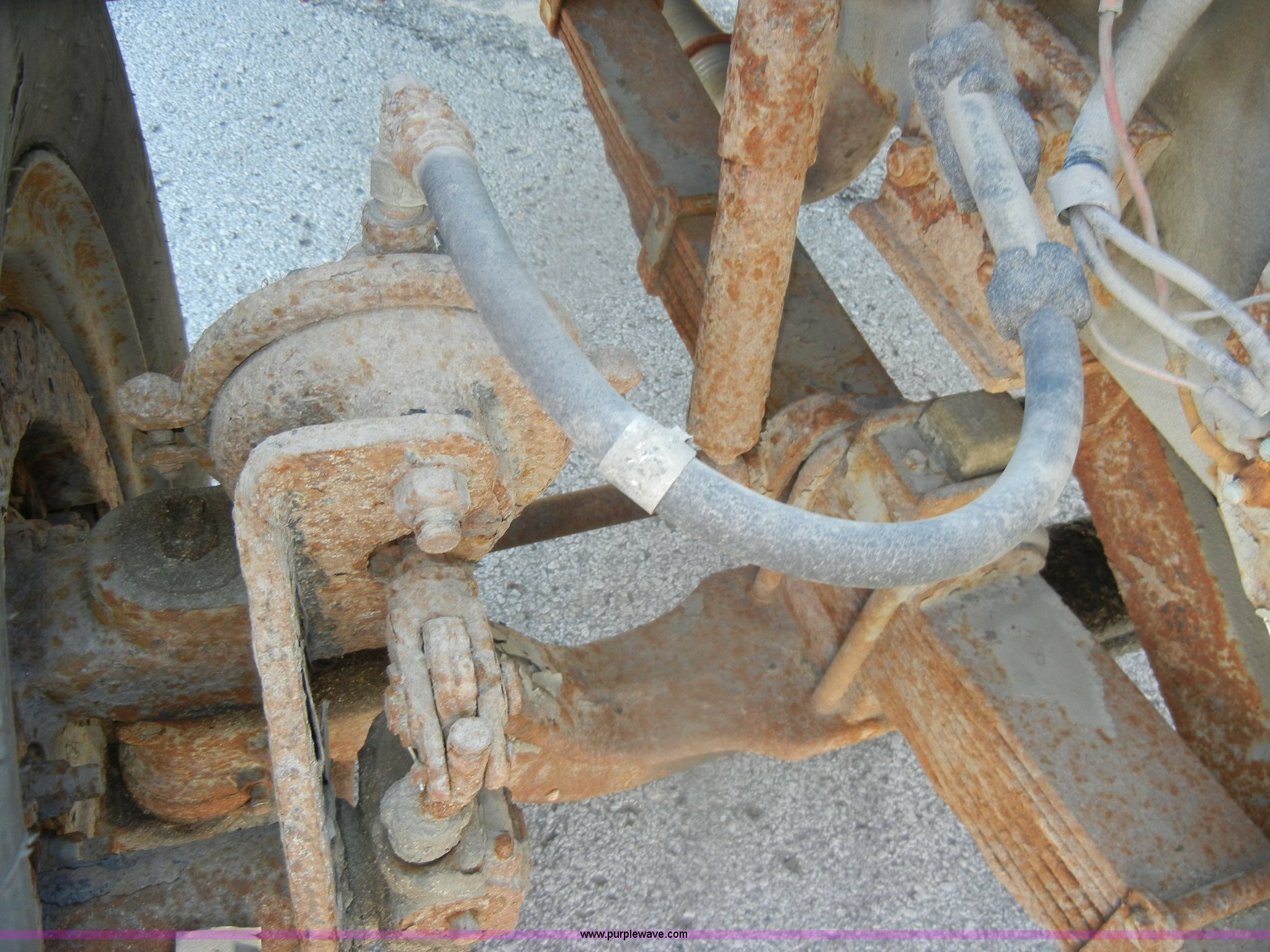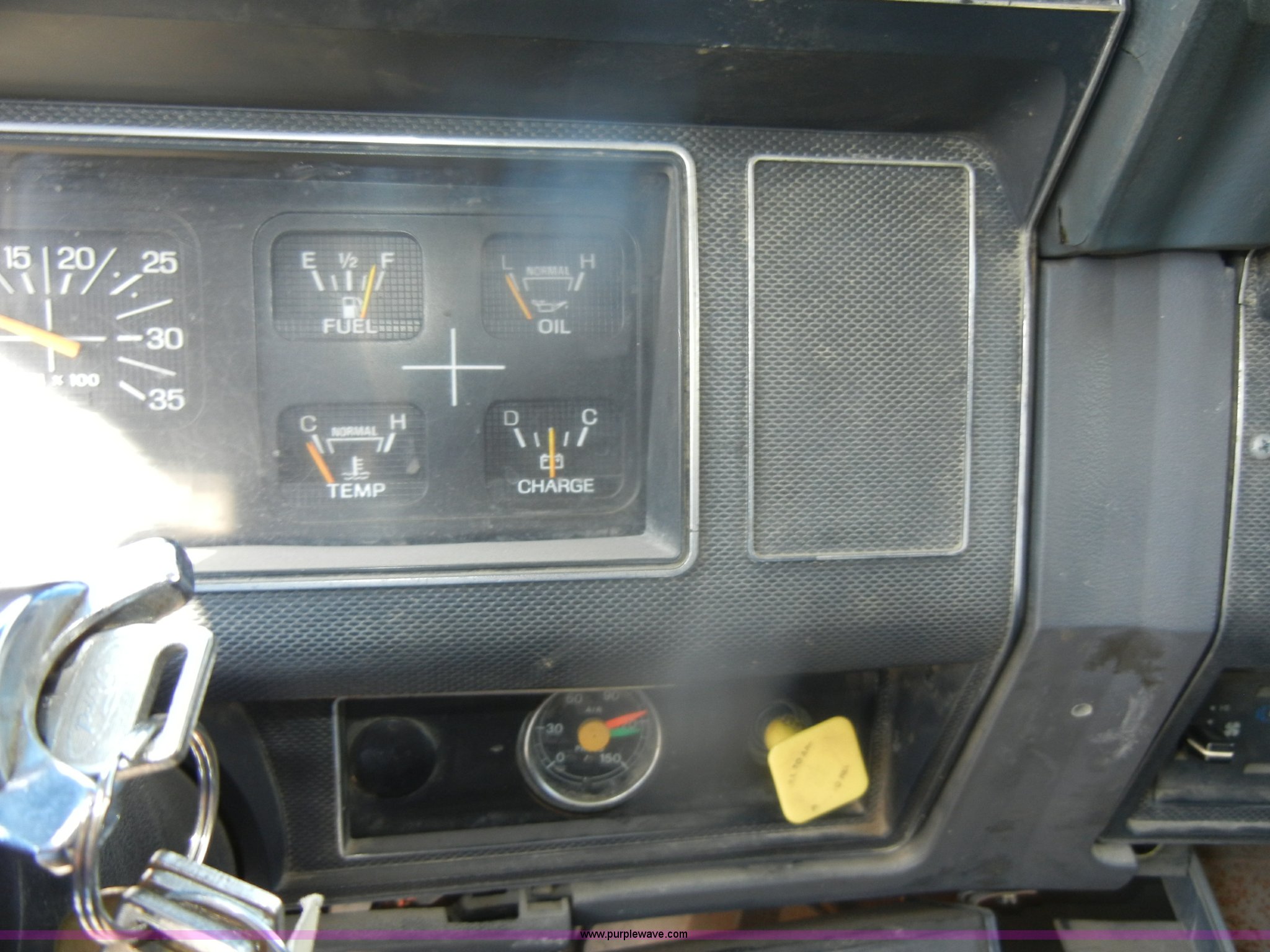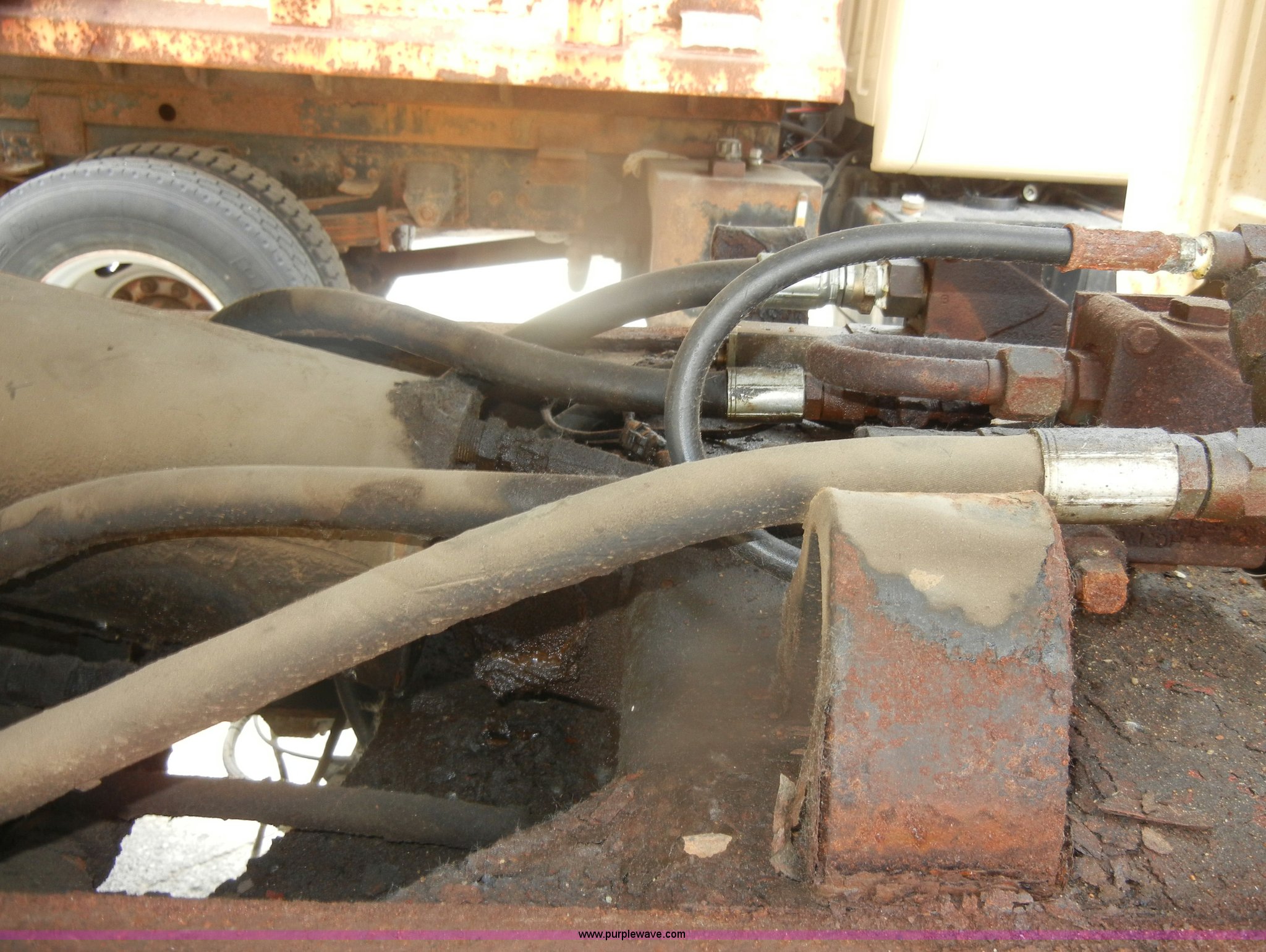 Purple Wave is selling a used Construction Dump Truck in Kansas. This item is a 1994 Ford F800 dump truck with the following: 104,514 miles on odometer, Cummins ISC 8.3L L6 diesel engine, Five speed manual transmission, Two speed axle, Heat, Warren 10' bed, Manual end gate, Flink plow bracket, Swenson 10' spreader, Pintle hitch, 50 gallon fuel tank, Spring suspension, PTO, Air brakes, 10.00R20 front tires, 11R22.5 rear tires, GVWR 33,000 lbs, Rust, Drivers step and floorboard rusted