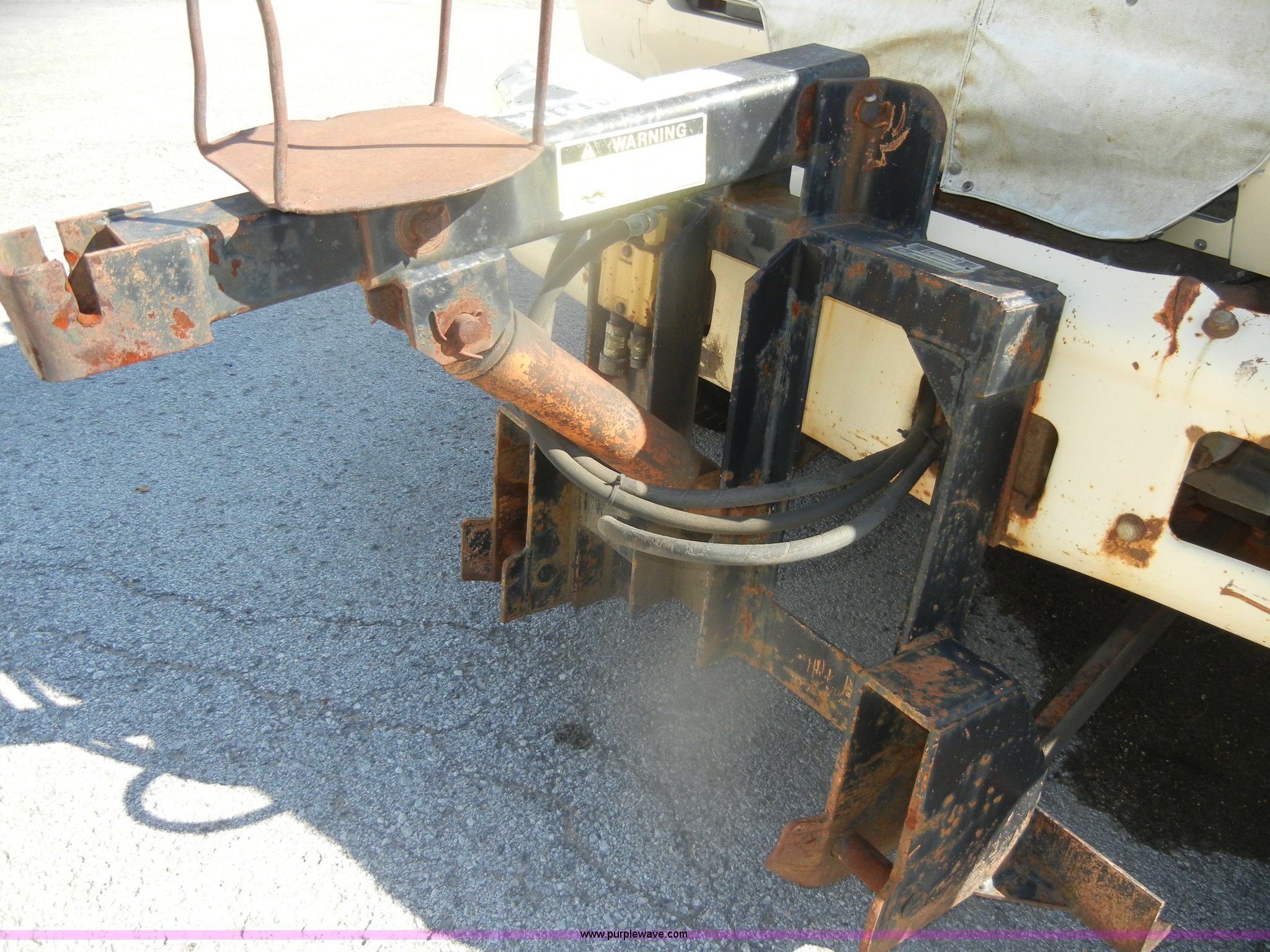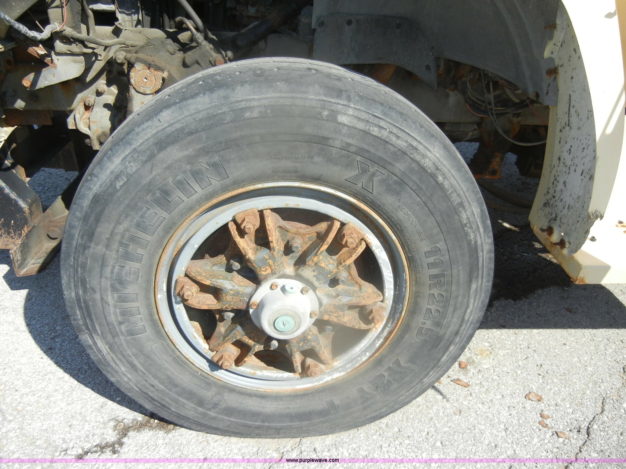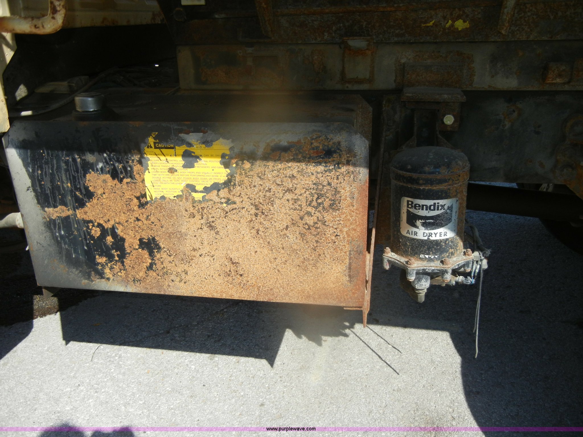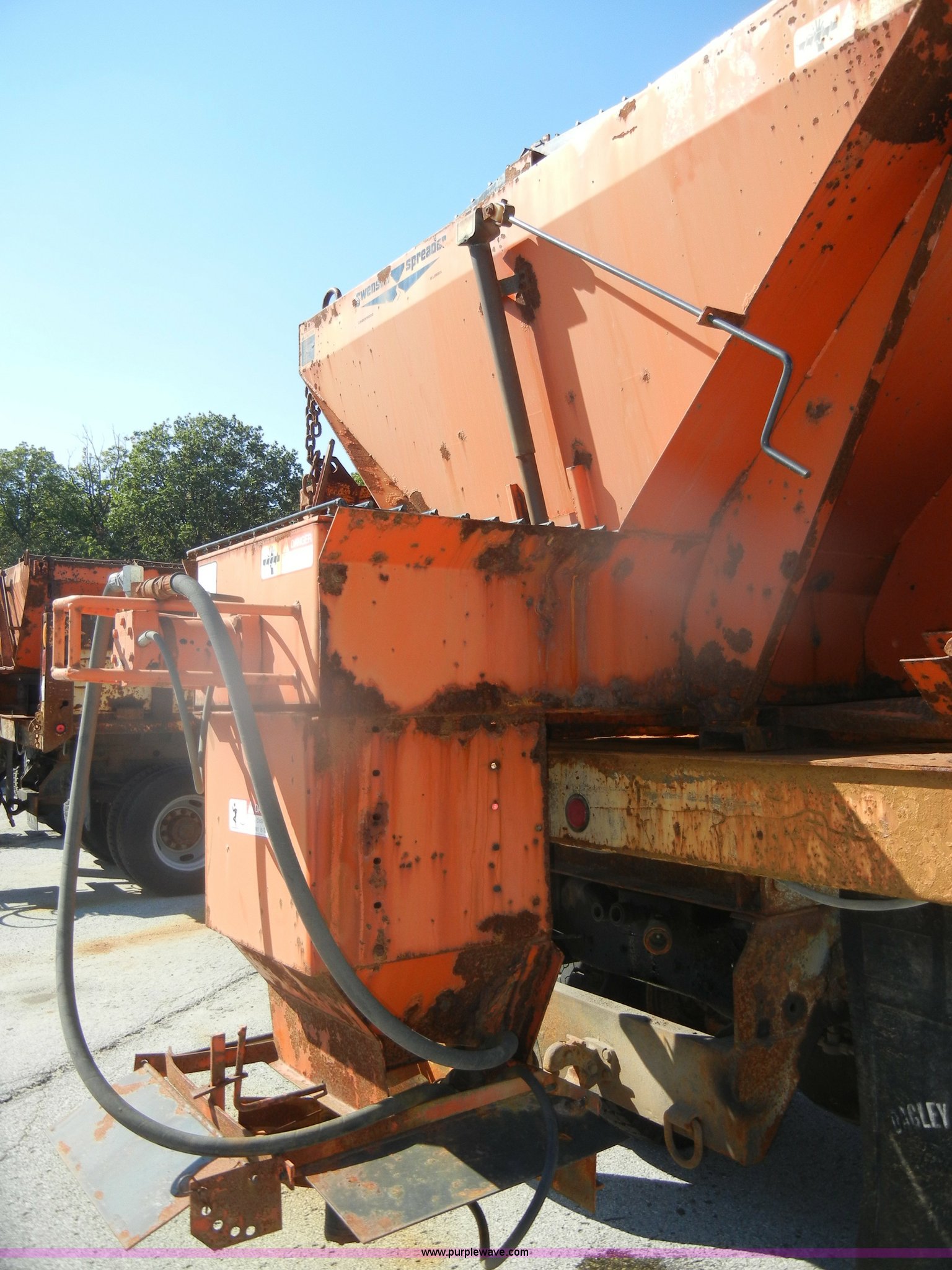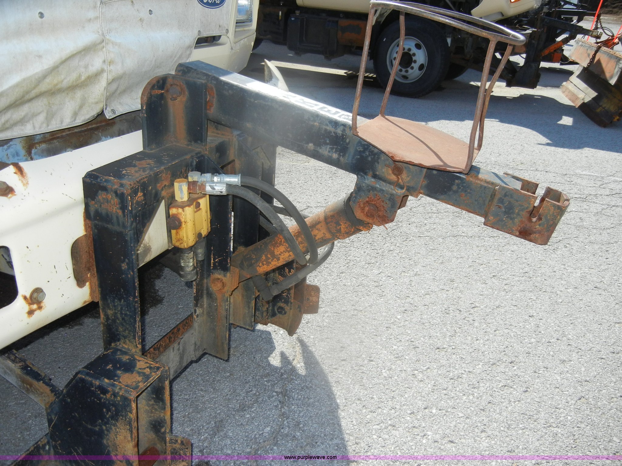 Purple Wave is selling a used Construction Dump Truck in Kansas. This item is a 1994 Ford F800 dump truck with the following: 84,444 miles on odometer, Cummins ISC 8.3L L6 diesel engine, Five speed manual transmission, Two speed axle, Heat, Warren 10' bed, Manual end gate, Flink plow bracket, Swenson 10' spreader, Pintle hitch, 50 gallon fuel tank, Spring suspension, PTO, Air brakes, 11R22.5 tires, GVWR 33,000 lbs, Rust, Interior/exterior cosmetic damage