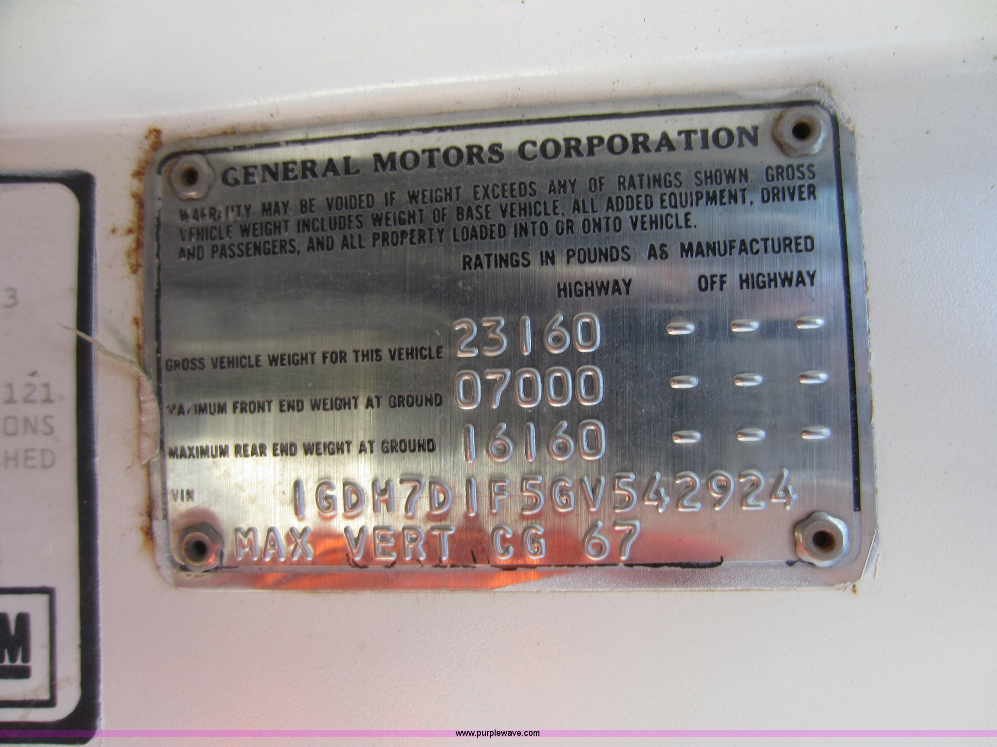 Take a look at this used 1986 GMC TopKick 7000 bucket truck being sold on November 6th, 2012 in the SOLD! Tuesday November 6 Government Auction made by GMC. Take a look at all of the item information below or take a look at similar auctions for Construction Trucks.