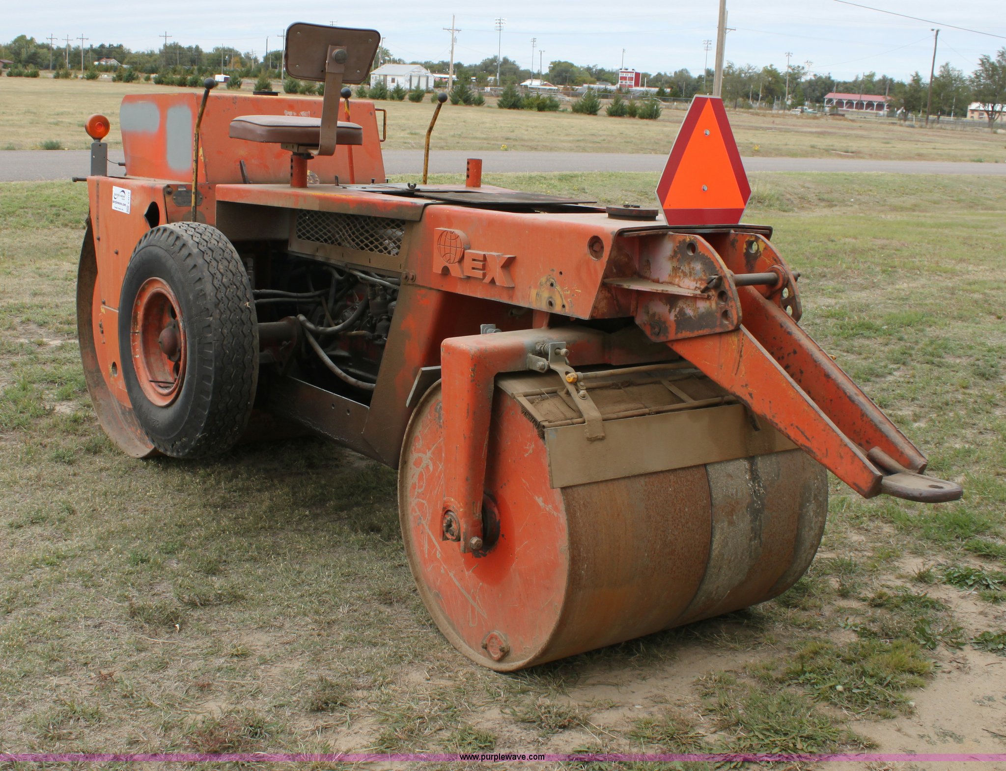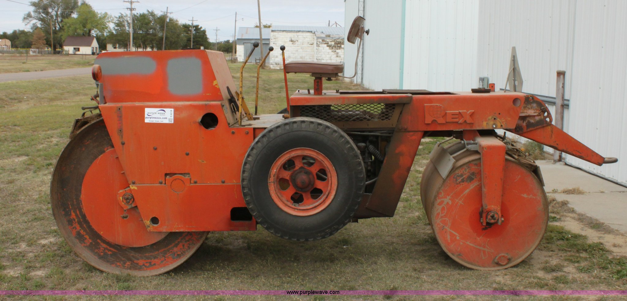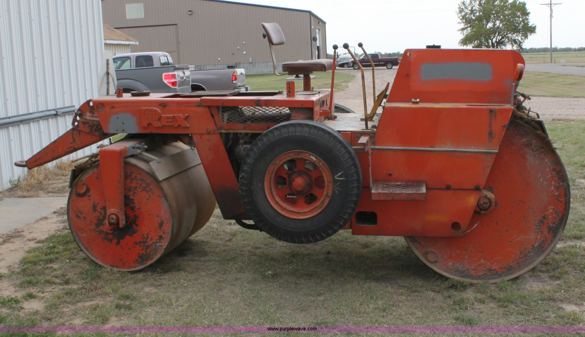 Purple Wave is selling a used Double Drum Roller Compactor in Kansas. This item is a Rex Rexrol 6 double drum roller with the following: 1,741 hours on meter, Four cylinder gas engine, Hydrostatic transmission, 42" front drum, 40" rear drum, Front and rear water distribution, Rear hitch, Weak batteries, Serial HG219