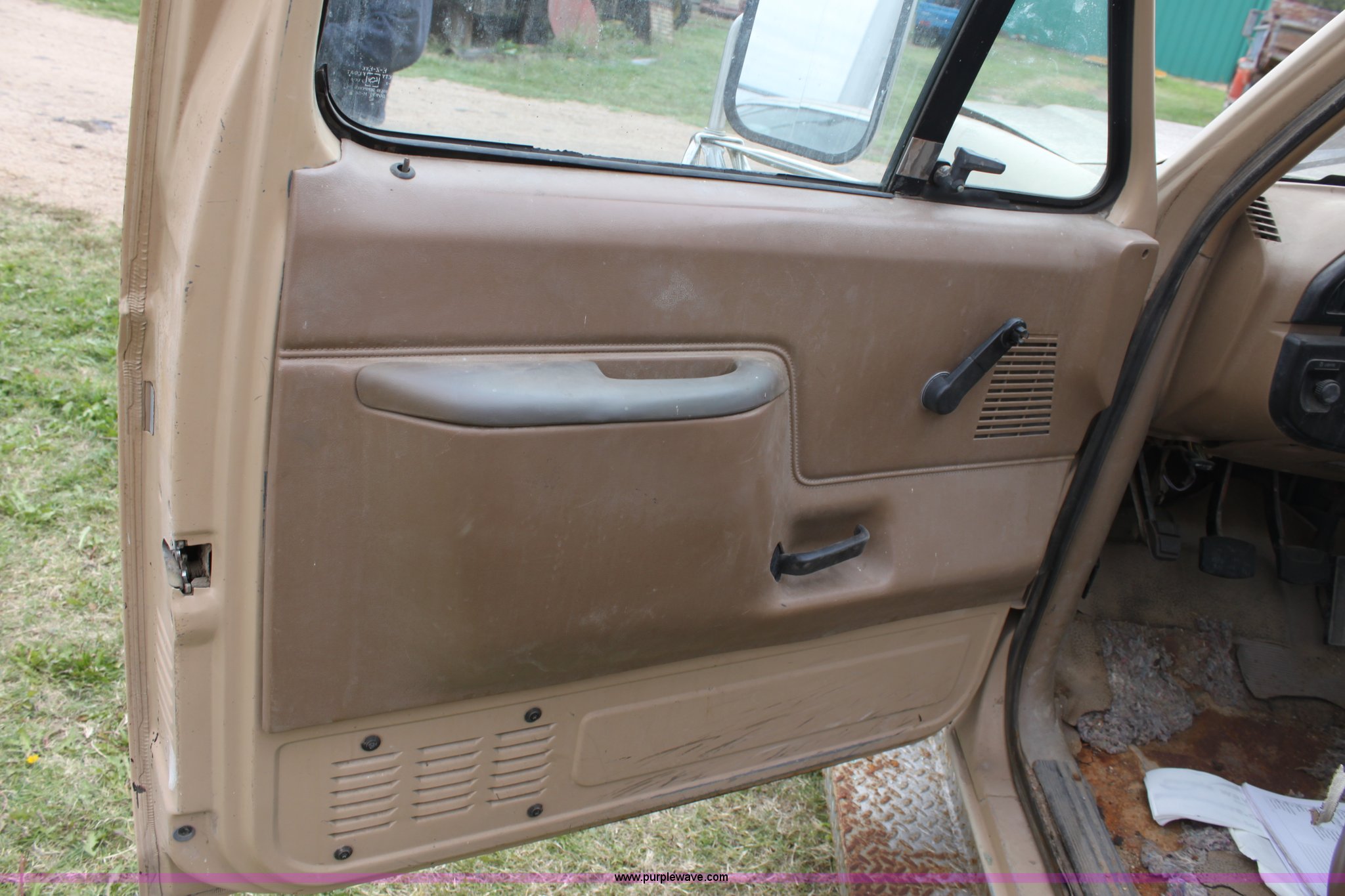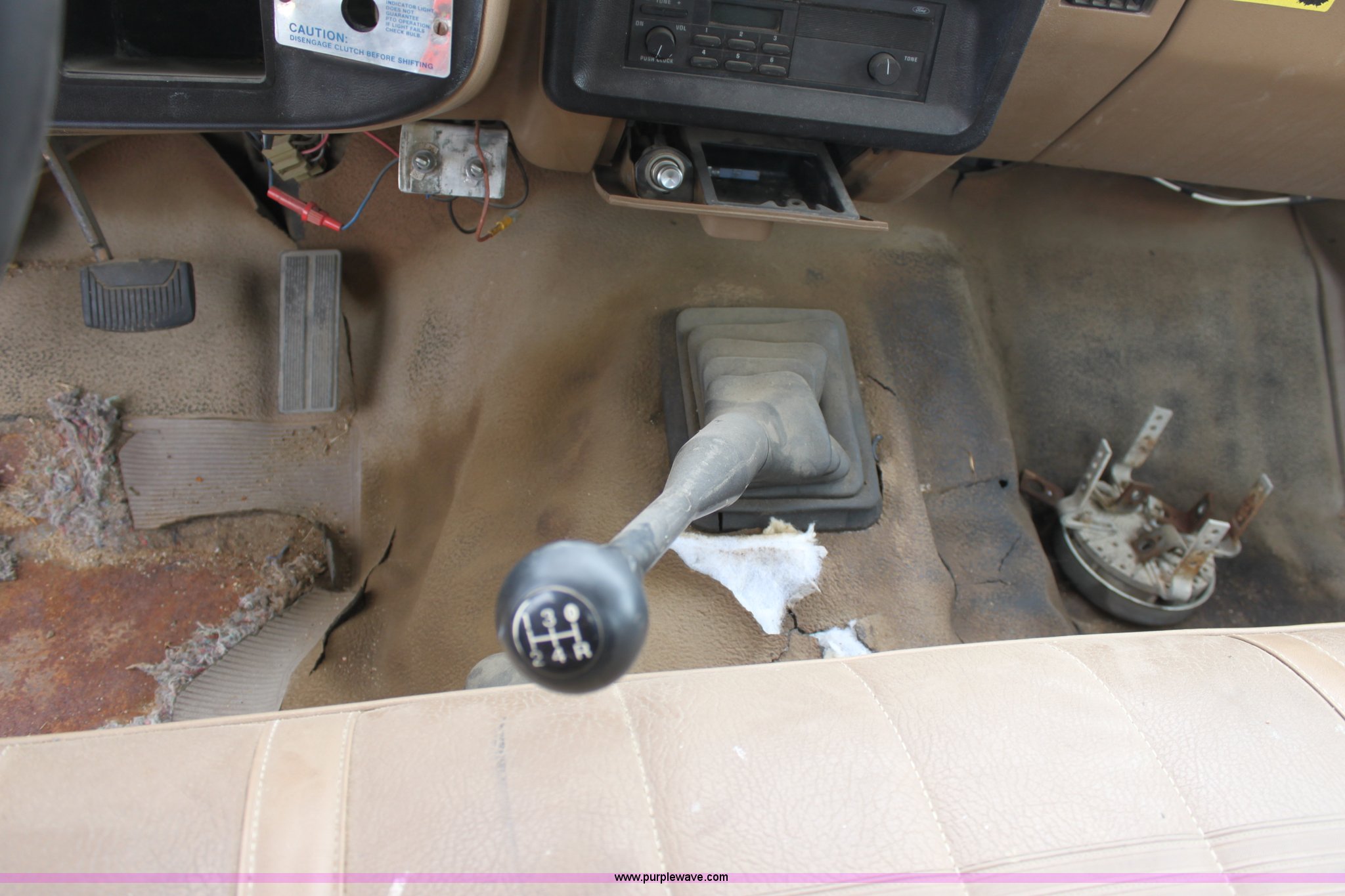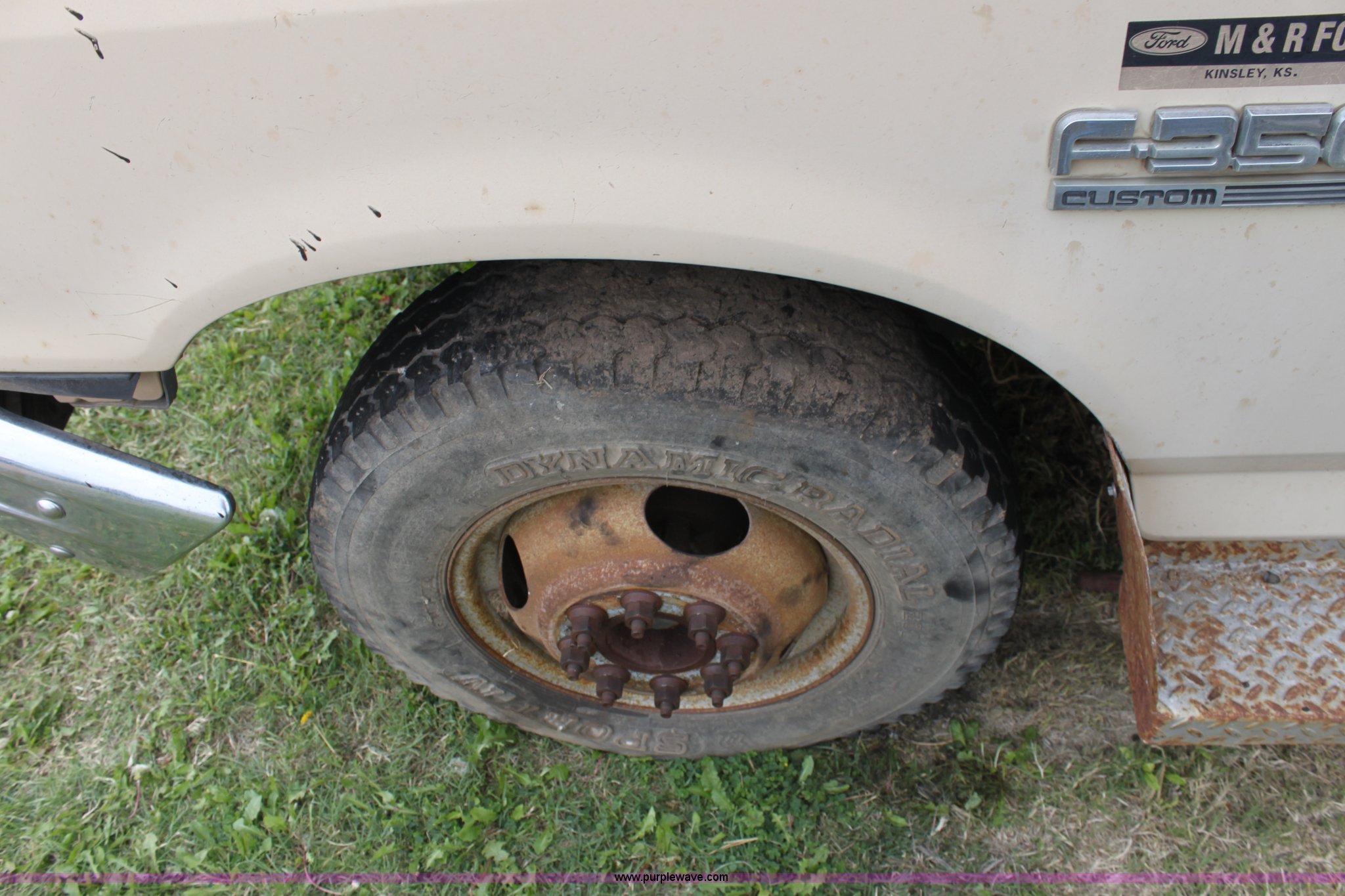 Purple Wave is selling a used Passenger Vehicle in Kansas. This item is a 1988 Ford F350 XL flatbed pickup truck with the following: 62,292 miles on odometer, 5.8L V8 gas engine, Five speed manual transmission, AC and heat, AM/FM, Manual windows and locks, Vinyl interior, Two way PTO, 215/85R16 tires, Interior/exterior cosmetic damage, Cracked windshield, Damage to front bumper, One tire cracked, Has not ran in five years