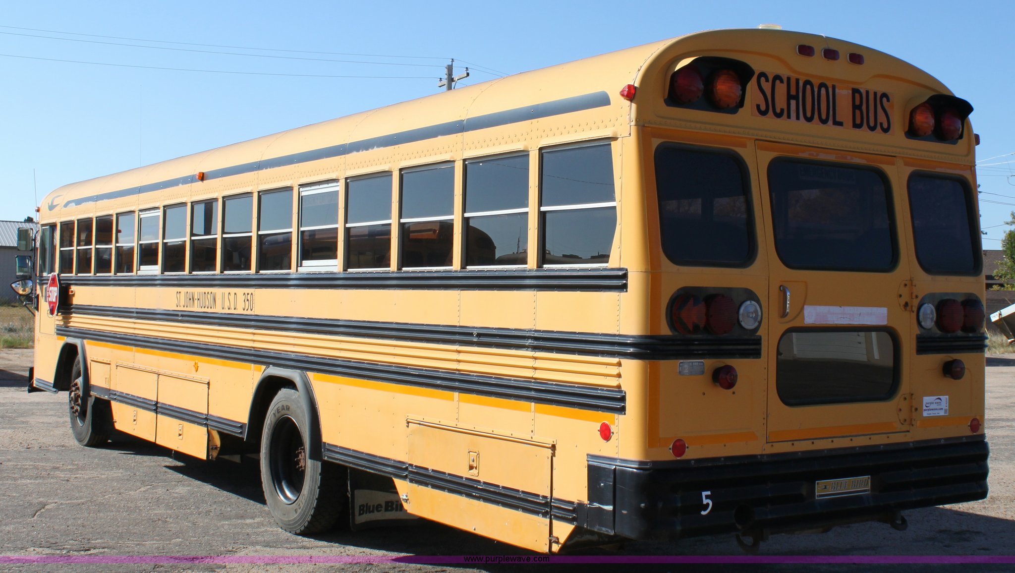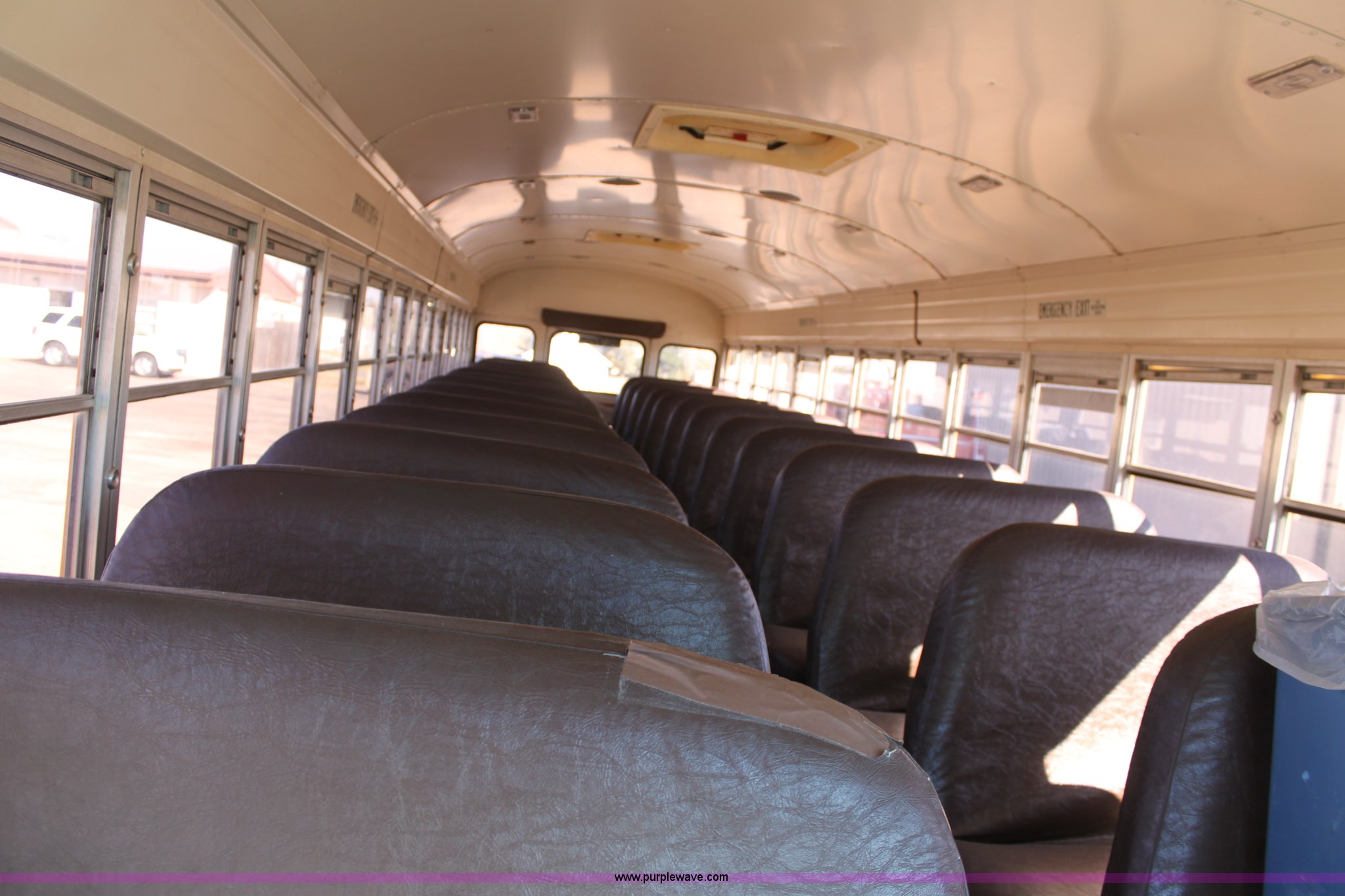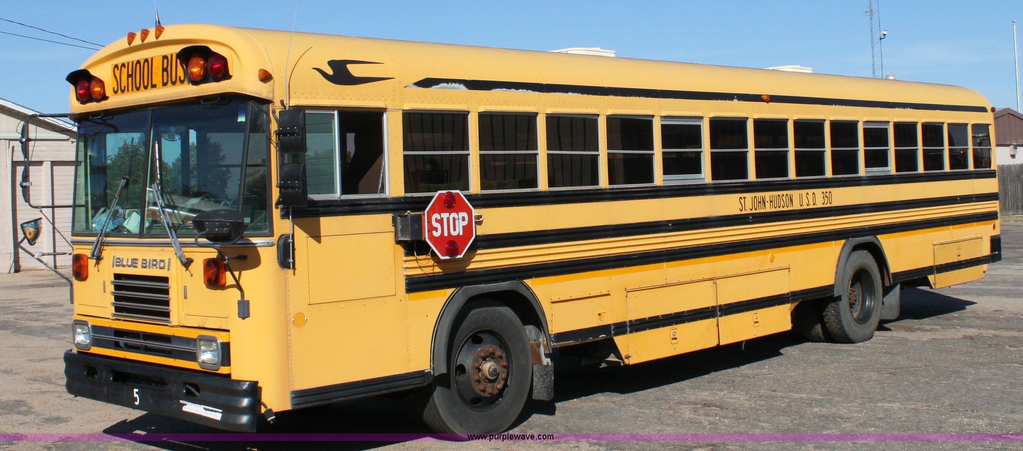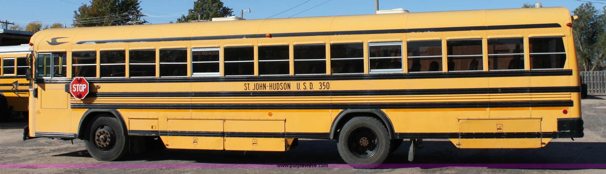 Purple Wave is selling a used Bus in Kansas. This item is a 1993 Blue Bird TC2000 school bus with the following: 158,461 miles on odometer, 78 passenger, Cummins 5.9L six cylinder diesel engine, Automatic transmission, Heat, AM/FM/cassette, Rear heat, Exterior light monitor, (4) window emergency egress, (2) roof emergency egress, Rear door emergency egress, (4) under mount storage compartments, 11R22.5 tires