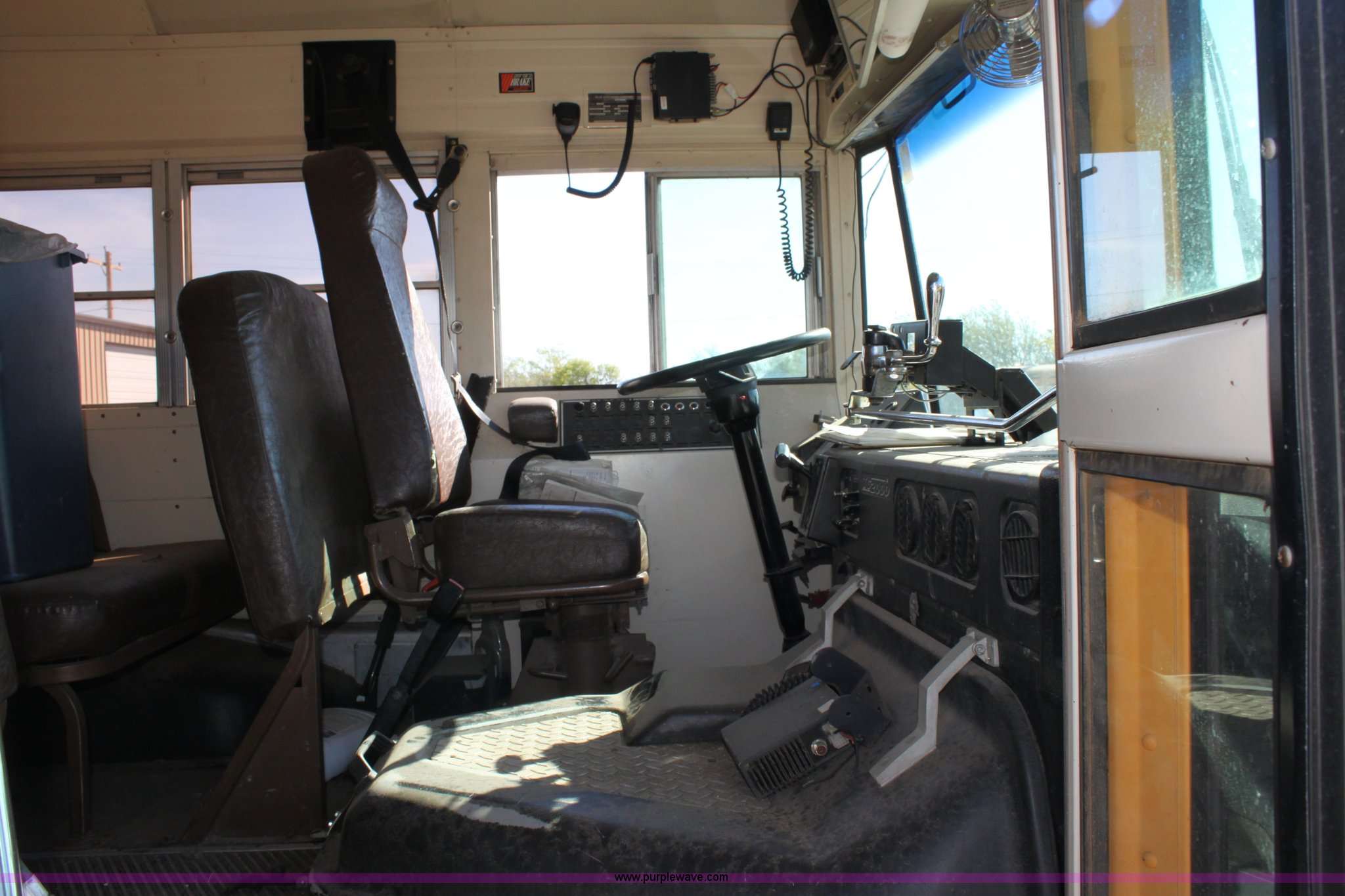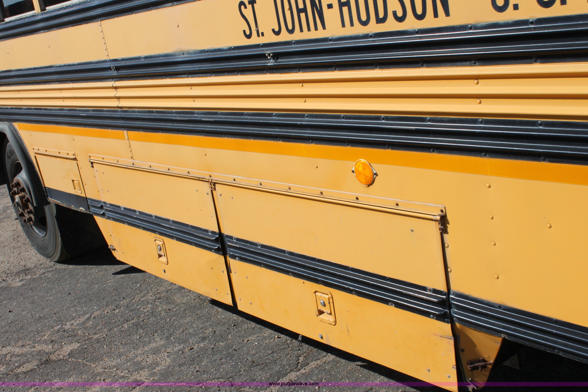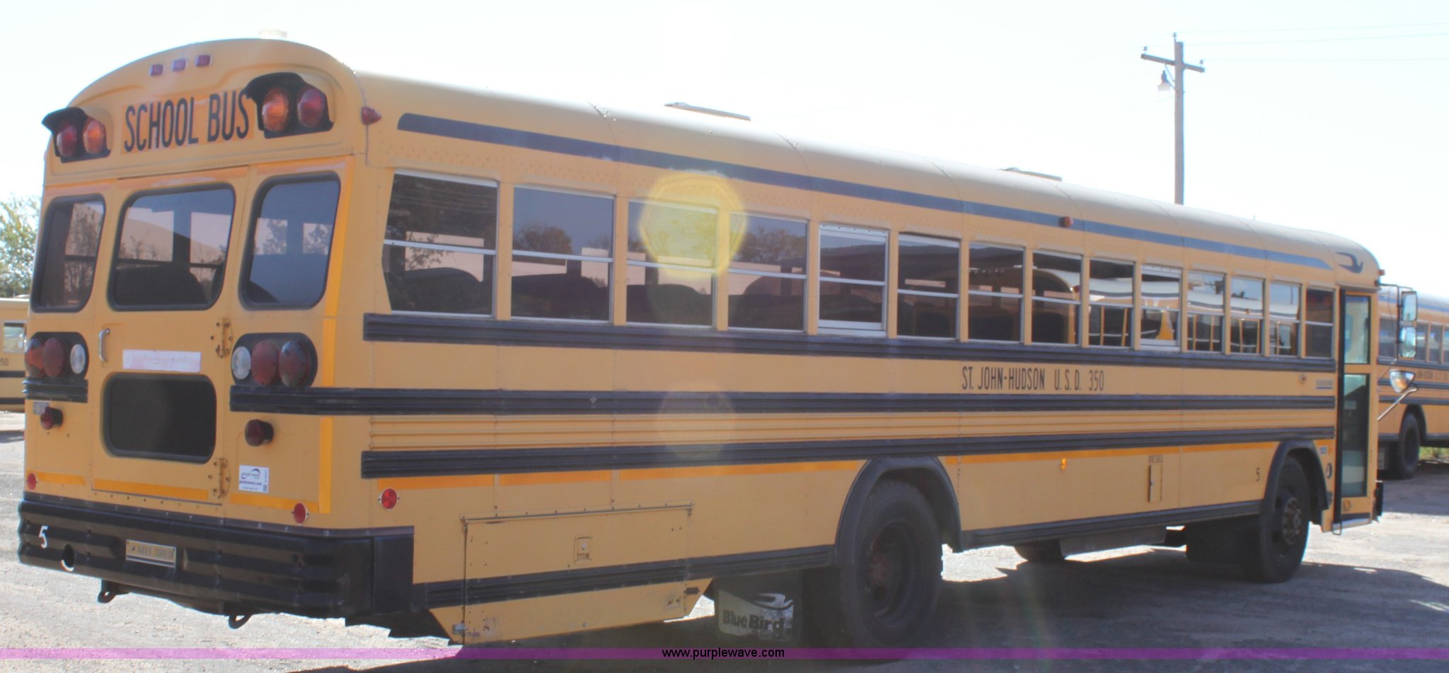 Purple Wave is selling a used Bus in Kansas. This item is a 1993 Blue Bird TC2000 school bus with the following: 158,461 miles on odometer, 78 passenger, Cummins 5.9L six cylinder diesel engine, Automatic transmission, Heat, AM/FM/cassette, Rear heat, Exterior light monitor, (4) window emergency egress, (2) roof emergency egress, Rear door emergency egress, (4) under mount storage compartments, 11R22.5 tires