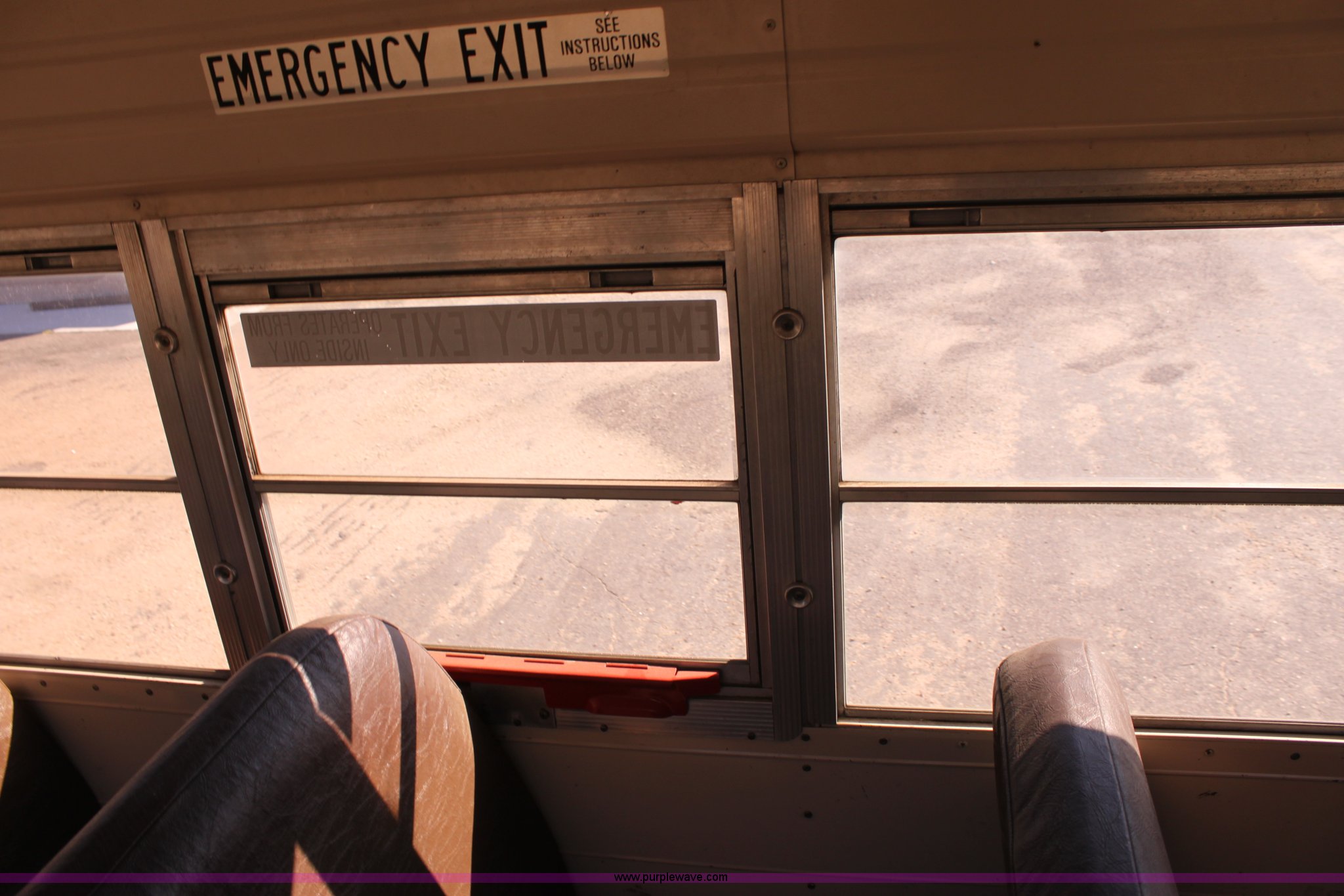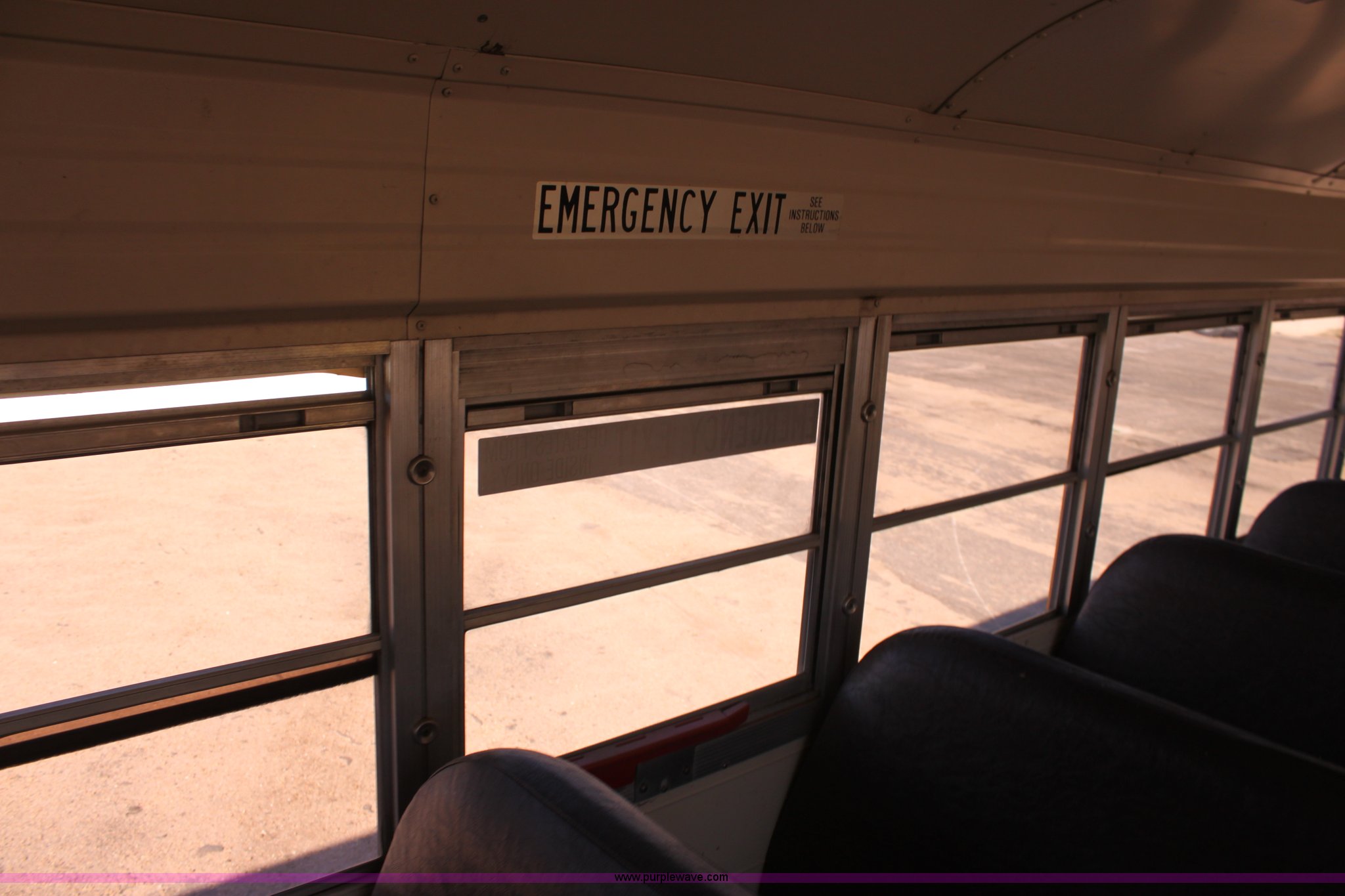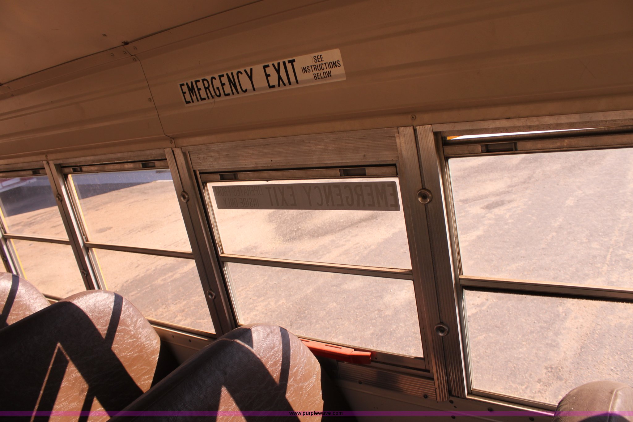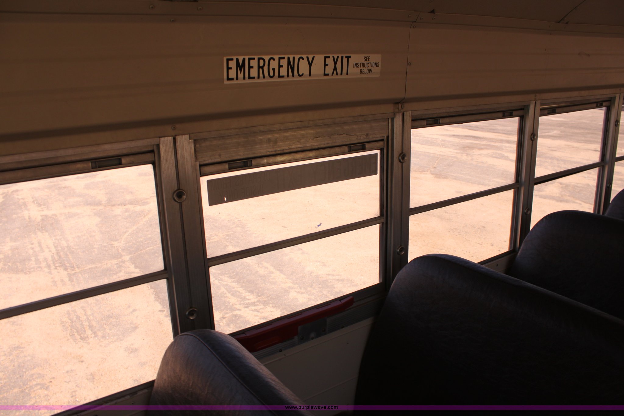 Purple Wave is selling a used Bus in Kansas. This item is a 1993 Blue Bird TC2000 school bus with the following: 158,461 miles on odometer, 78 passenger, Cummins 5.9L six cylinder diesel engine, Automatic transmission, Heat, AM/FM/cassette, Rear heat, Exterior light monitor, (4) window emergency egress, (2) roof emergency egress, Rear door emergency egress, (4) under mount storage compartments, 11R22.5 tires