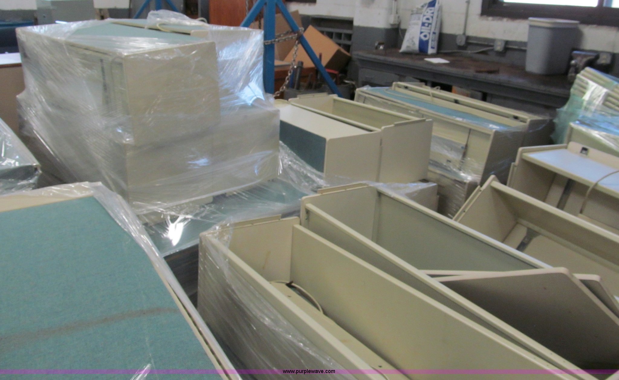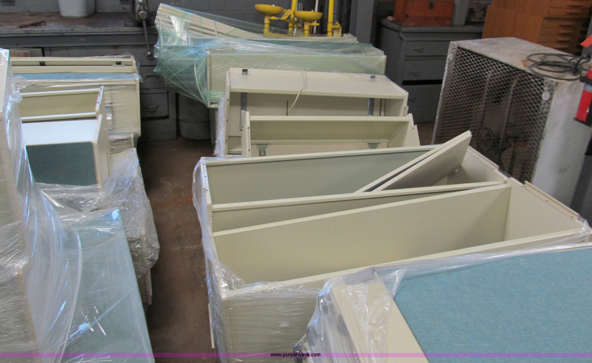Purple Wave is selling a used Office Supplies and Equip. in Missouri. This item is a Assorted commercial office partitions with the following: Shelves and cabinets included