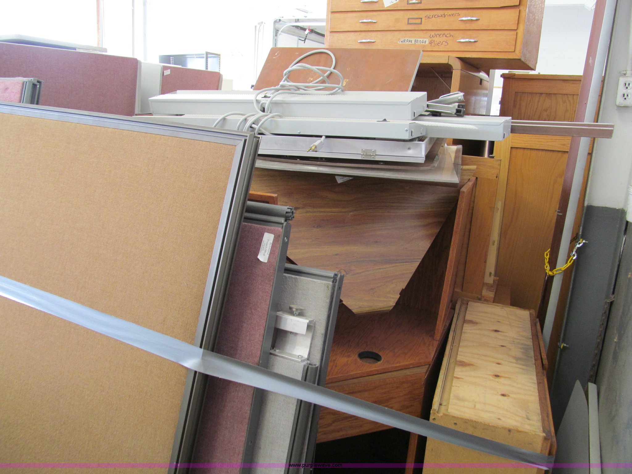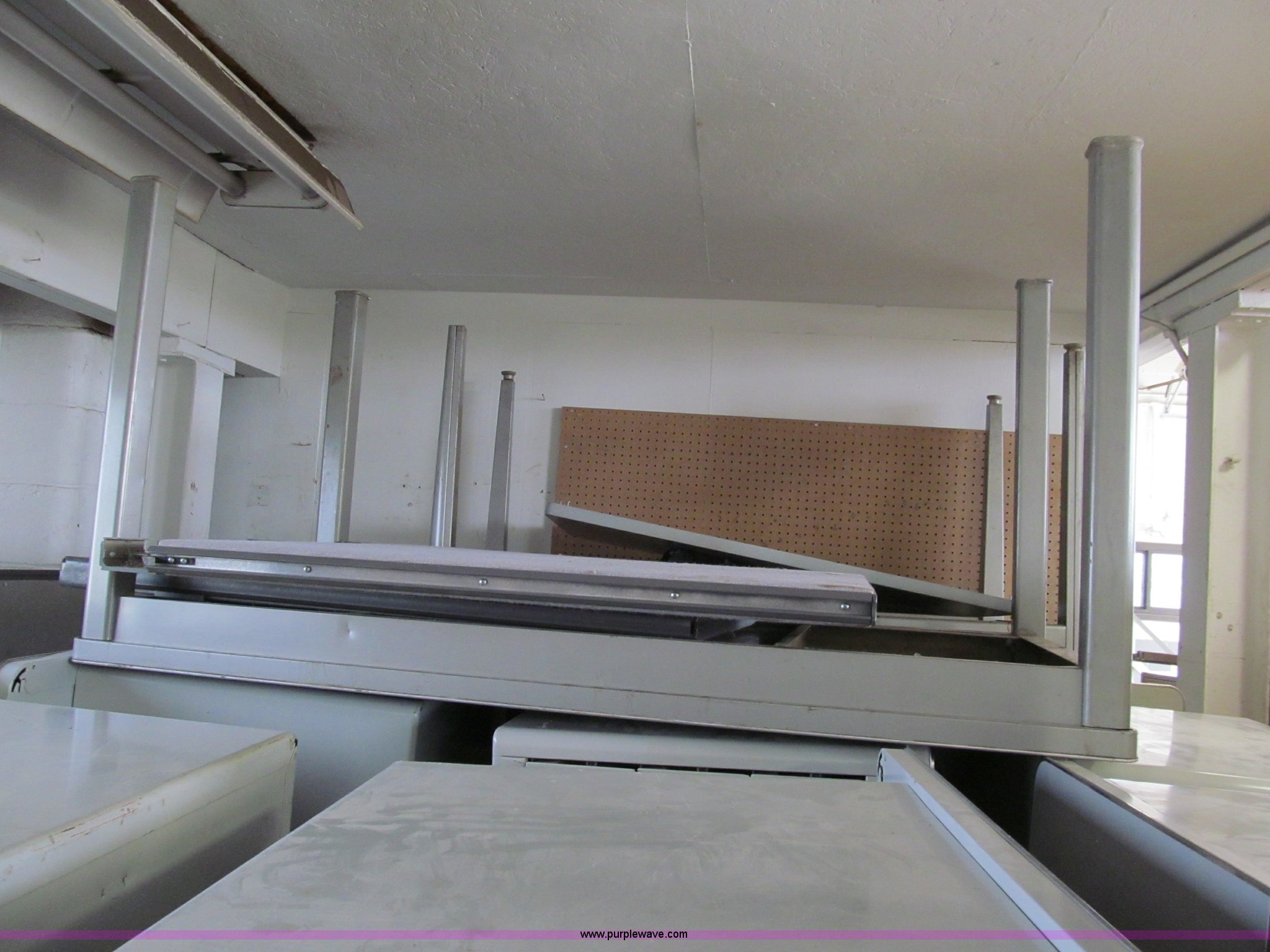 Purple Wave is selling a used Office Supplies and Equip. in Missouri. This item is a Assorted office supplies with the following: (22) metal and wood desks, Assorted drawers and shelves, Most are complete, (7) large metal desks, (2) steel tables, (4) small metal desks, (11) wood desks, Assorted desk furniture, (15) partition walls, (2) commercial drafting tables