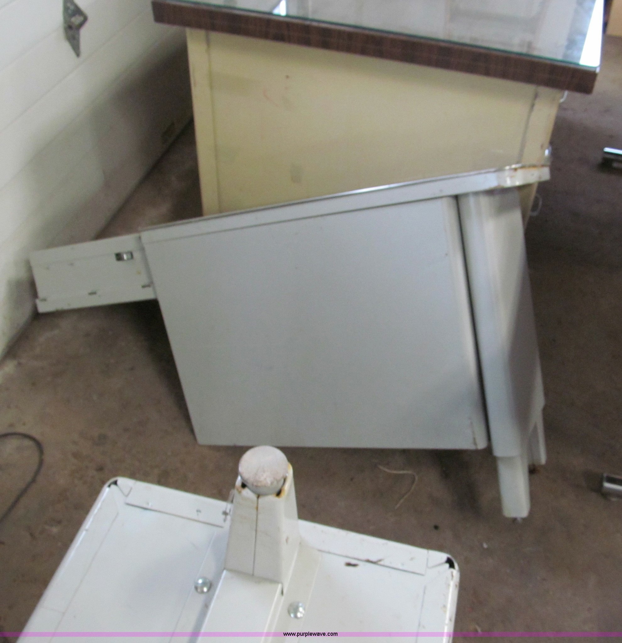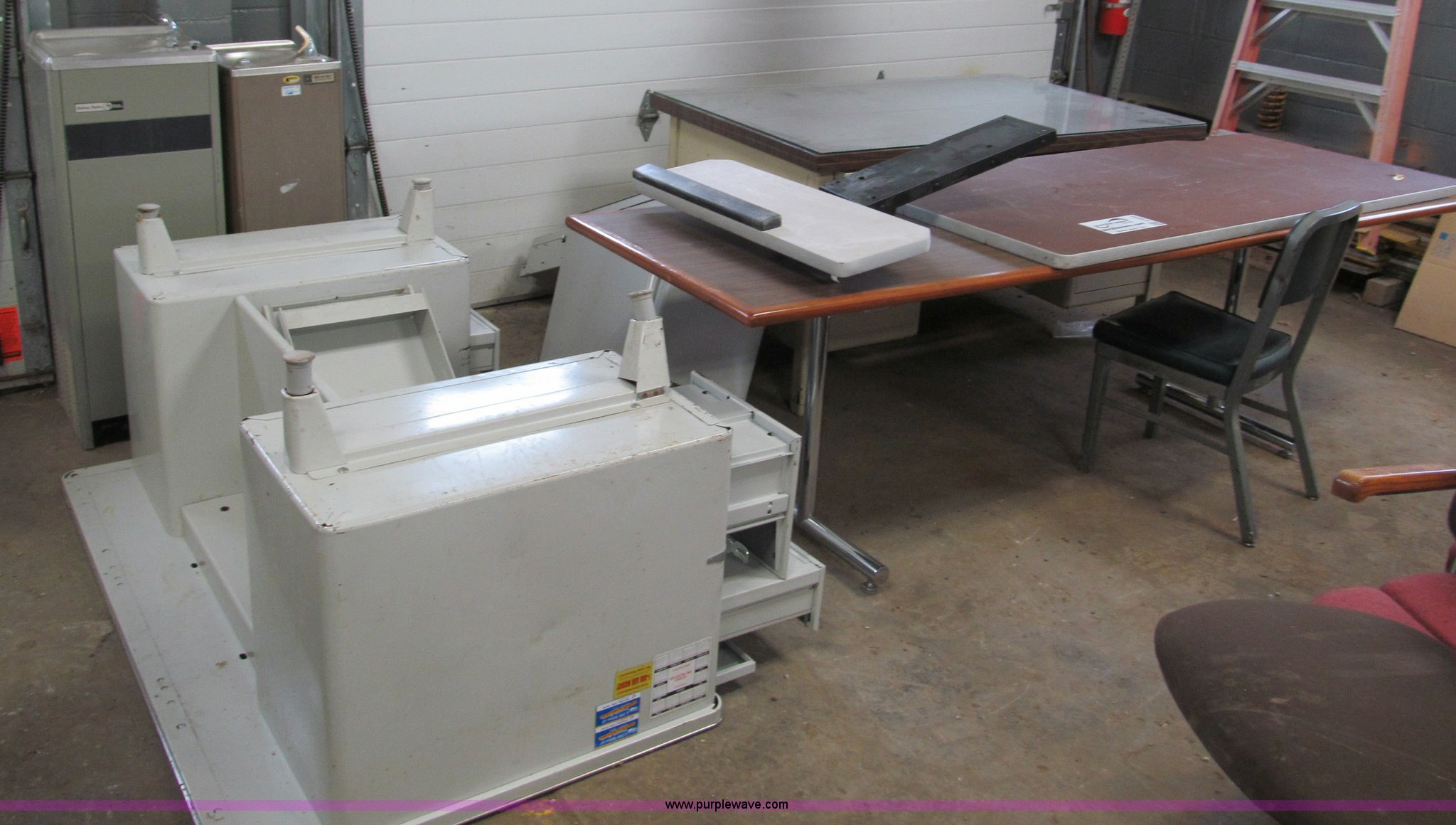 Purple Wave is selling a used Office Supplies and Equip. in Missouri. This item is a Assorted furniture with the following: (2) steel desks, (2) water fountains, Chair, Table