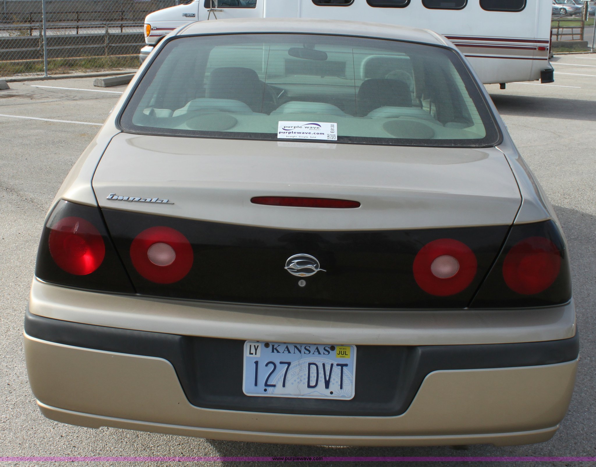 2005 Chevrolet Impala. 118,232 miles on odometer, 3.4L V6 SFI gas engine, Automatic transmission, AC and heat, Tilt, Cruise, AM/FM/CD, Power windows, locks, mirrors, and seats, Cloth interior, 225/60R16 tires, Slight hail damage. Title distribution may be delayed up to 14 days from verification of funds. 2G1WF52E059309195. Shipping quotes available. Fifth Judicial District. 430 Commercial St. Emporia, KS 66801