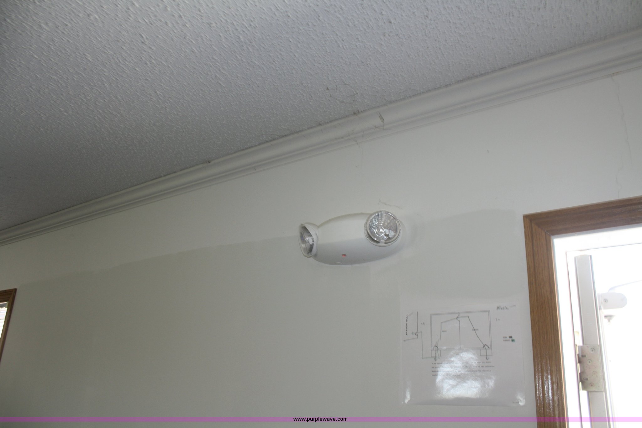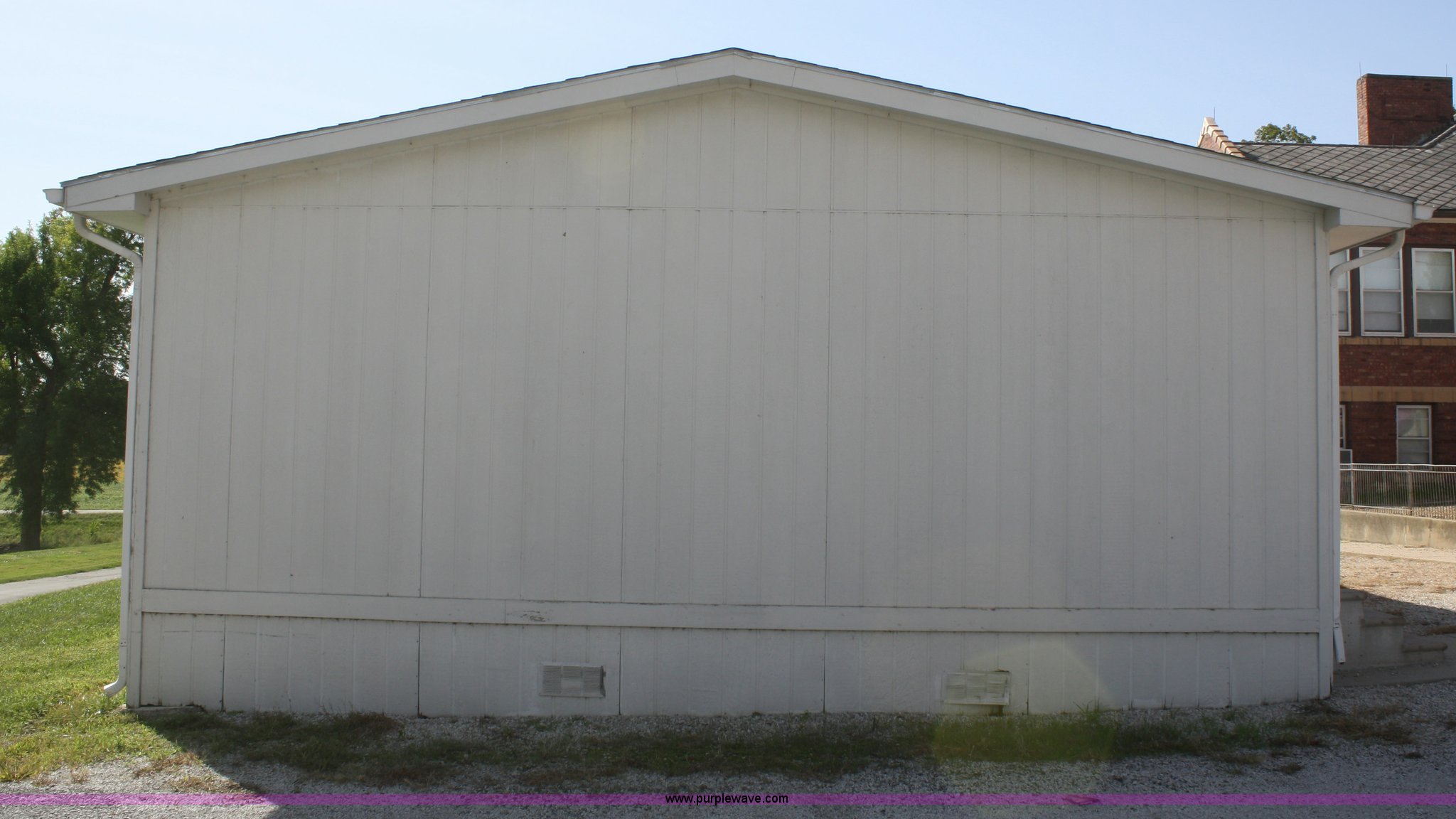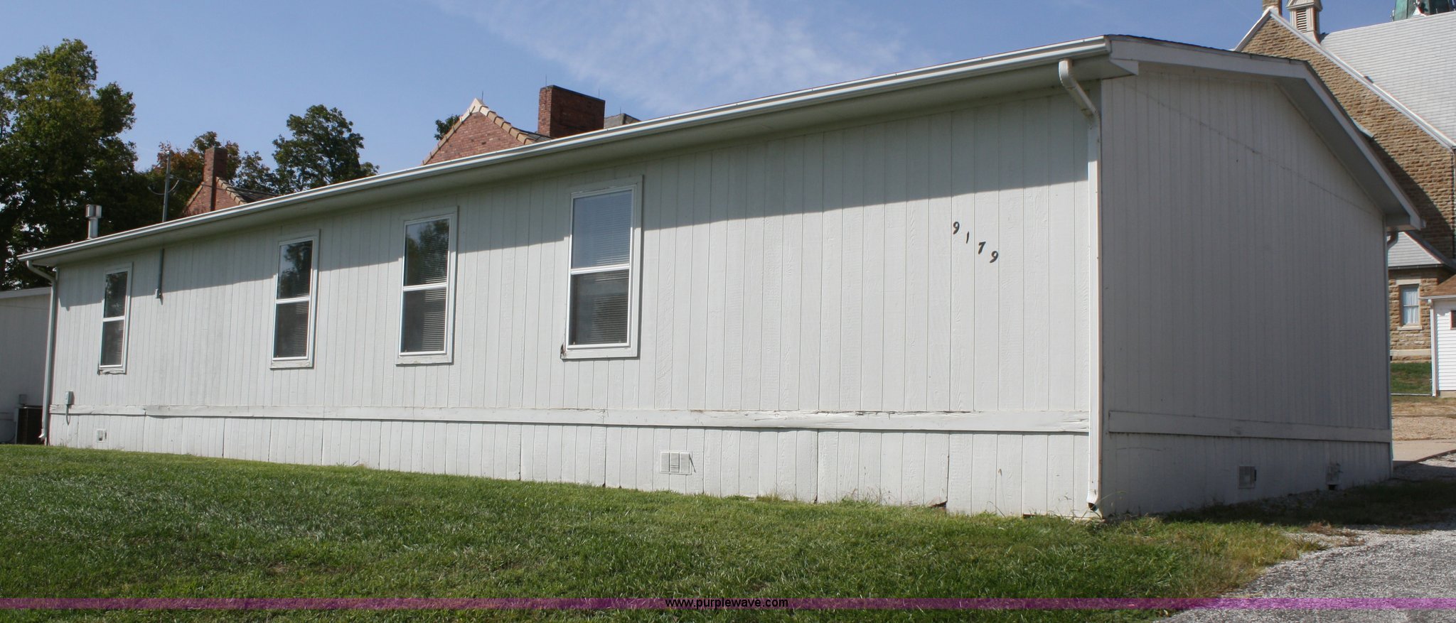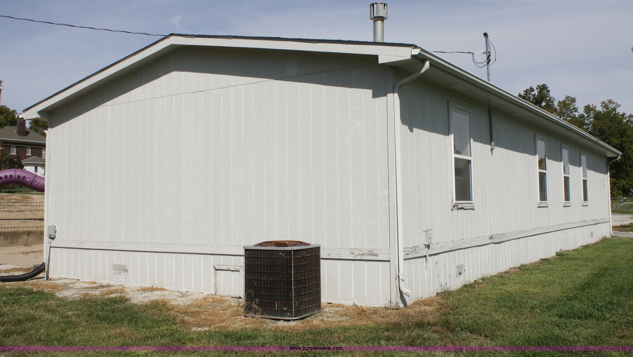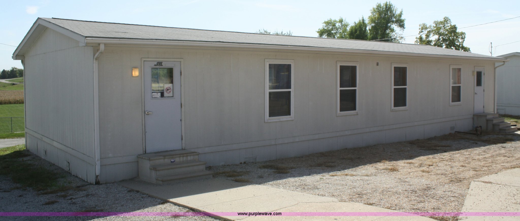 Mobile classroom with step. 60'L x 24'W, (2) rooms 43.5'L x 22'W, 15'L x 22'W, Carrier AC and furnace, (2) entry doors, (2) door steps, Sitting on concrete blocks, Contents not included, Electricity will be unhooked. Buyer responsible for removal. Shipping quotes available. 9179 Ball Park St. St. Benedict, KS 66538