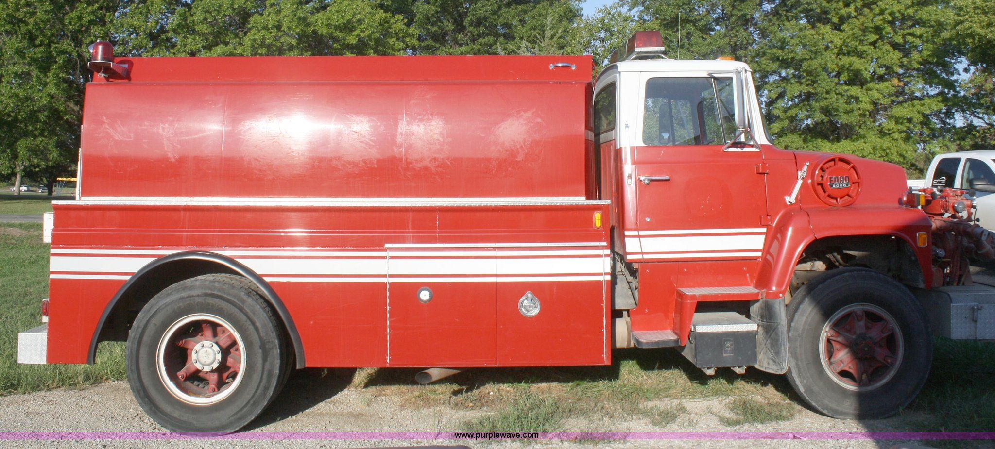 1982 Ford 8000 tanker truck. 14,383 miles on odometer Not Actual Mileage, Caterpillar 3208 10.4L V8 diesel engine 210 HP, Automatic transmission Model MT653, Heat, AMThor's Princess II pump 1,000 GPM capacity, 2,500 gallon tank capacity, Lights and sirens, (2) 10'L 5" hoses, Stainless steel tank and compartments, Newton 10" dump, 50 gallon fuel tank, Air brakes, 11.00R22 tires, Chassis redone in 1995, Pump leaks. 1FDYR80U0CVA37272. Shipping quotes available. Wakarusa Township. 300 W 31st St. Lawrence, KS 66046