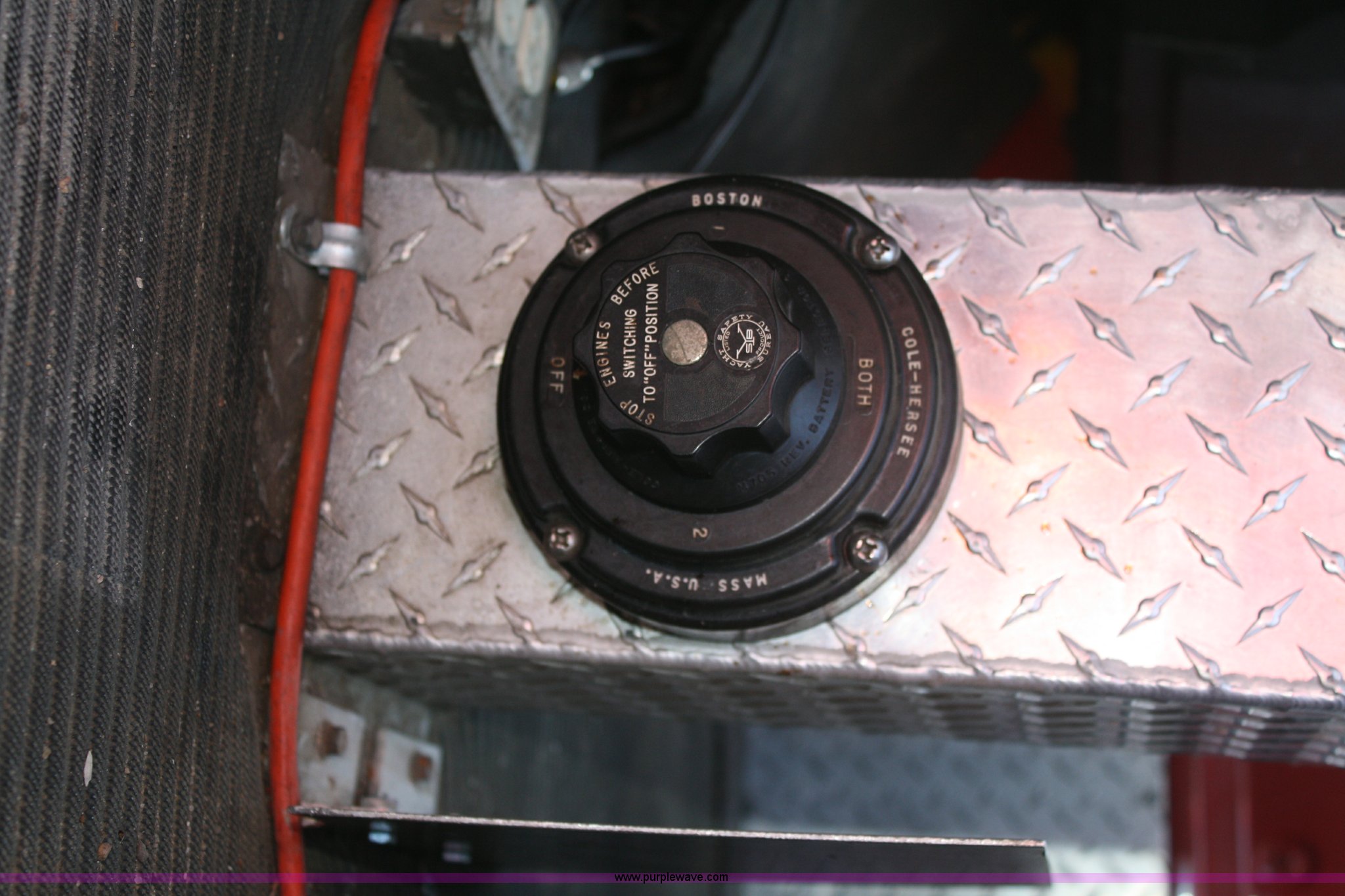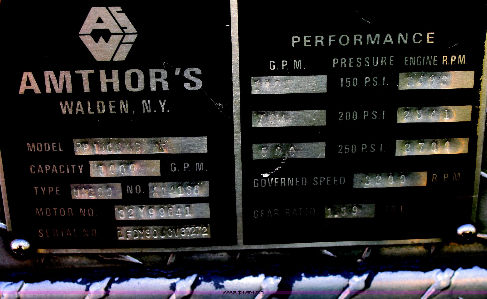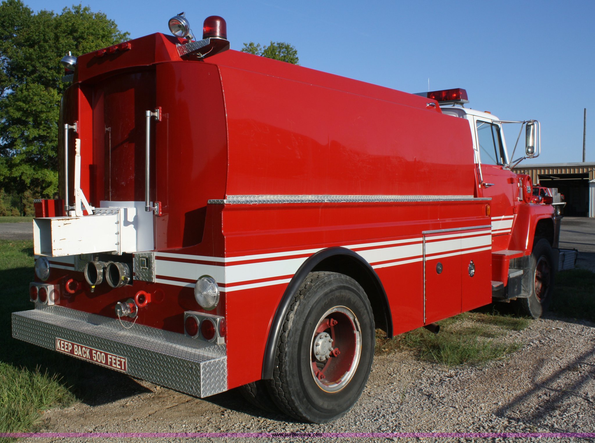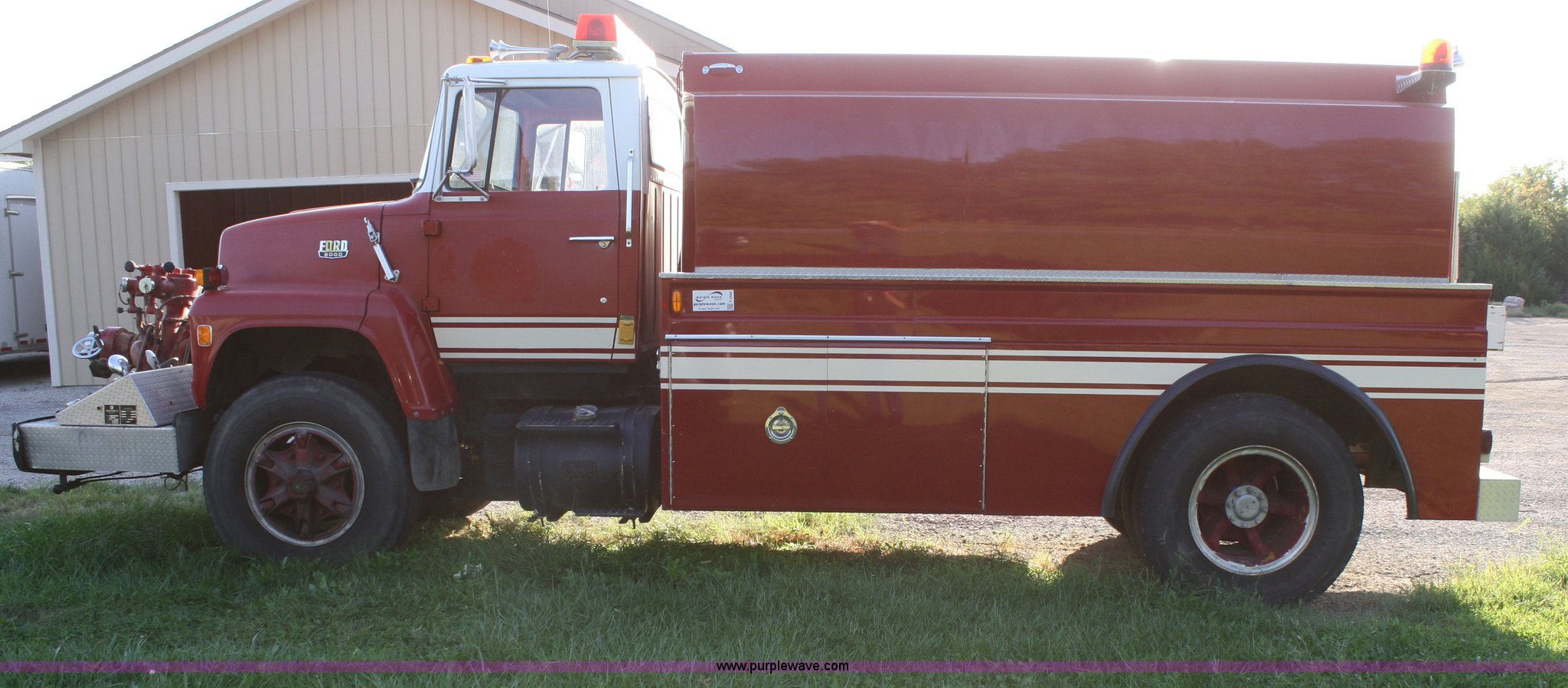 Purple Wave is selling a used Fire Truck or Emergency Vehicle in Kansas. This item is a 1982 Ford 8000 tanker truck with the following: 14,383 miles on odometer, Not Actual Mileage, Caterpillar 3208 10.4L V8 diesel engine, 210 HP, Automatic transmission, Model MT653, Heat, AMThor's Princess II pump, 1,000 GPM capacity, 2,500 gallon tank capacity, Lights and sirens, (2) 10'L 5" hoses, Stainless steel tank and compartments, Newton 10" dump, 50 gallon fuel tank, Air brakes, 11.00R22 tires, Chassis redone in 1995, Pump leaks