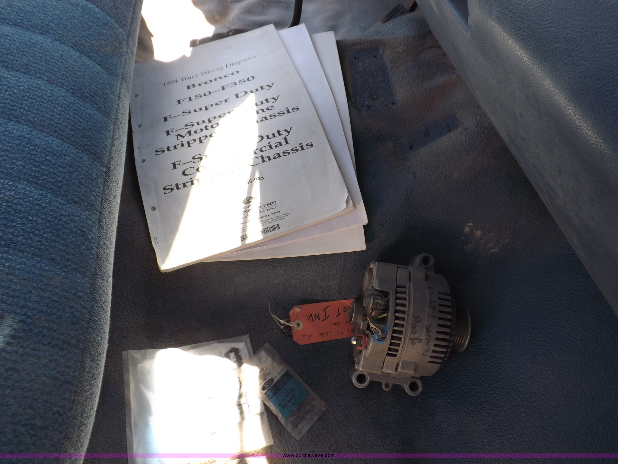 Purple Wave is selling a used Passenger Vehicle in Colorado. This item is a 1995 Ford F150 XL pickup truck with the following: 156,286 actual miles, 5.8L V8 EFI gas engine, Automatic transmission, Four wheel drive, AC and heat, AM/FM, Manual windows and locks, Cloth interior, 235/75R15 tires, Service manuals included, Electrical manuals, Rebuilt spare alternator