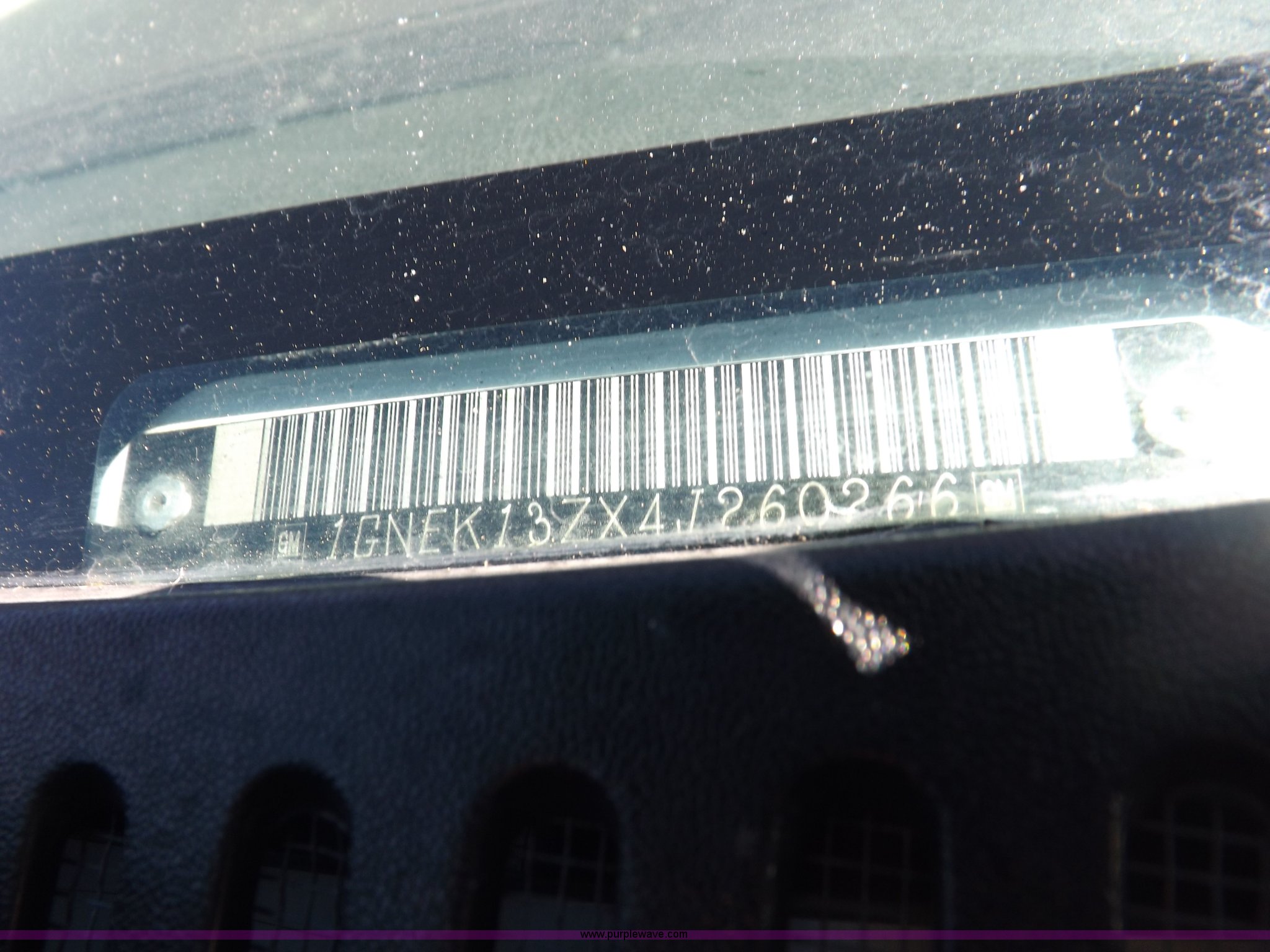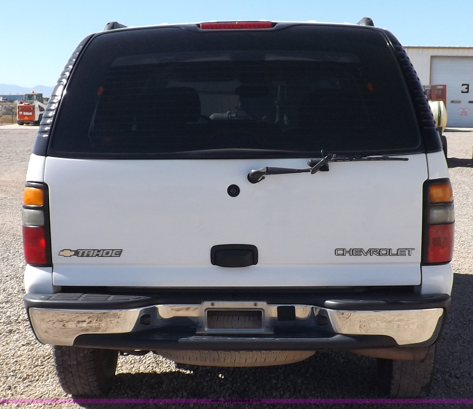 2004 Chevrolet Tahoe K1500 SUV. 120,604 actual miles, 5.3L V8 SFI gas engine, Automatic transmission, Four wheel drive, AC and heat, Tilt, Cruise, AM/FM, Power windows, locks, mirrors, and seat, Cloth front seats, Vinyl rear seats, Dual front/rear climate controls, Tinted windows, Remote start, Special Service package, 245/75R16 tires, No center console, Holes drilled for communication and lighting equipment. 1GNEK13ZX4J260266. Shipping quotes available. Pueblo West Metro District. 280 E McCullock Blvd. Pueblo, CO 81007