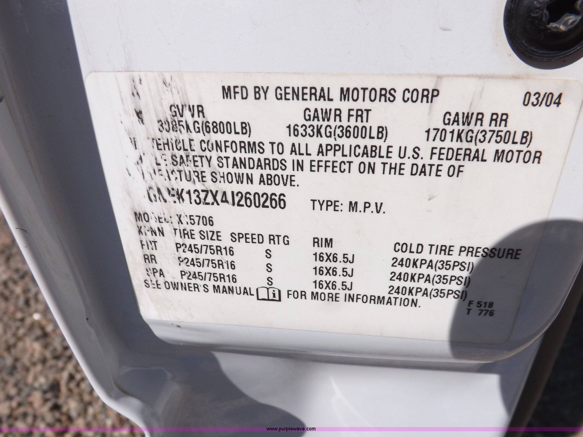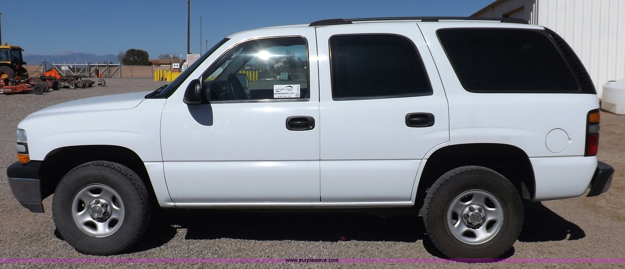 Purple Wave is selling a used Passenger Vehicle in Colorado. This item is a 2004 Chevrolet Tahoe K1500 SUV with the following: 120,604 actual miles, 5.3L V8 SFI gas engine, Automatic transmission, Four wheel drive, AC and heat, Tilt, Cruise, AM/FM, Power windows, locks, mirrors, and seat, Cloth front seats, Vinyl rear seats, Dual front/rear climate controls, Tinted windows, Remote start, Special Service package, 245/75R16 tires, No center console, Holes drilled for communication and lighting equipment