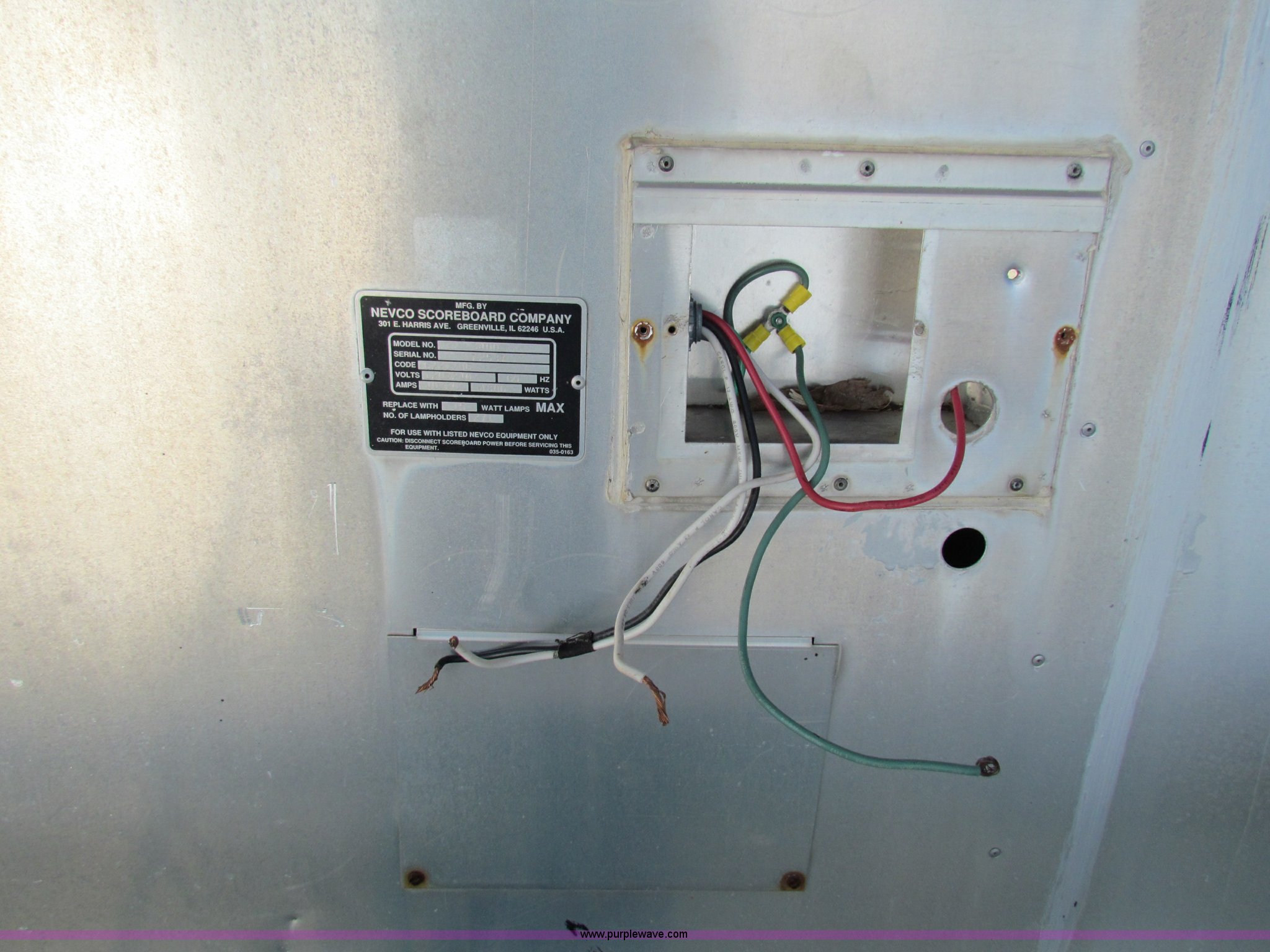Purple Wave is selling a used Sporting Goods in Kansas. This item is a NEVCO 2400 scoreboard with the following: 18' x 8', Working when removed from service, Controller included, 120/240V, 60 Hz, 4,800 watts, Serial 72537