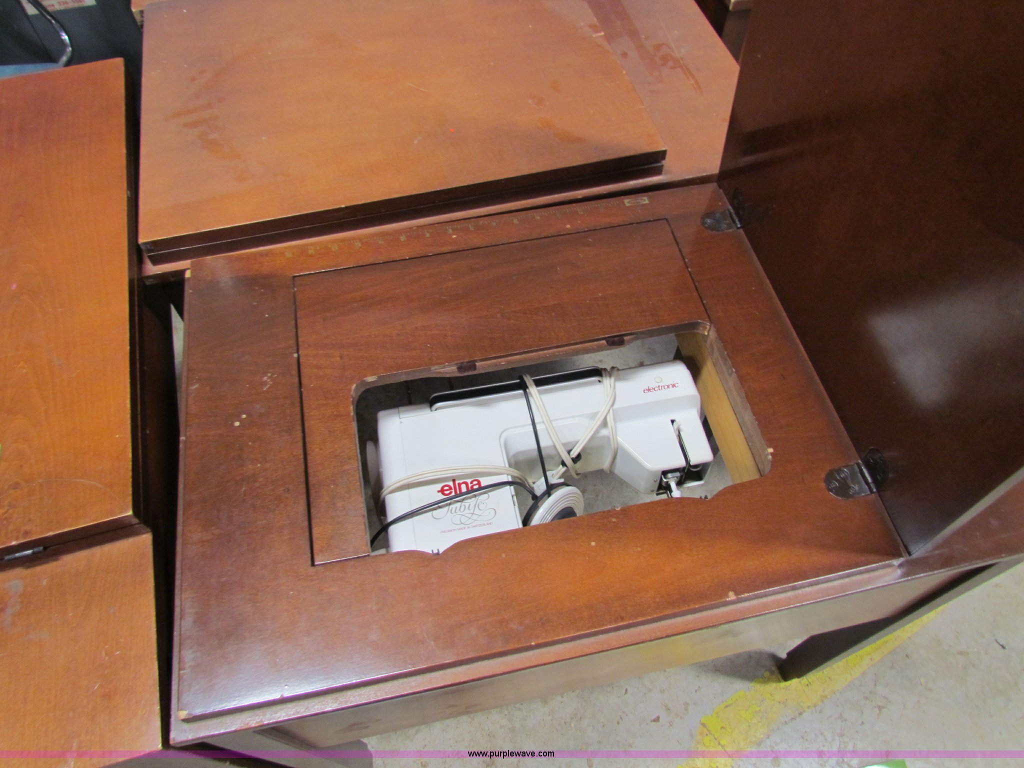 (8) Elna sewing machines. Custom cabinets included. Shipping quotes available. USD 286. Sedan, KS 67361