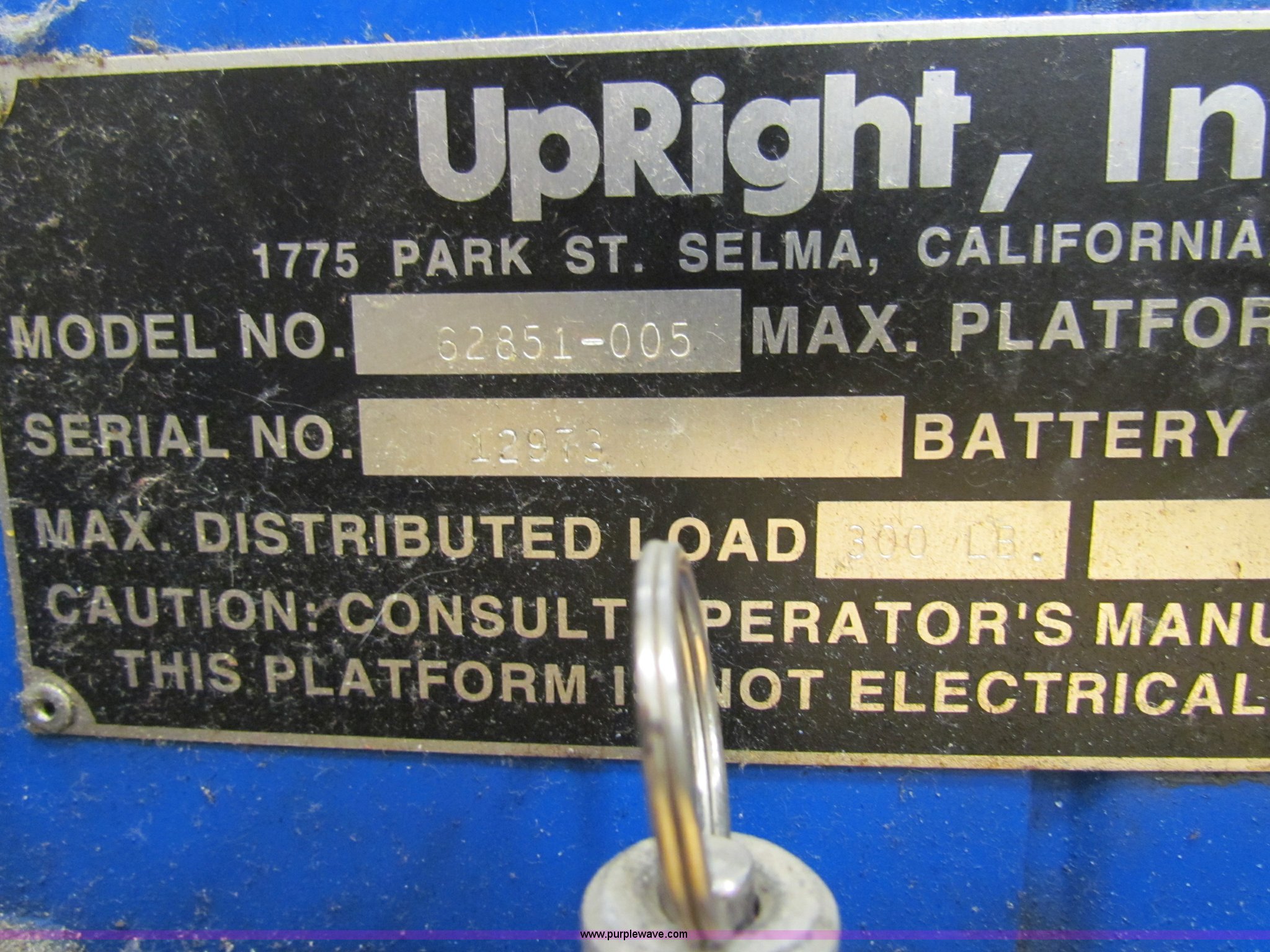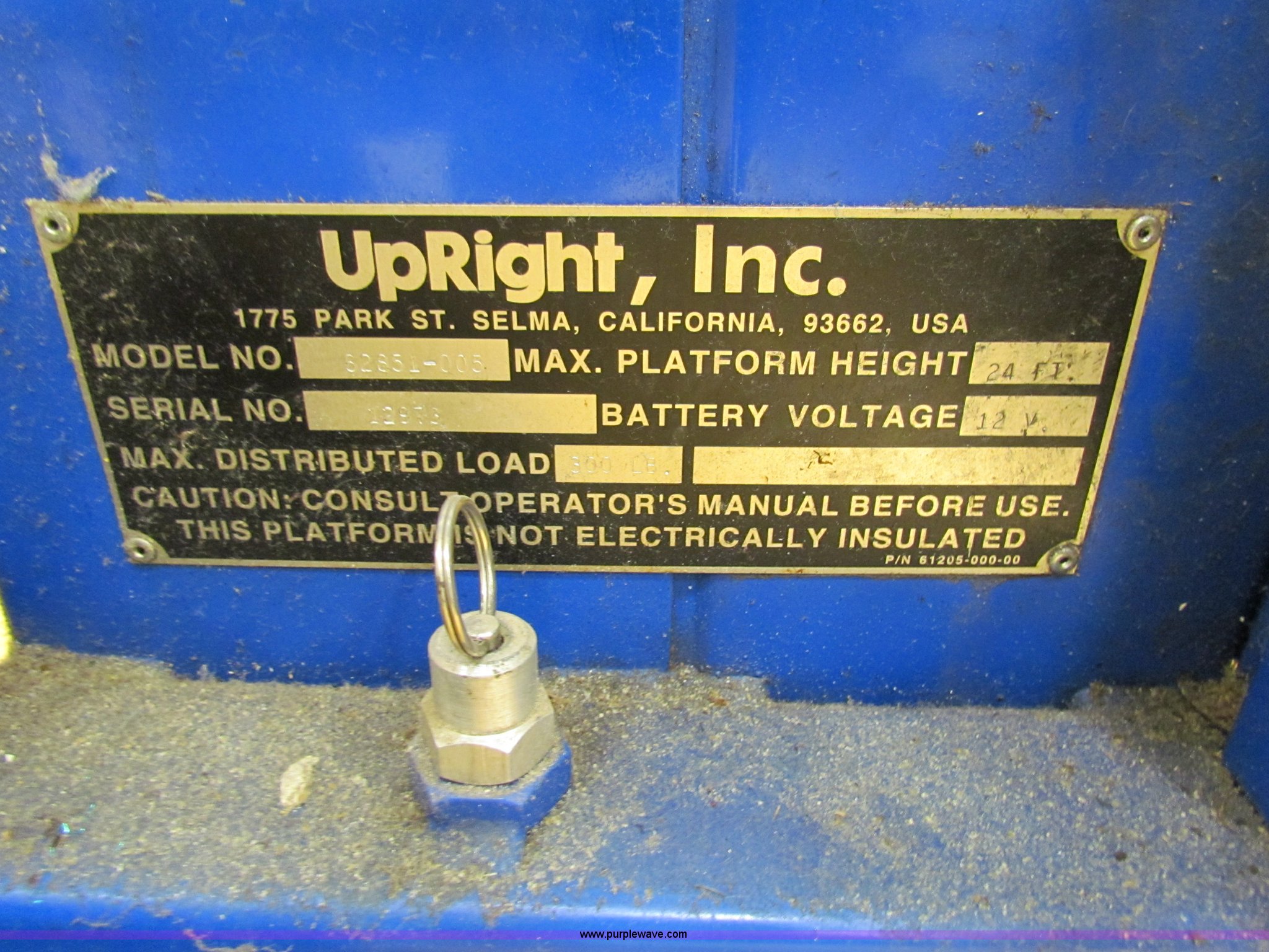 Take a look at this used Upright man lift being sold on November 6th, 2012 in the SOLD! Tuesday November 6 Government Auction. Take a look at all of the item information below or take a look at similar auctions for Aerial Lifts.