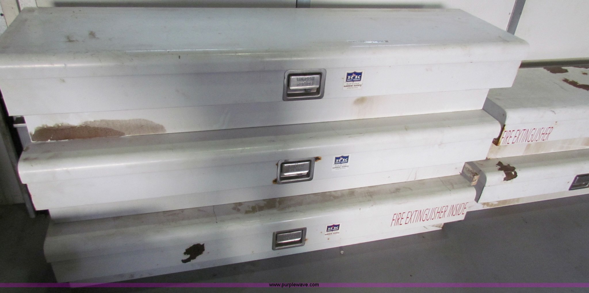 (6) assorted toolboxes. Cross bed, (5) side mount boxes. Shipping quotes available. City of Winfield Fleet Services. Winfield, KS 67156