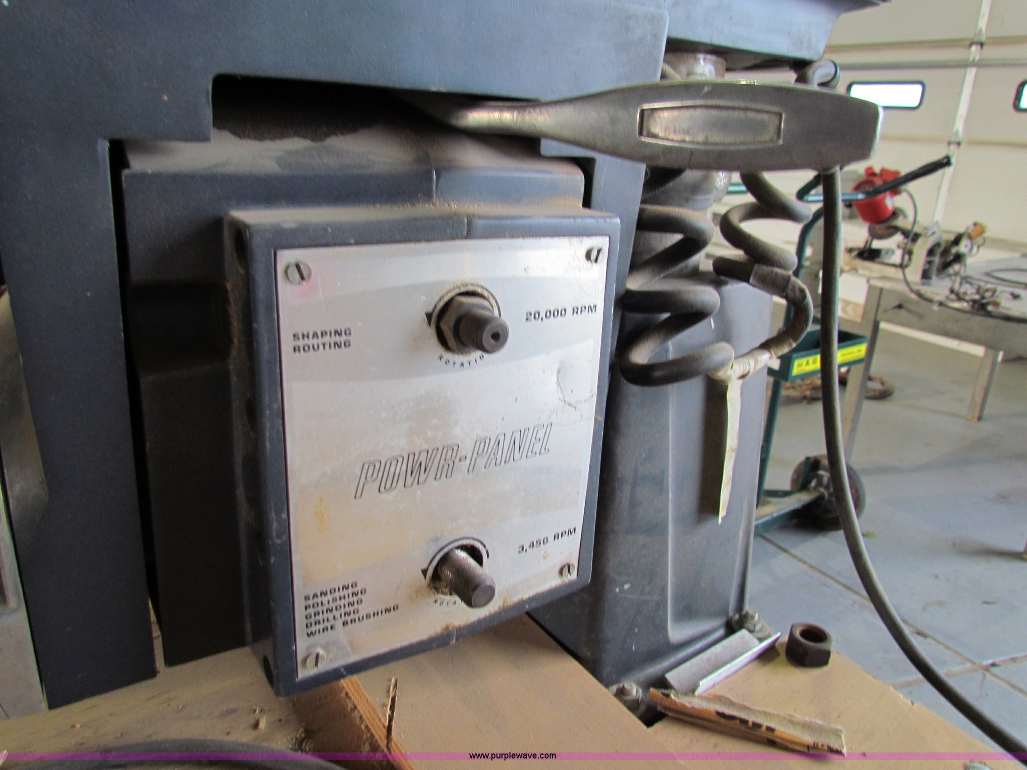 Purple Wave is selling a used Tools in Kansas. This item is a Wards Powr-Kiart 10" radial arm saw with the following: Powr Panel included, 20,000 RPM, Shaping, Routing, 3,450 RPM, Sanding, Polishing, Grinding, Drilling, Wire brushing, Adjustable table