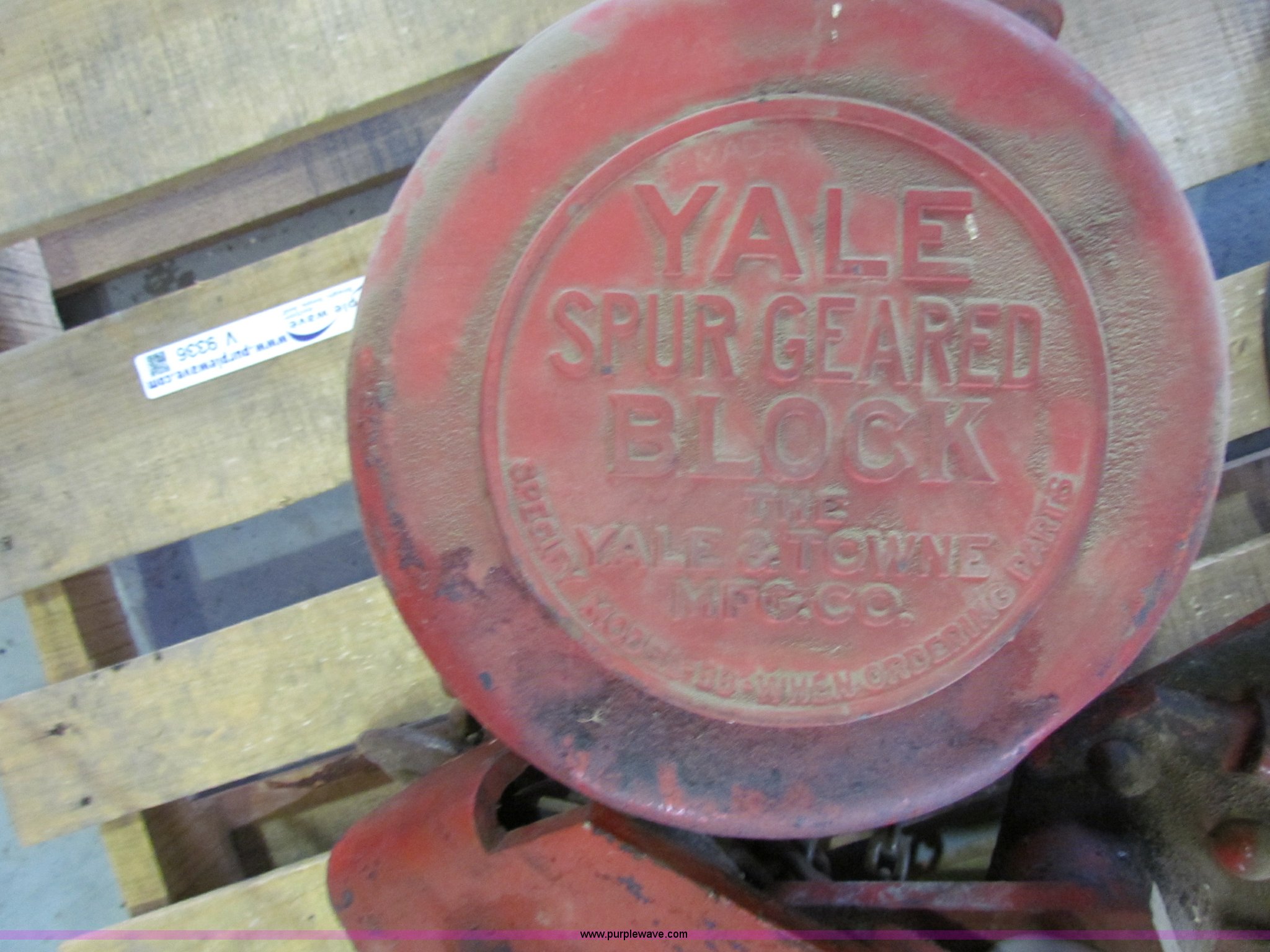 Yale spur geared block chain hoist has sold in Winfield, Kansas for $88. Item V9336 sold on November 6th, 2012.