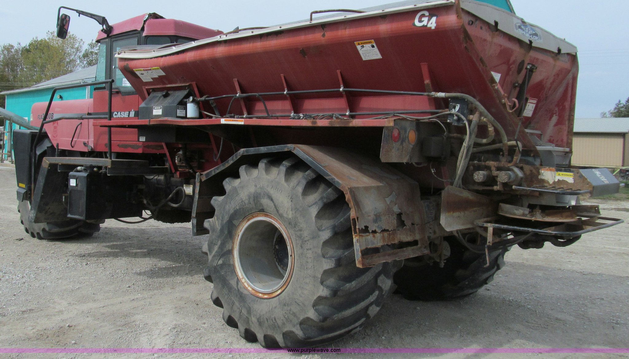 Purple Wave is selling a used Applicator Self Propelled in Missouri. This item is a 2000 Case IH Titan FLX3300B dry floater truck with the following: 34,063 miles on odometer, Case 6TAA-8304 six cylinder diesel engine, 300 HP, Serial 46134913, Allison six speed automatic transmission, New Leader G4 dry spinner box, Model 1-3020-14-G4, Serial 115431, Stainless foam marker tank, Dual spinner, Raven SCS-600 controller, AC and heat, Work lights, Panasonic radio, 66x43.00-25 tires, Truck has been rolled, Cab/body damage, Serial JFG0004296