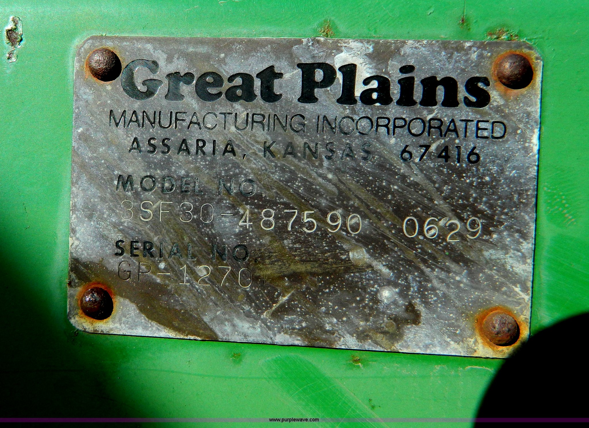 Great Plains Solid Stand 30 grain drill. Model 3SF30-4875900629, 30'W, Three section, 10" spacing, Rubber tubes and press wheels, Double disk openers, Hydraulic fold marker, Serial GP1270. Shipping quotes available. Open Range & Hay. 1920 Hickory Road. Belleville, KS 66935
