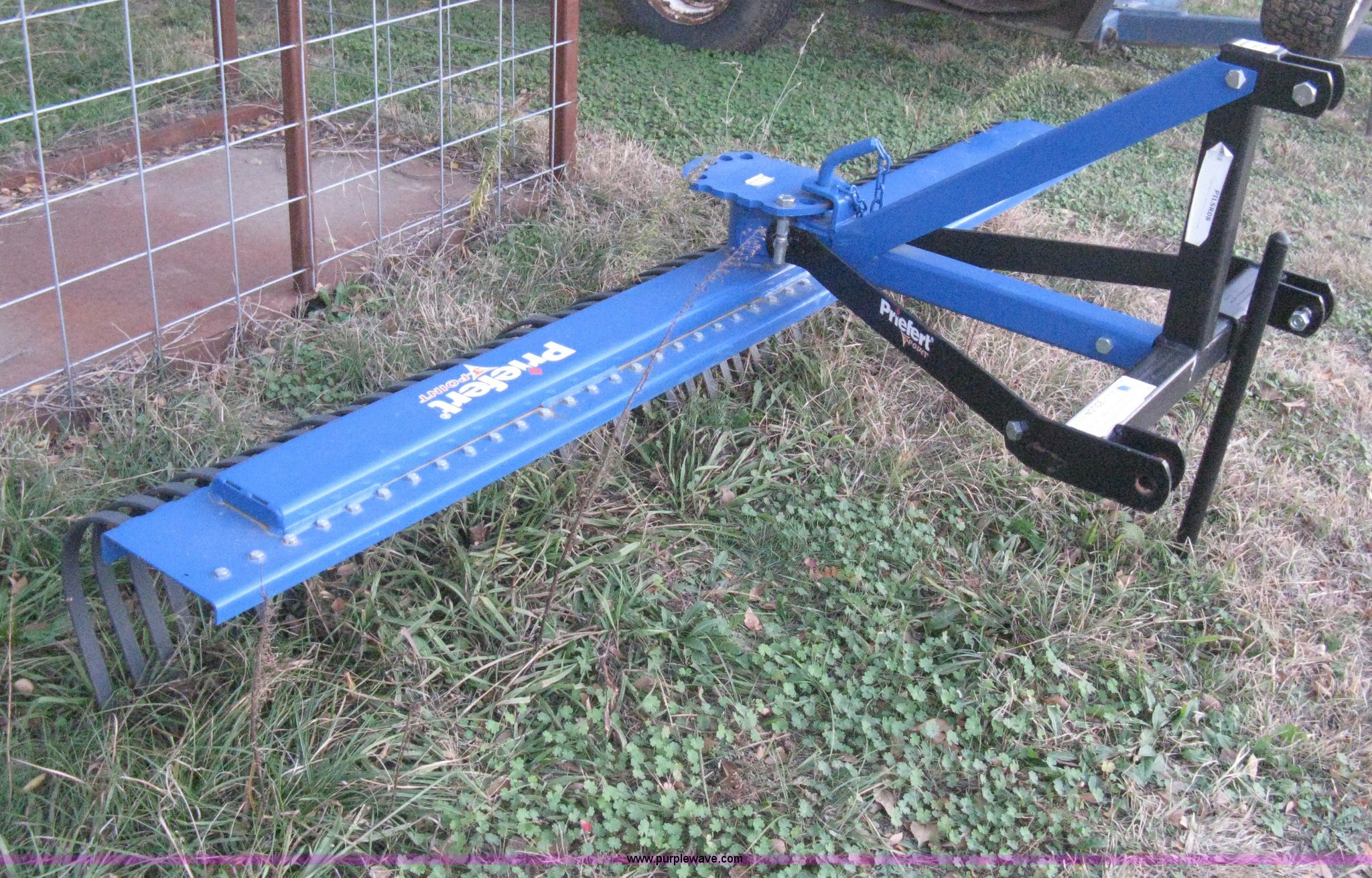 Purple Wave is selling a used Ag Equip. Other in Kansas. This item is a 2012 Priefert landscape rake with the following: 8'L, Three point, Category 1, Adjustable angle, Three point stand, Unused