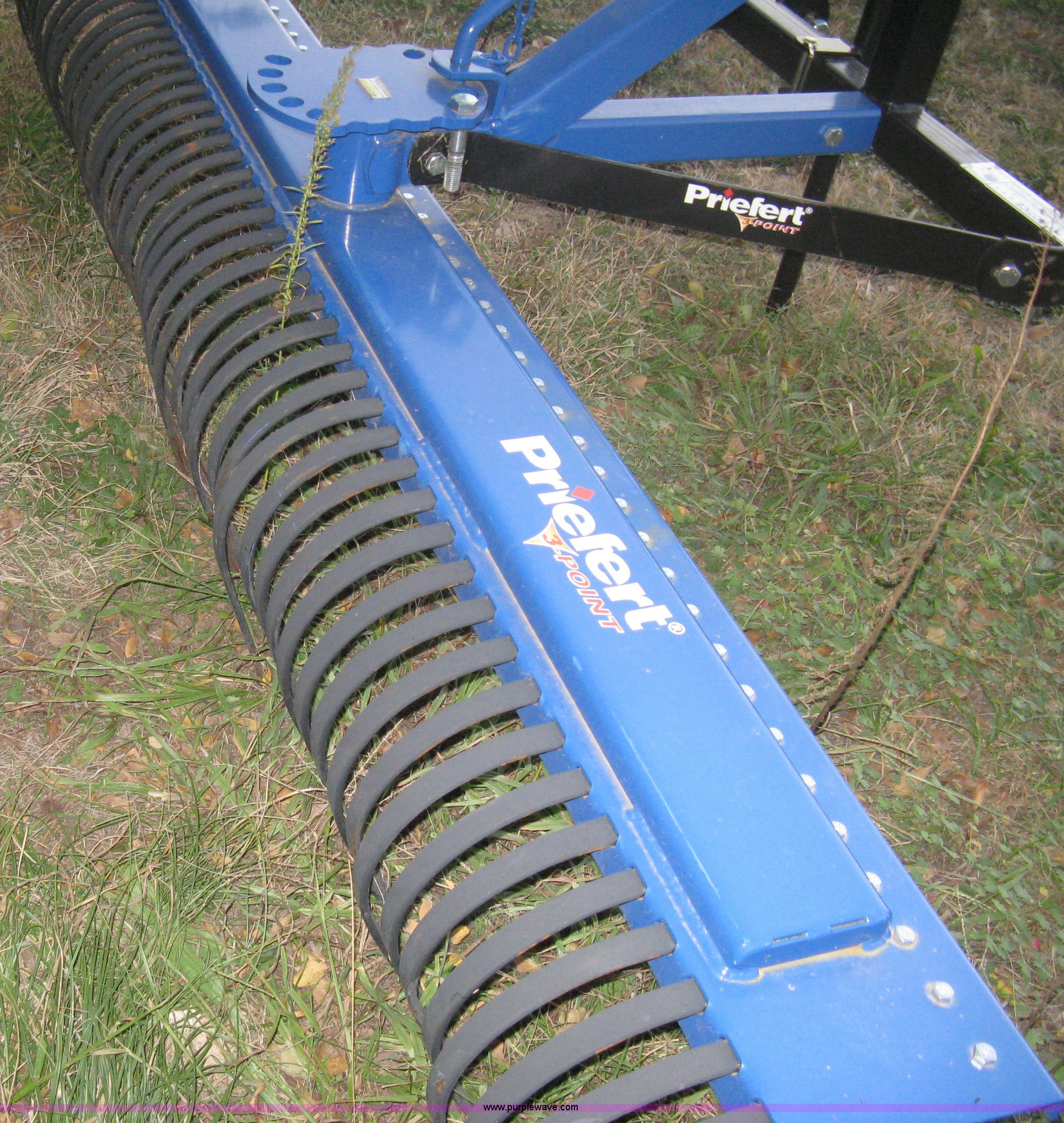 2012 Priefert landscape rake. 8'L, Three point, Category 1, Adjustable angle, Three point stand, Unused. Shipping quotes available. Sod Shop. Sedgwick, KS 67135