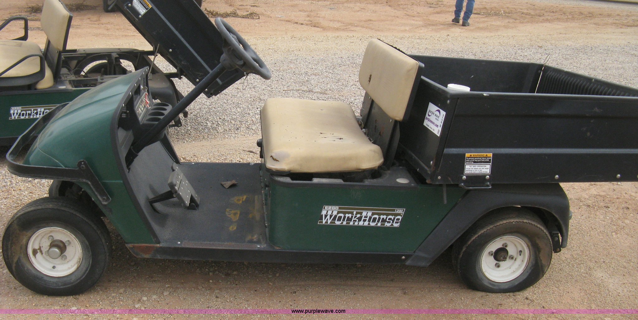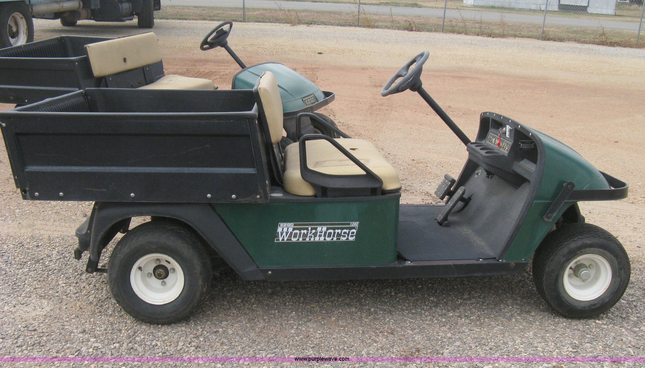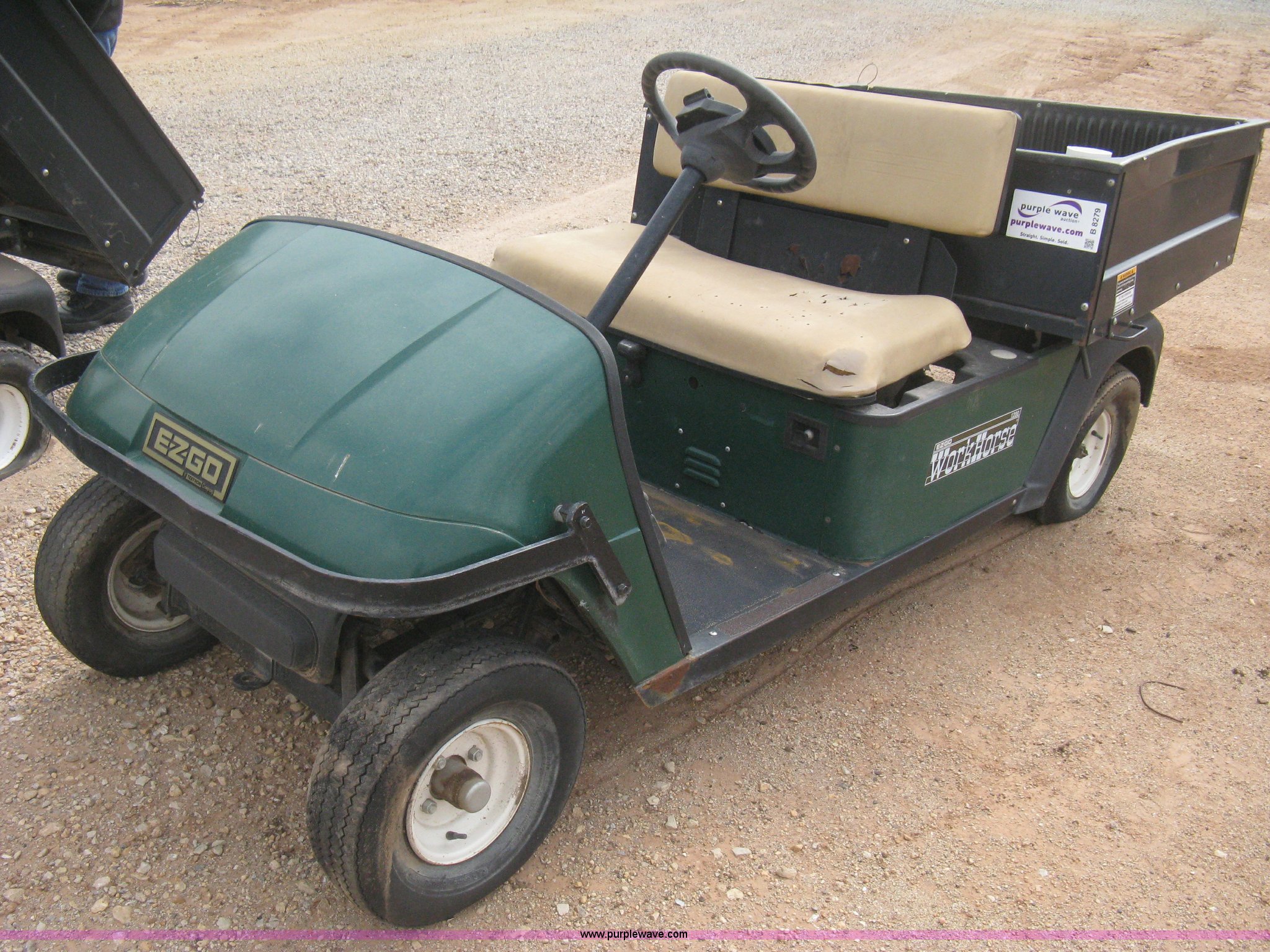 Purple Wave is selling a used Utility Vehicle in Kansas. This item is a (2) EZ-GO 1200G Work Horse golf carts with the following: Two cylinder gas engine, Forward and reverse gears, Dump bed, 18x9.50-9 tires, Operating condition unknown, One has bad engine, One has bad rear end, Serial 1548816, 1548809