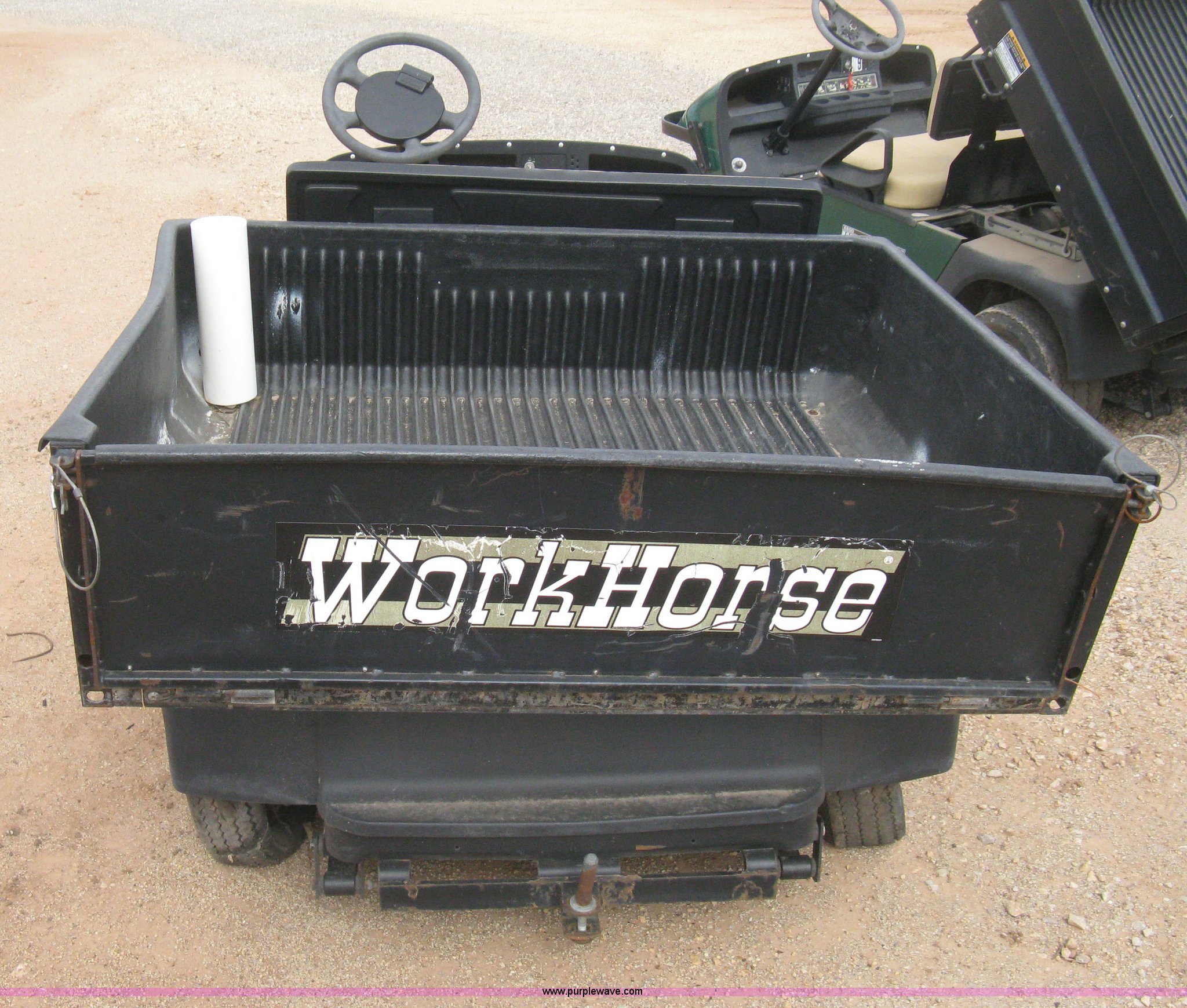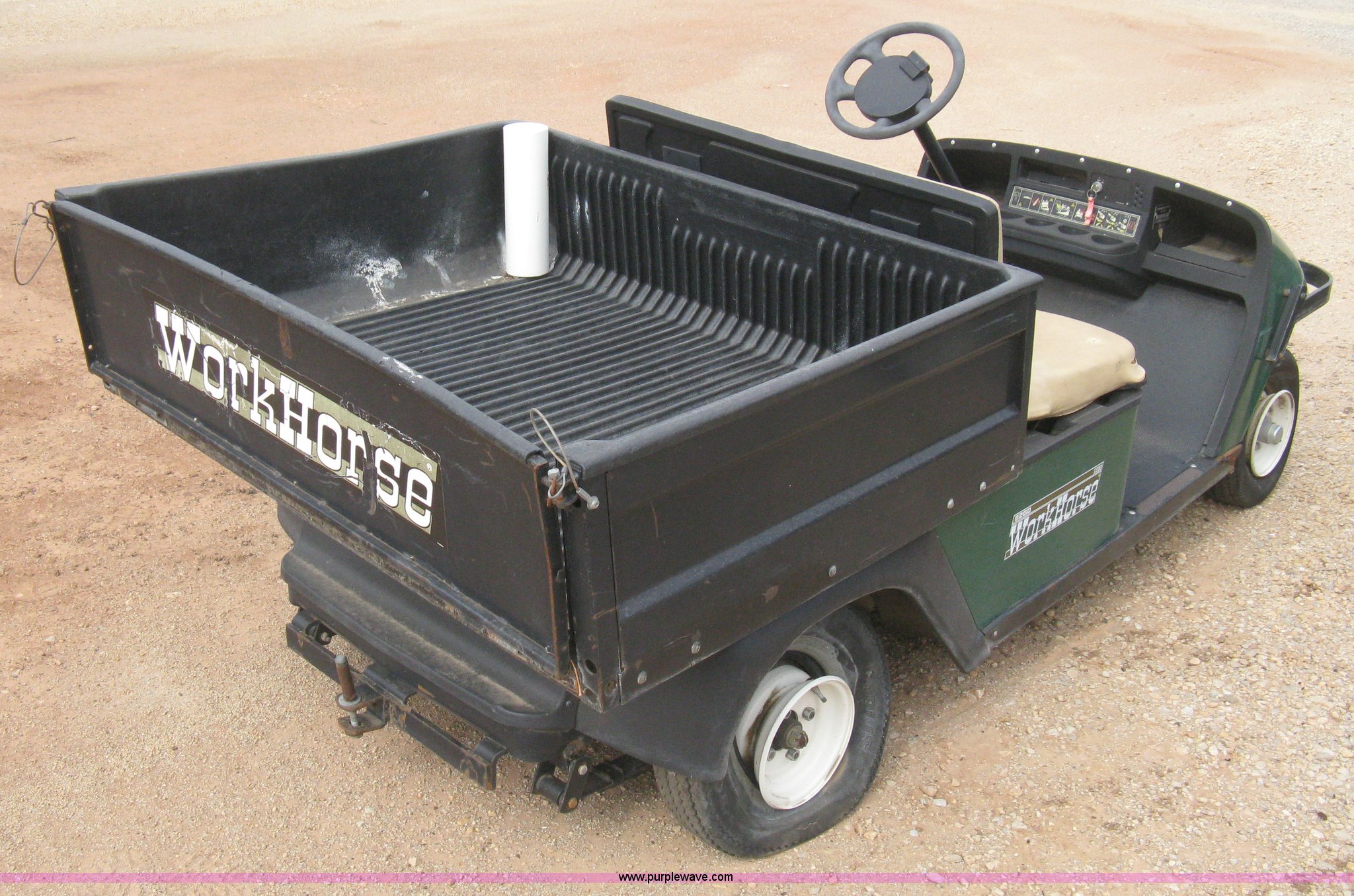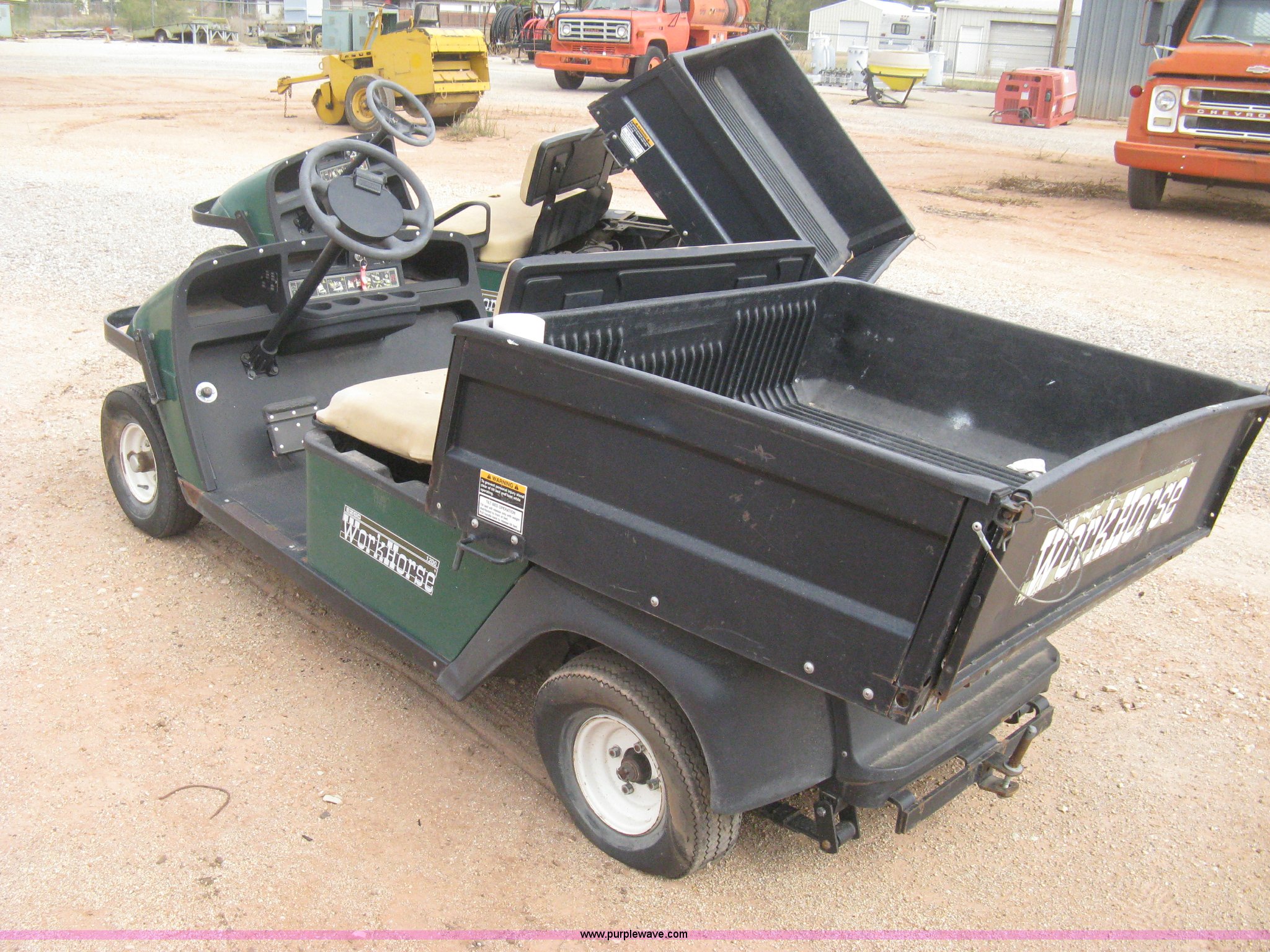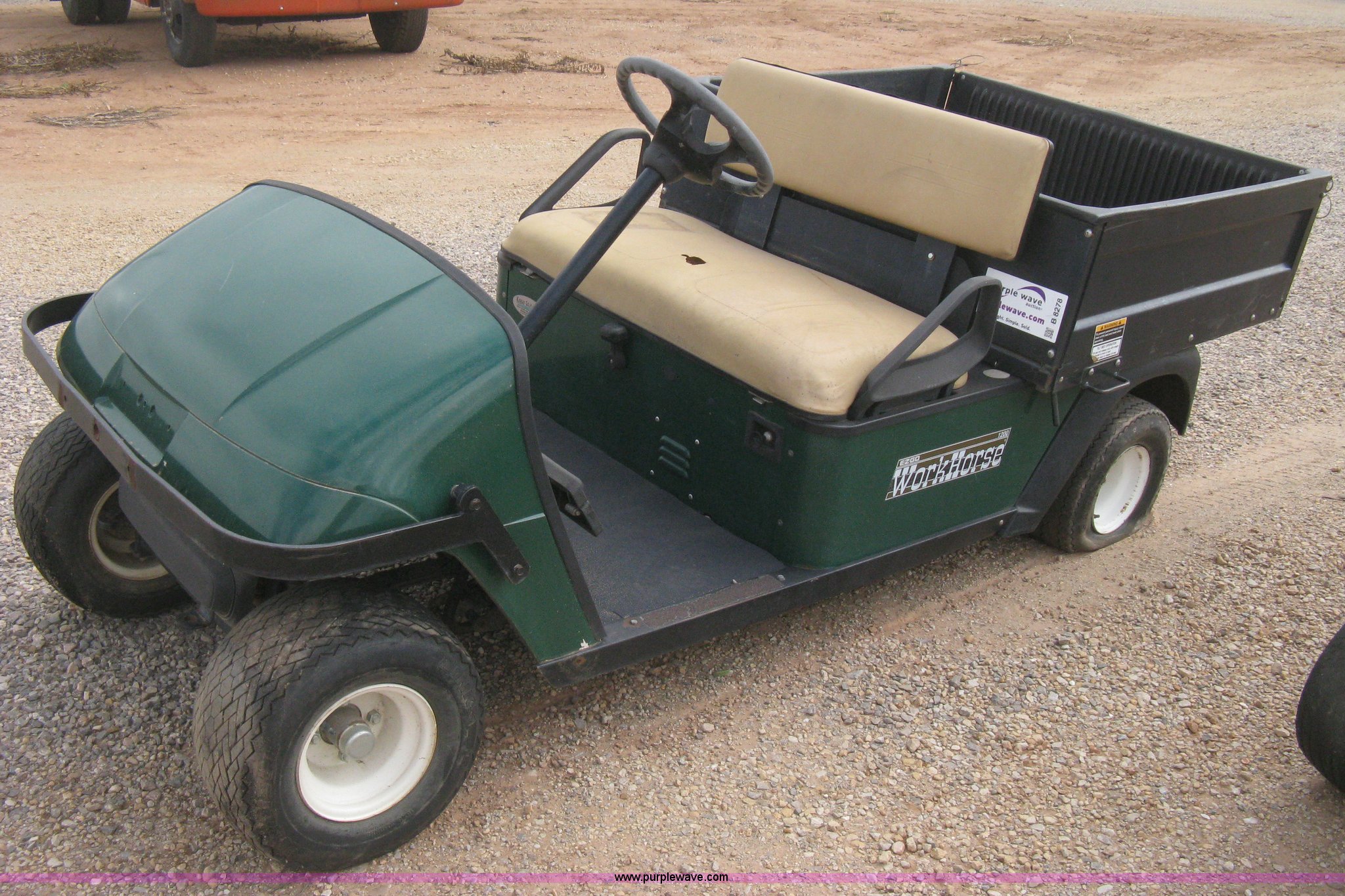 Purple Wave is selling a used Utility Vehicle in Kansas. This item is a (2) EZ-GO 1200G Work Horse golf carts with the following: Two cylinder gas engine, Forward and reverse gears, Dump bed, 18x9.50-9 tires, Operating condition unknown, One has bad engine, One has bad rear end, Serial 1548816, 1548809