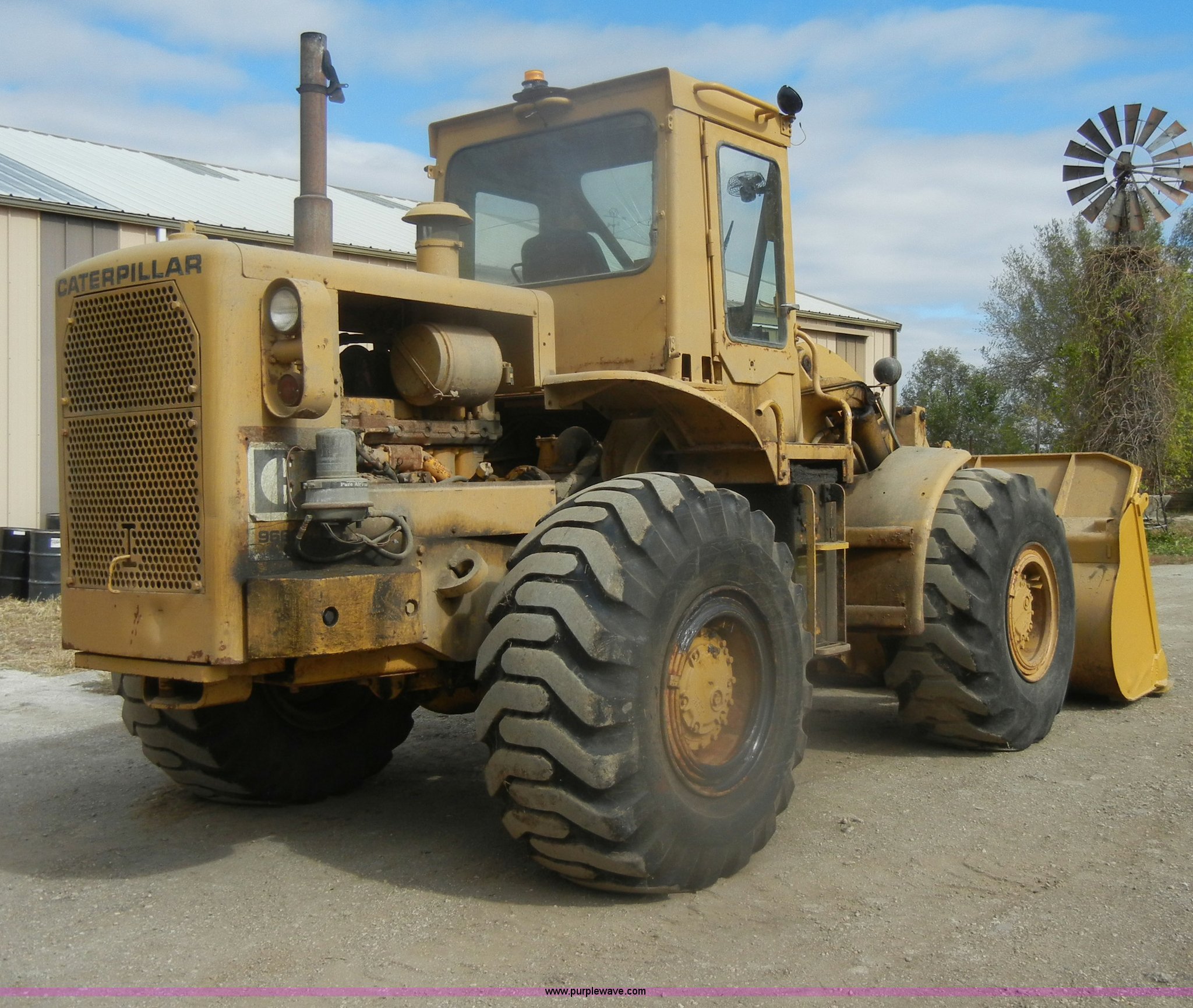 Purple Wave is selling a used Wheel Loader in Kansas. This item is a 1972 Caterpillar 966C wheel loader with the following: Caterpillar D333CT six cylinder diesel engine, 170 HP, Four speed powershift transmission, Heat, Two stick loader control, 4 cu. yd. bucket, Air brakes, 23.5-25 tires, 36,890 lbs. base operating weight, Serial 76J6129