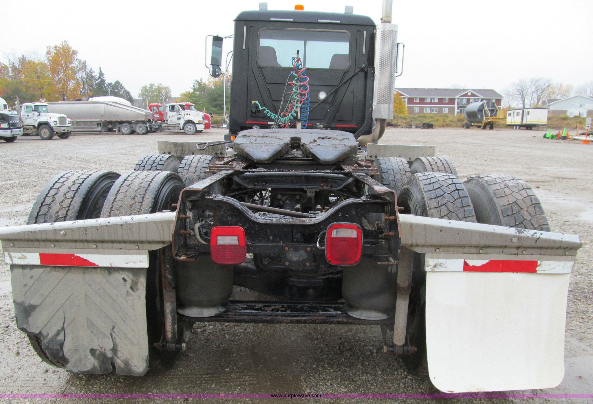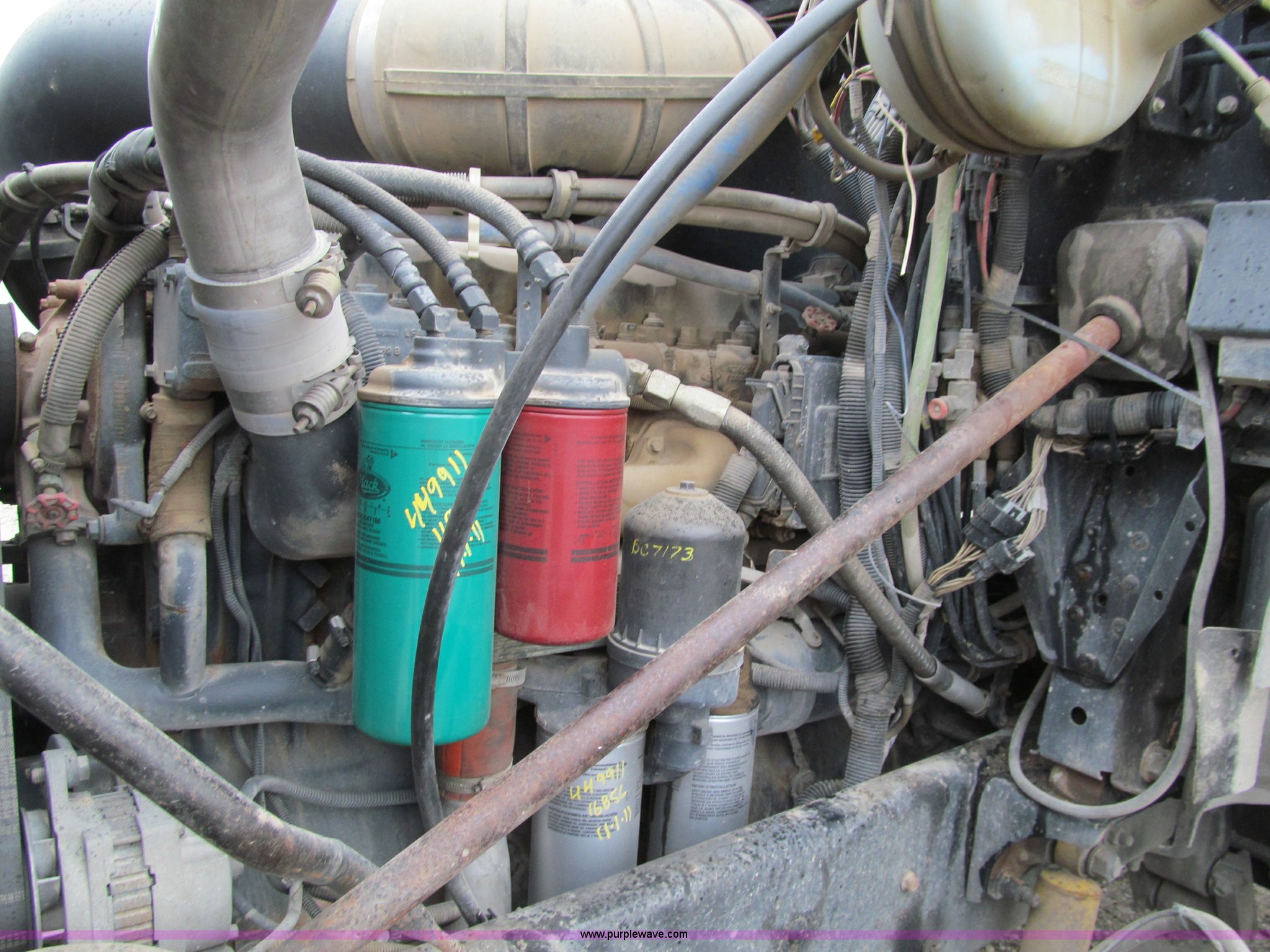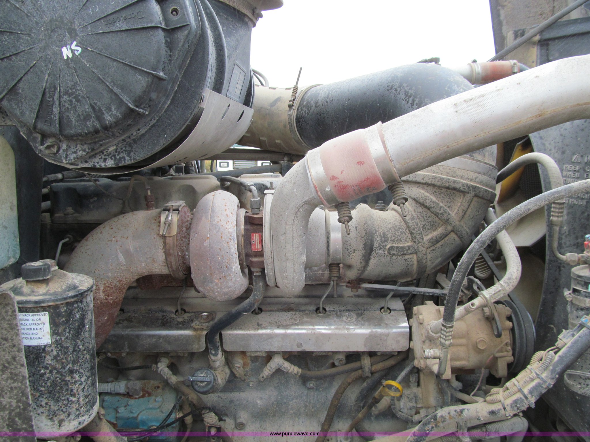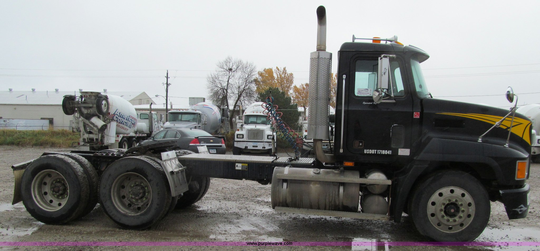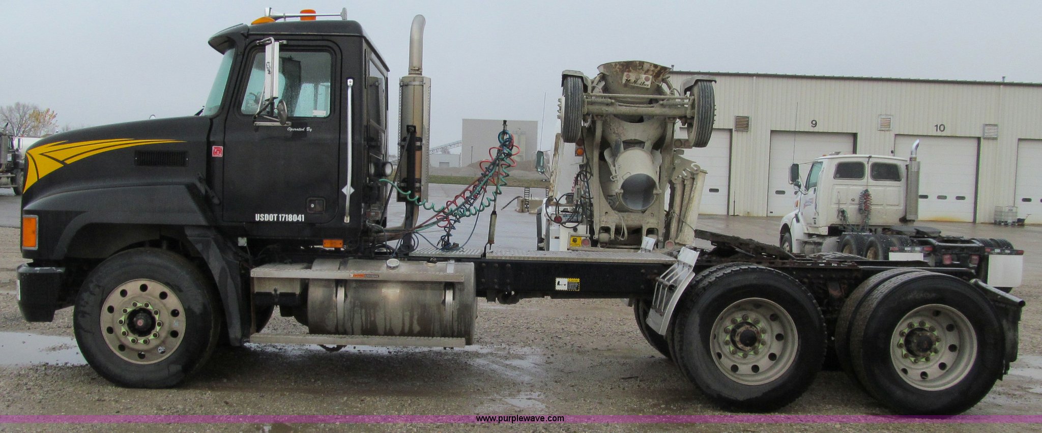 Purple Wave is selling a used Truck Tractor in Iowa. This item is a 2001 Mack CH613 semi truck with the following: 450,105 miles on odometer, 16,865 hours on meter, Mack E7-460 12.0L L6 diesel engine, Fuller 8LL manual transmission, AC and heat, Tilt, Cruise, AM/FM/cassette, Passenger daylight door, Telescoping steering wheel, Air suspension seat, Power windows, Visor, Bumper, Block heater, Dual 96 gallon fuel tanks, Single rear exhaust stack, Aluminum deck plate, Stainless steel quarter fenders, Air slide fifth wheel, Dump valves, Air suspension, Air brakes, Brake controller, Mack Carriers inter-axle differential, 4.17 gear ratio, 208" wheelbase, Aluminum Budd wheels, 11R24.5 tires, GVWR 50,000 lbs, FAWR 12,000 lbs, IAWR 19,000 lbs, RAWR 19,000 lbs, Unit# 525048