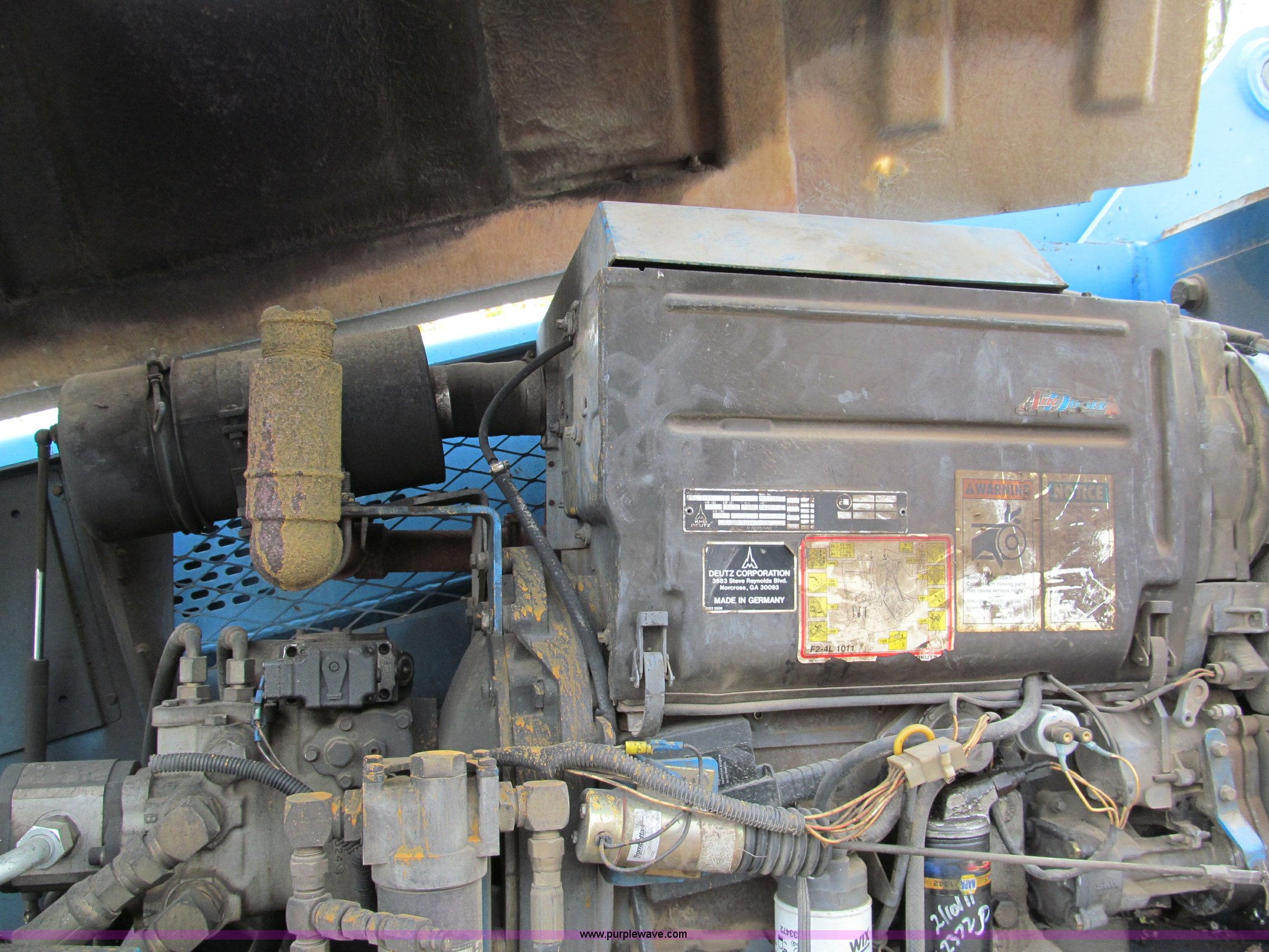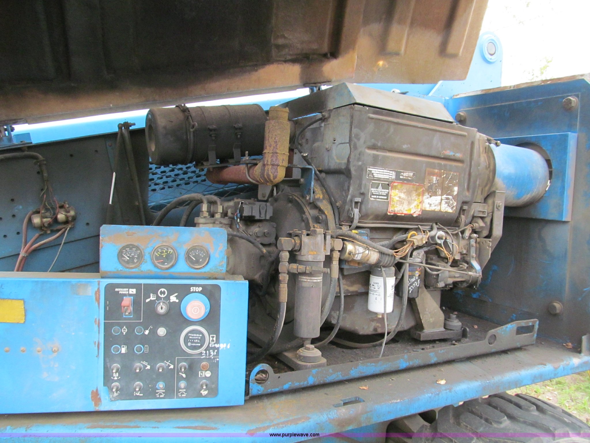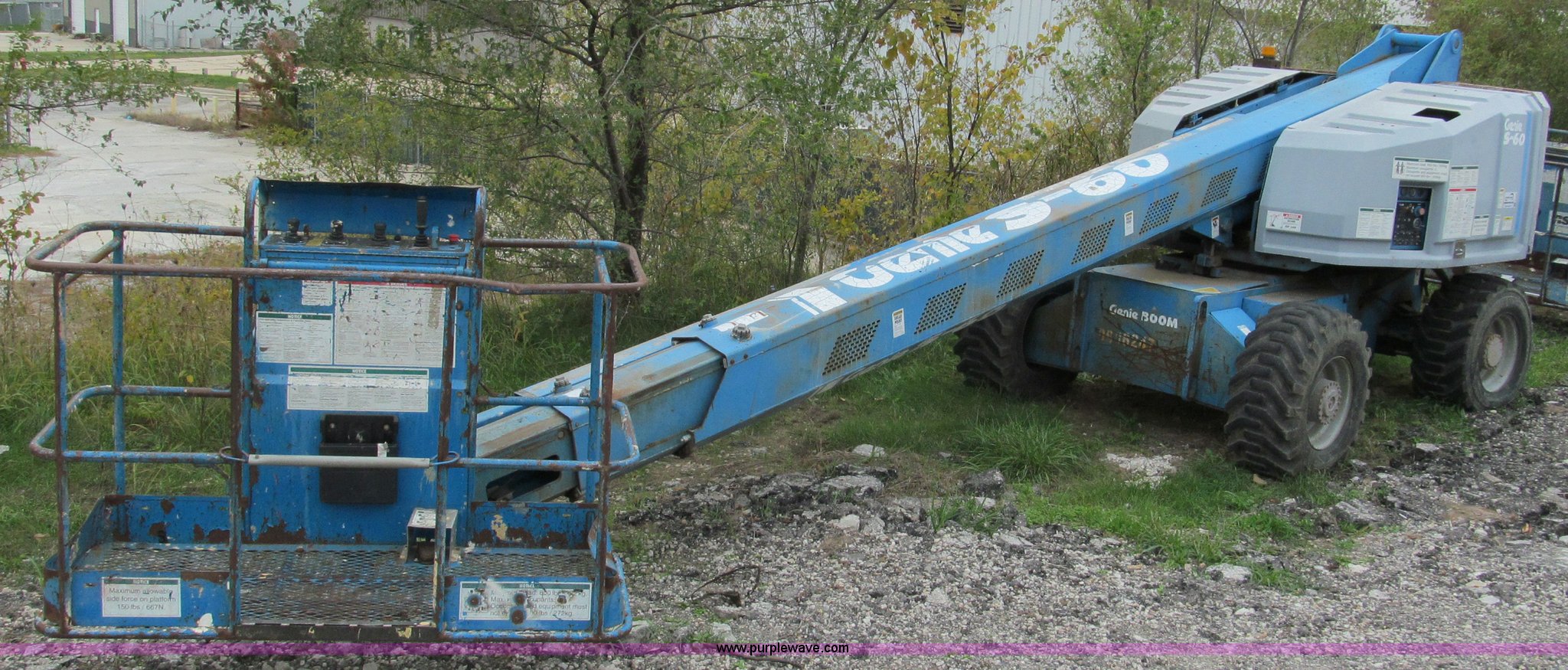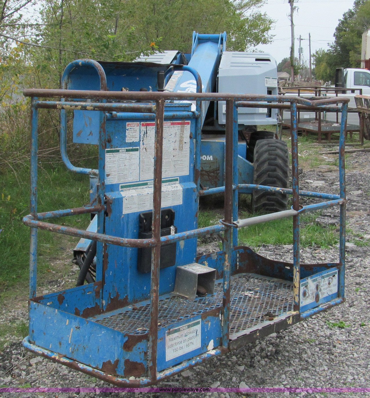 Purple Wave is selling a used Boom Lift in Missouri. This item is a 1994 Genie S60 boom lift with the following: 2,665 hours on meter, Hours meter replaced at 3,136 hours, 5,801 total hours, Deutz diesel engine, Four wheel drive, Upper and lower controls, 60' max platform reach, 70" x 3' platform, Power to platform, 660 lbs lift capacity, 25,900 lbs. base operating weight, Operational, track bracket needs repair, Serial 538