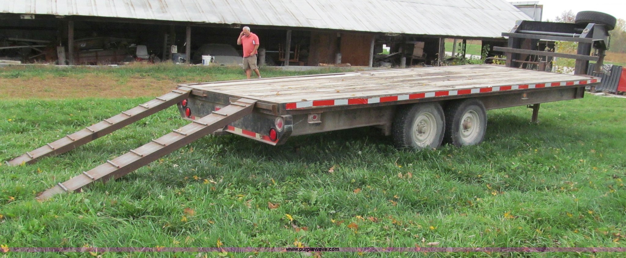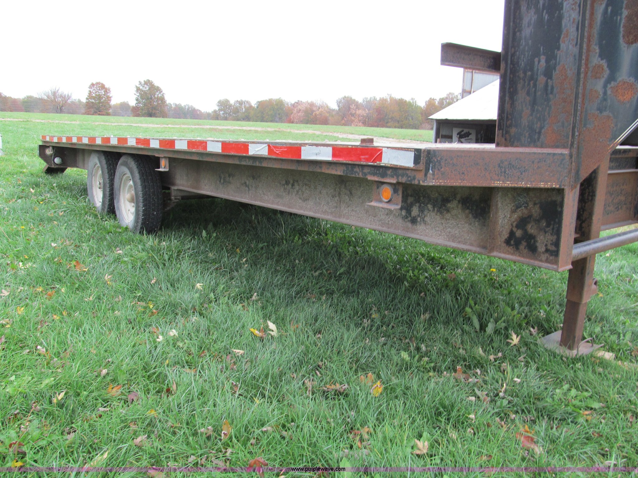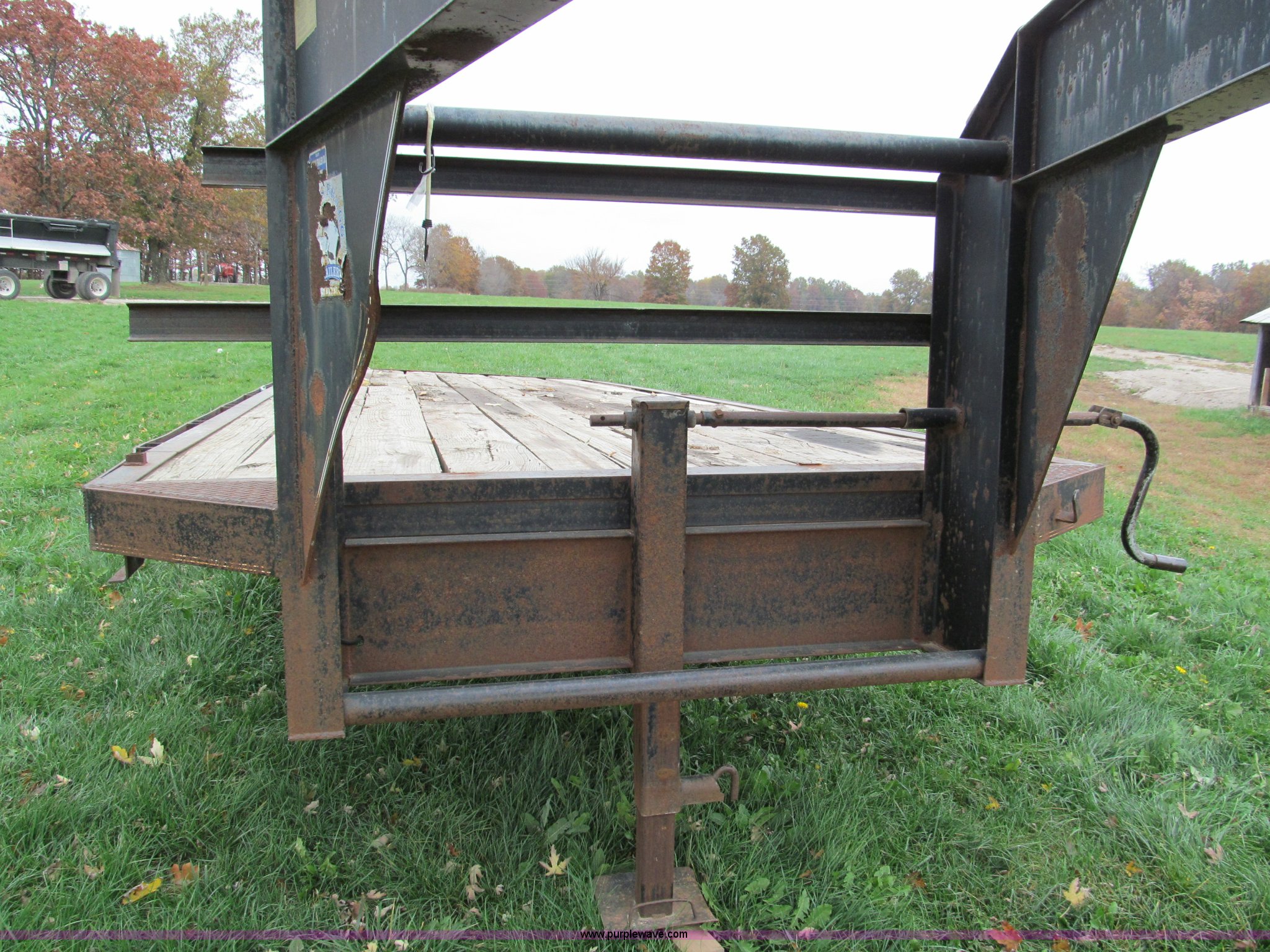 Purple Wave is selling a used Equip. Trailer in Missouri. This item is a 1998 Texas-bragg 22' gooseneck trailer with the following: Model 22-OTWGN, (2) 7'L heavy duty ramps, Wood floor, Stake pockets, Rub rail, Spring suspension, Electric bakes with safety brake away system, Brakes on both axles, Single landing gear, Dual 7,000 lb axles, 235/85-16 tires, Spare wheel and tire, GVWR 14,000 lbs