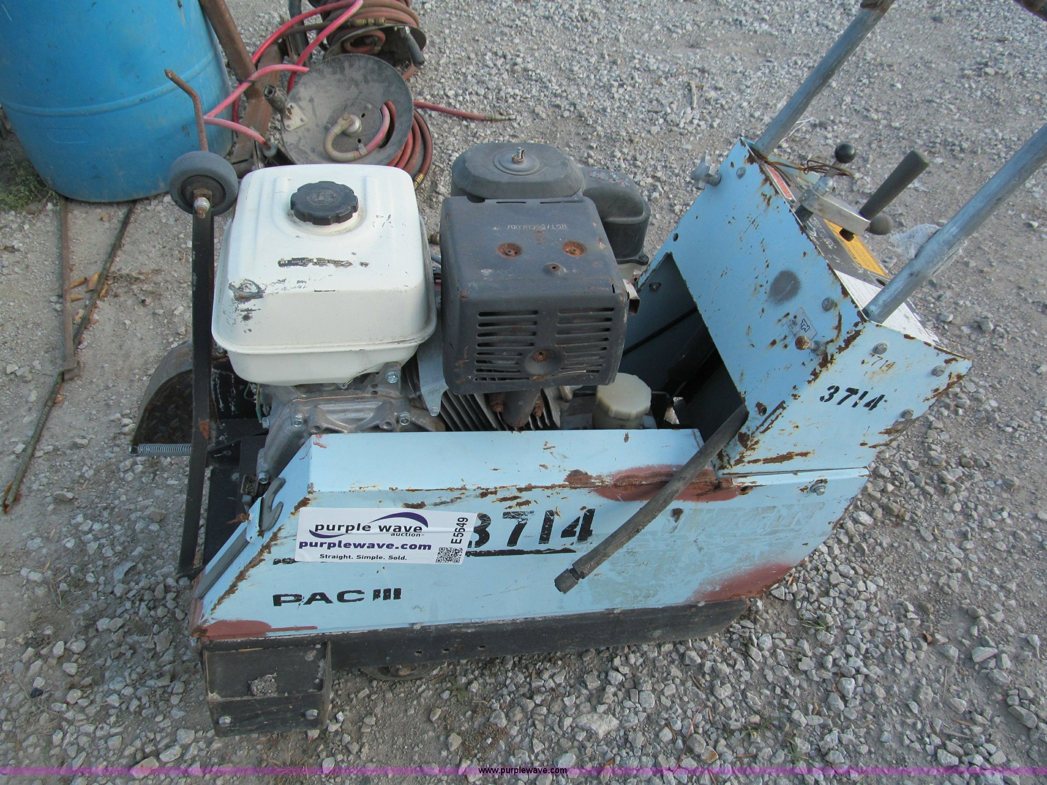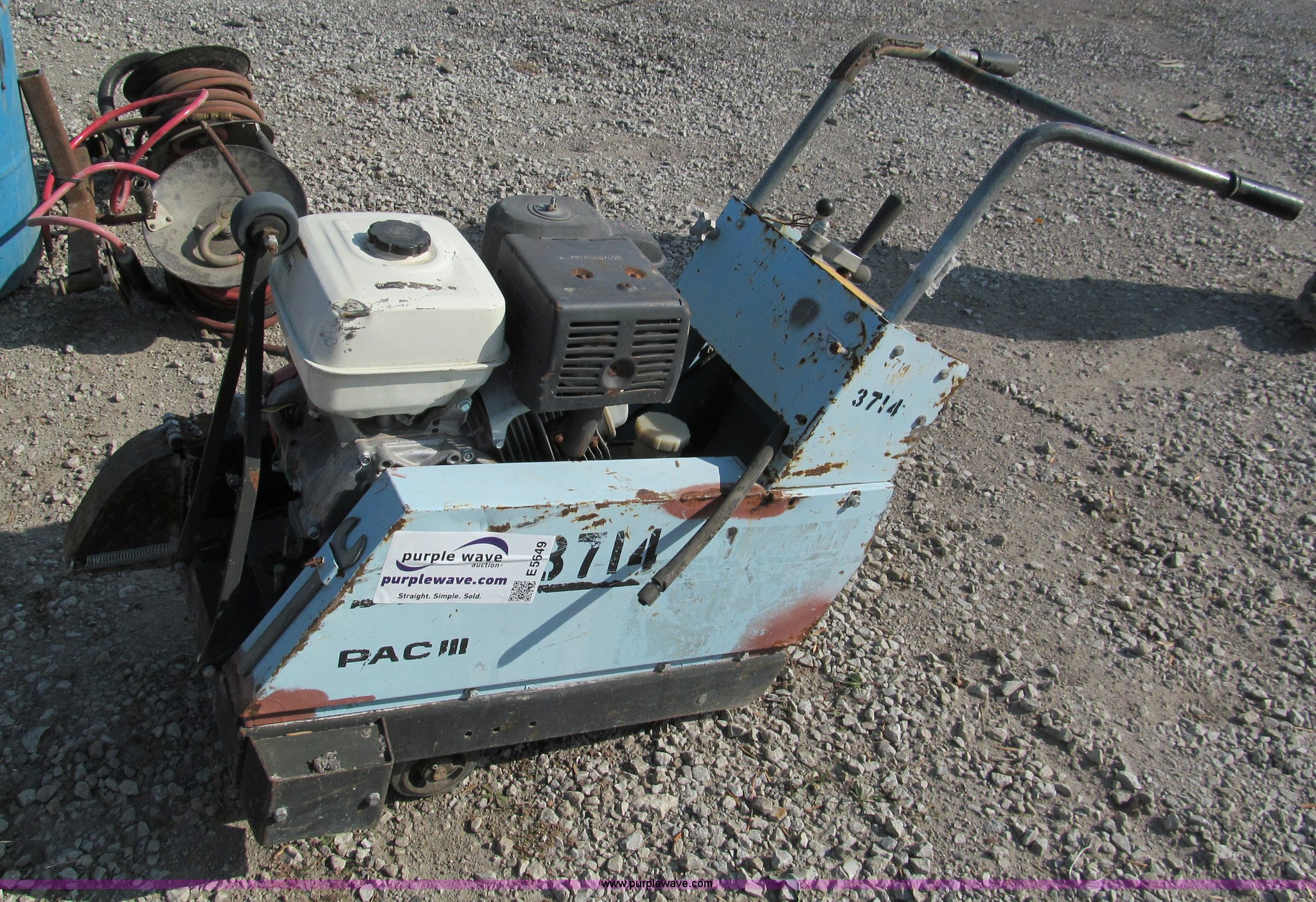 Target Pac III walk behind concrete saw. Honda gas engine Pull start, 16" blade capacity, Self-propelled, Serial 16064. Shipping quotes available. Superior Bowen Asphalt. 2501 Manchester Trafficway. Kansas City, MO 64129