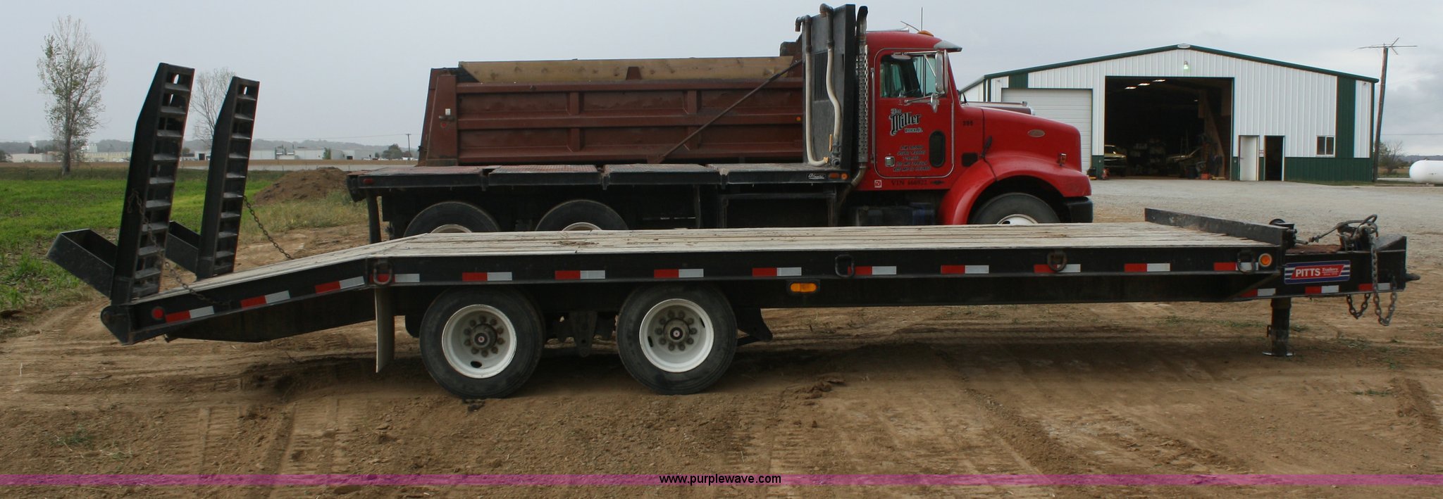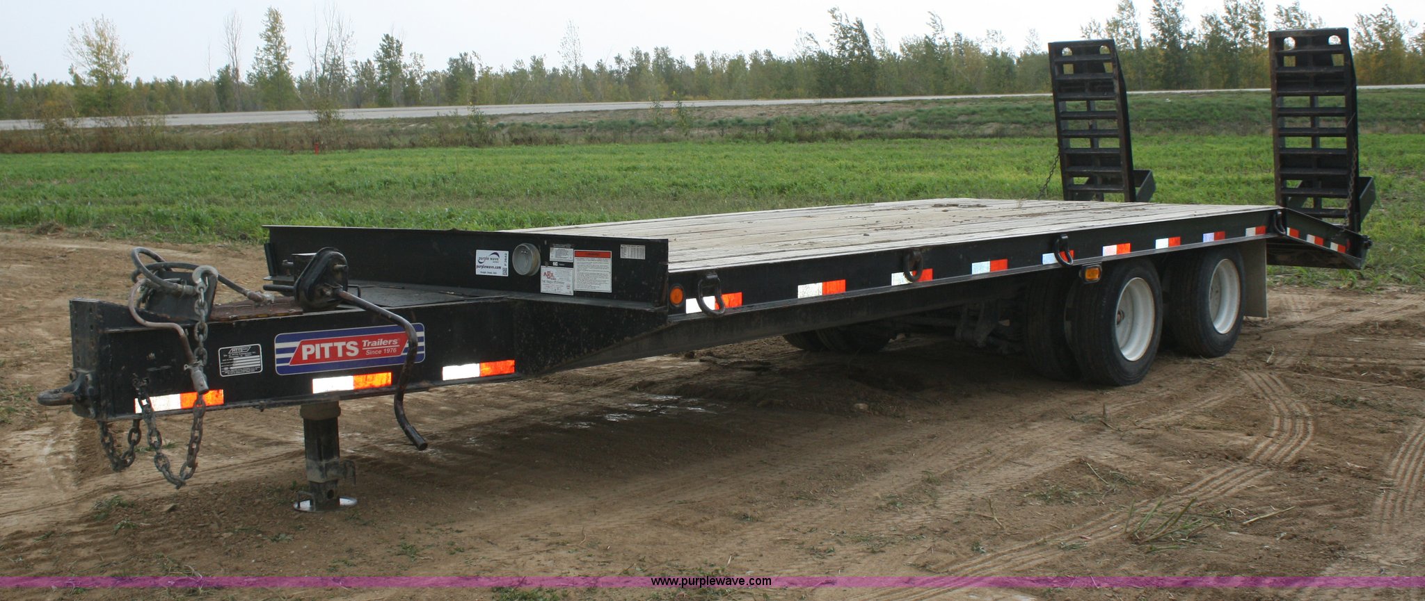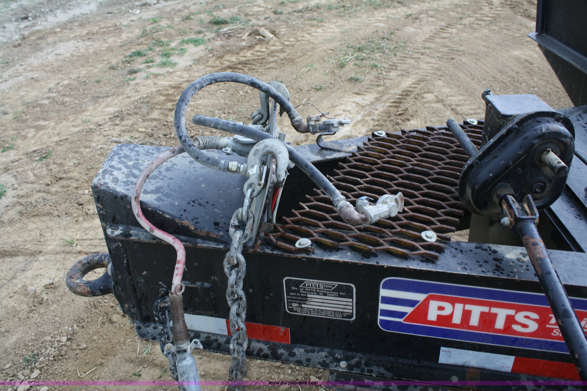 Purple Wave is selling a used Equip. Trailer in Kansas. This item is a 2006 Pitts TA20T trailer with the following: 19'L x 102"W, 5' tail, 5' steel flip up ramps, (8) d-rings, Pintle hitch, Air brakes, 215/75R17.5 tires, GVWR 48,900 lbs, GAWR 18,160 lbs