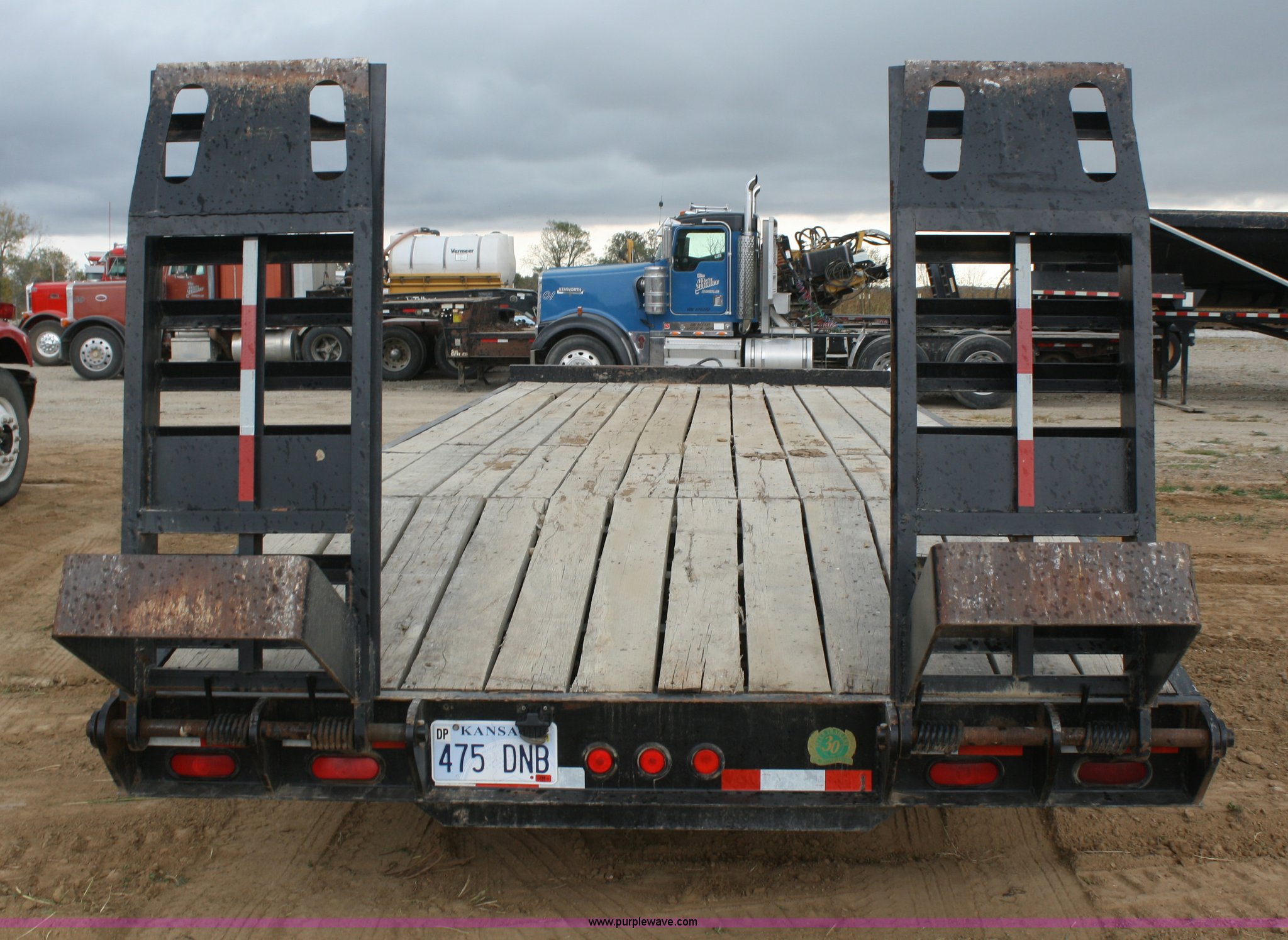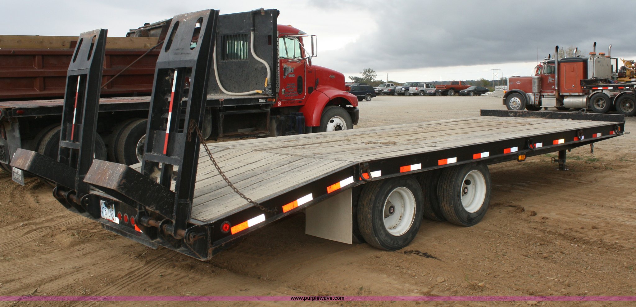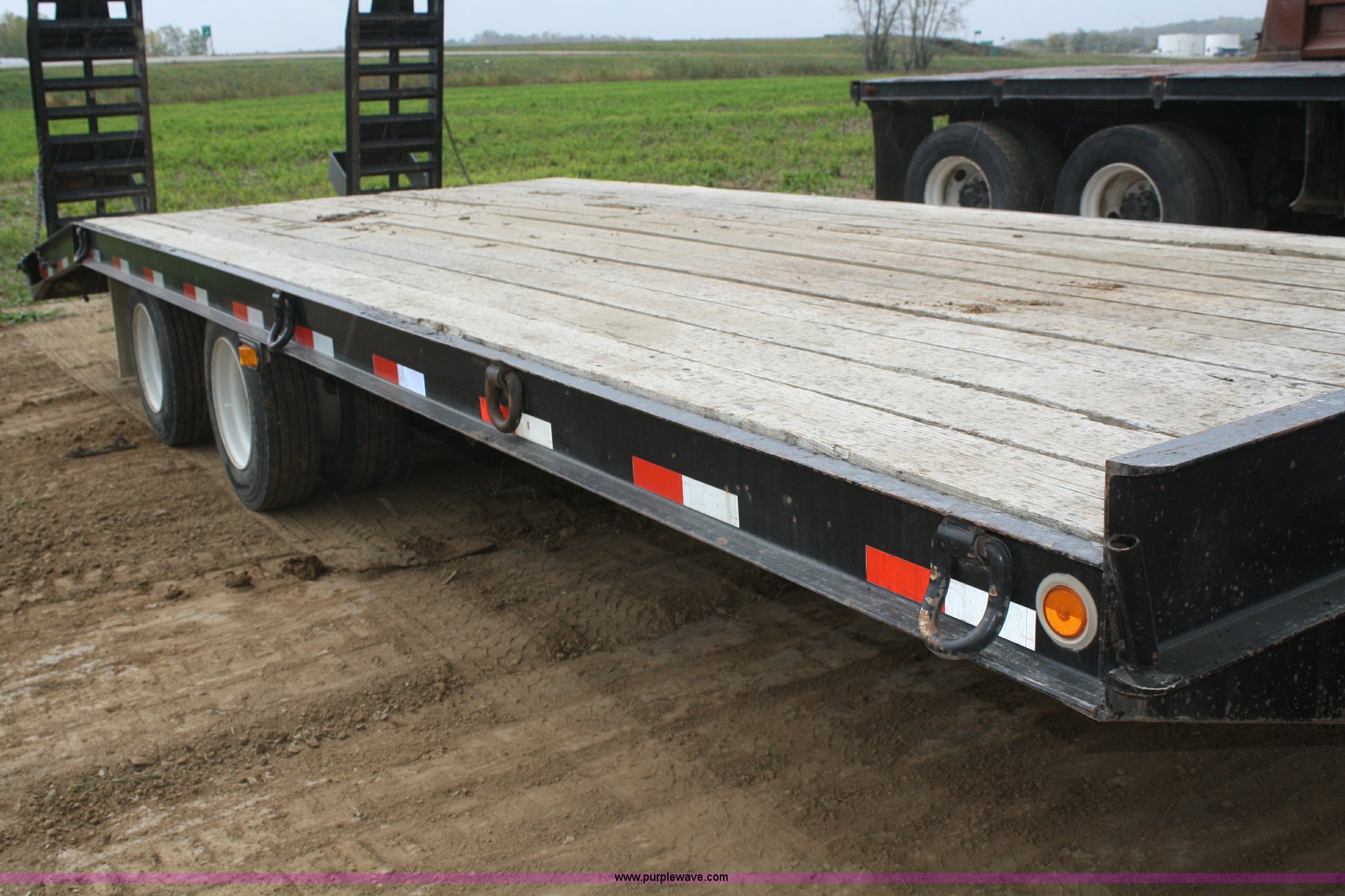 Purple Wave is selling a used Equip. Trailer in Kansas. This item is a 2006 Pitts TA20T trailer with the following: 19'L x 102"W, 5' tail, 5' steel flip up ramps, (8) d-rings, Pintle hitch, Air brakes, 215/75R17.5 tires, GVWR 48,900 lbs, GAWR 18,160 lbs