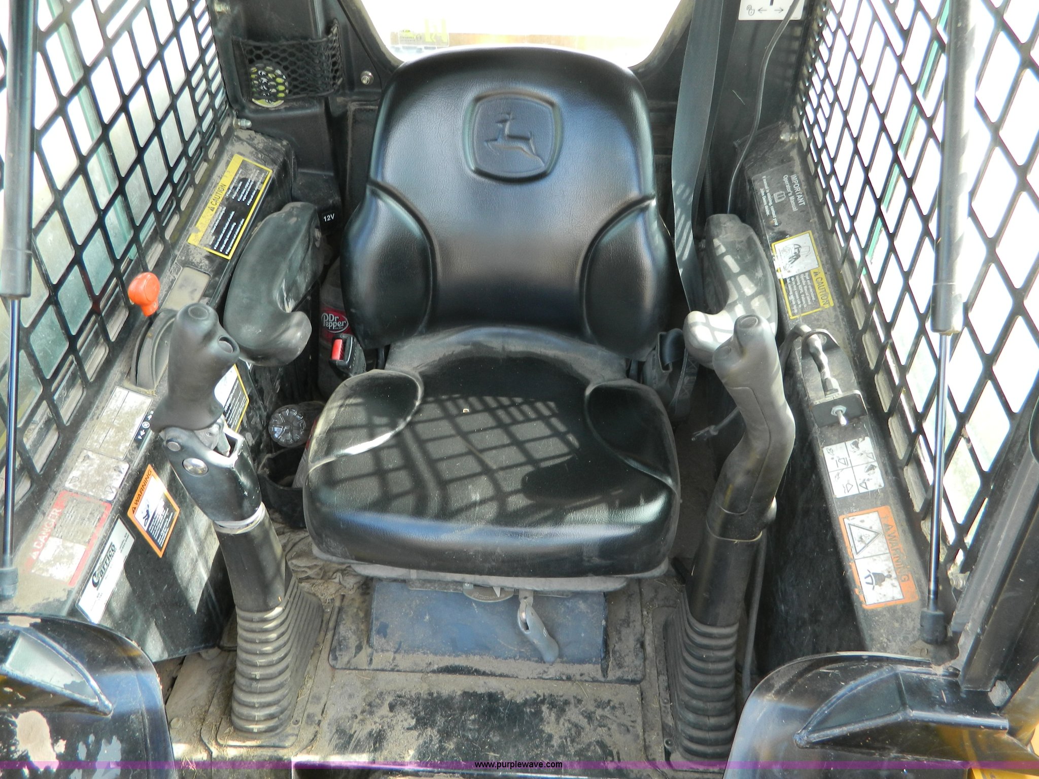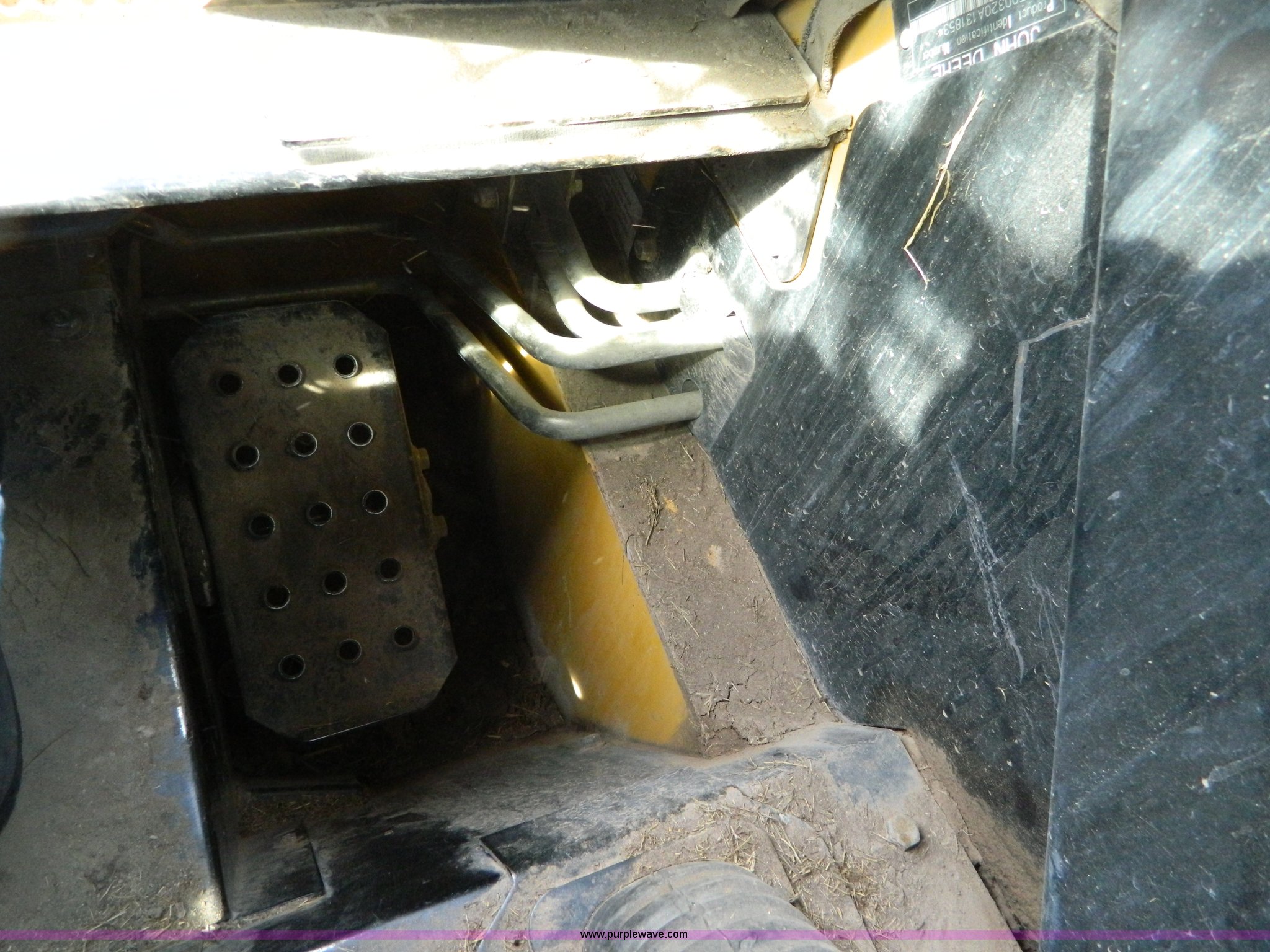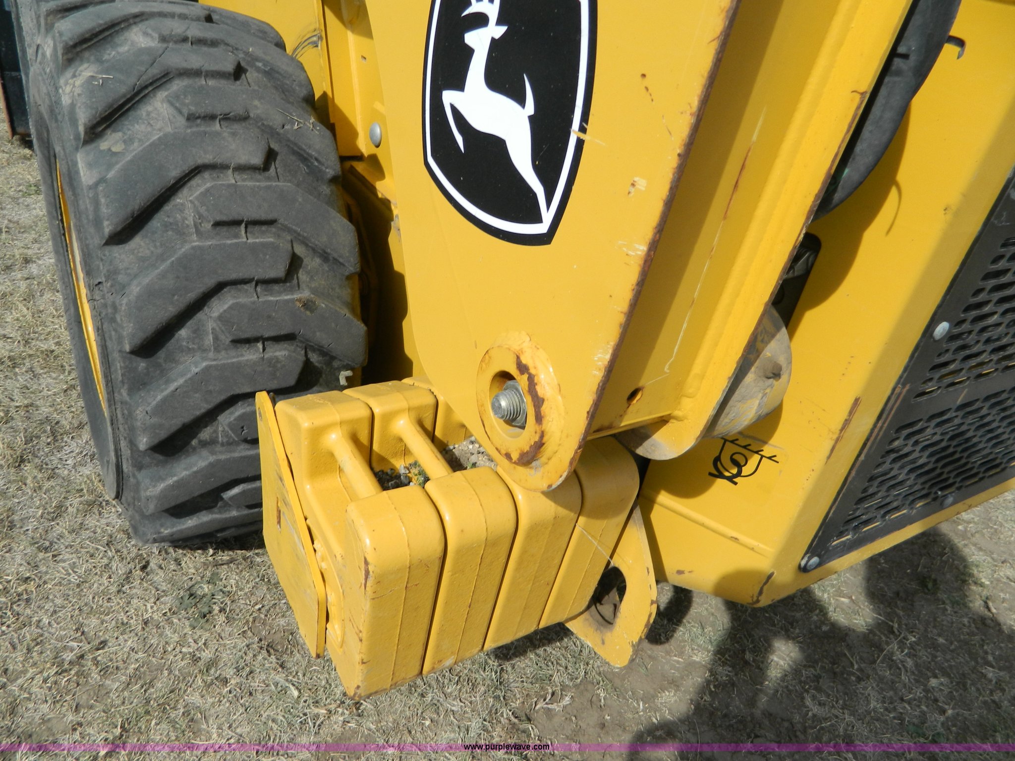 Purple Wave is selling a used Skid Steer Loader in Kansas. This item is a 2006 John Deere 320 skid steer with the following: 901 hours on meter, Hours may vary, John Deere 4024T four cylinder diesel engine, 66 HP, AC and heat, Stick and foot controls, Smooth edge bucket, C-72JD, 2,300 lb operating capacity, Rear weights, 6,435 lbs. base operating weight, 12-16.5 wide wall tires, Serial T00320A131853