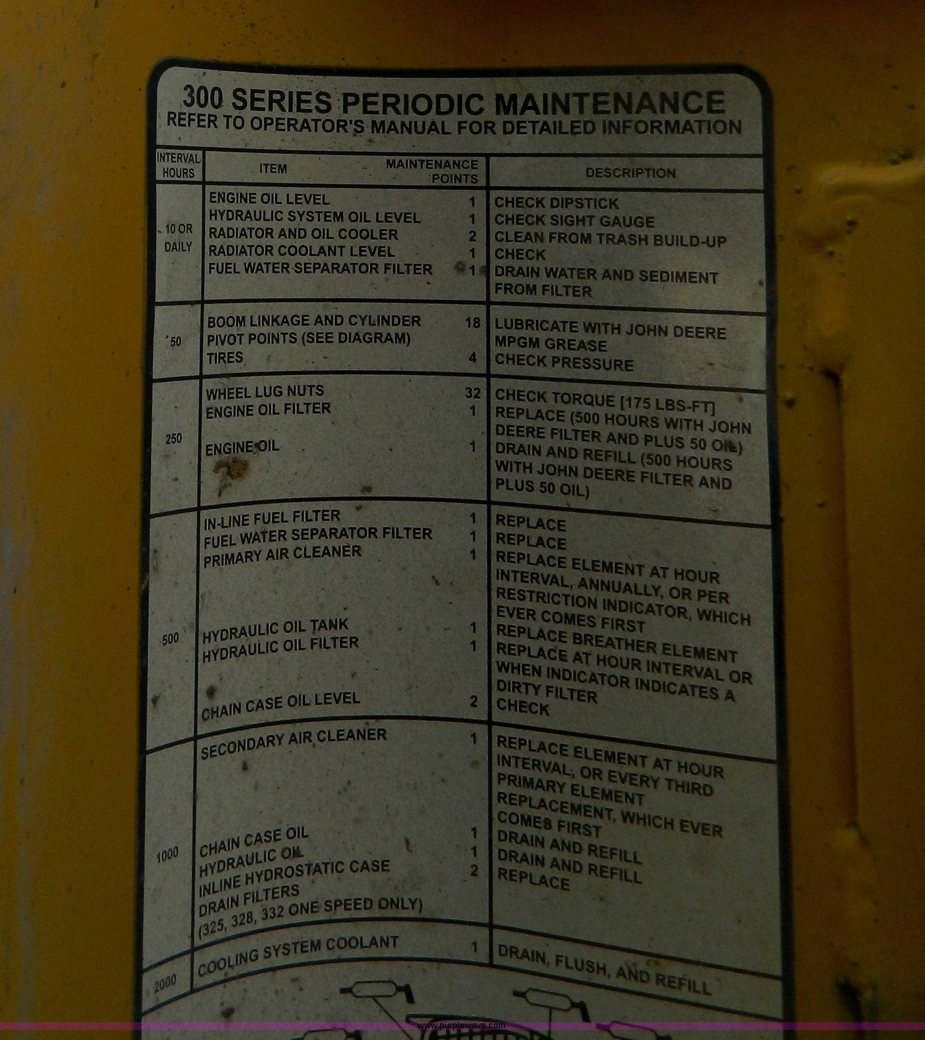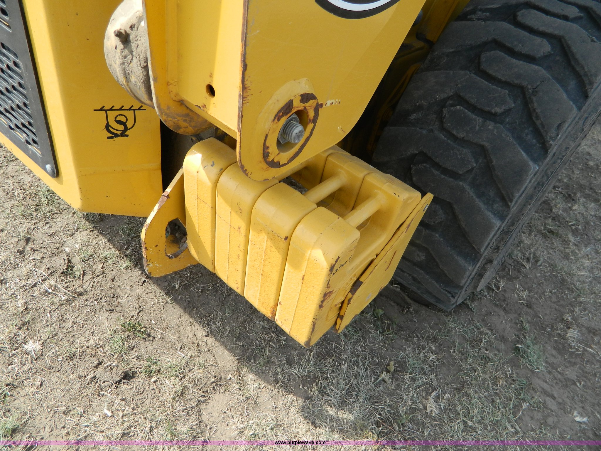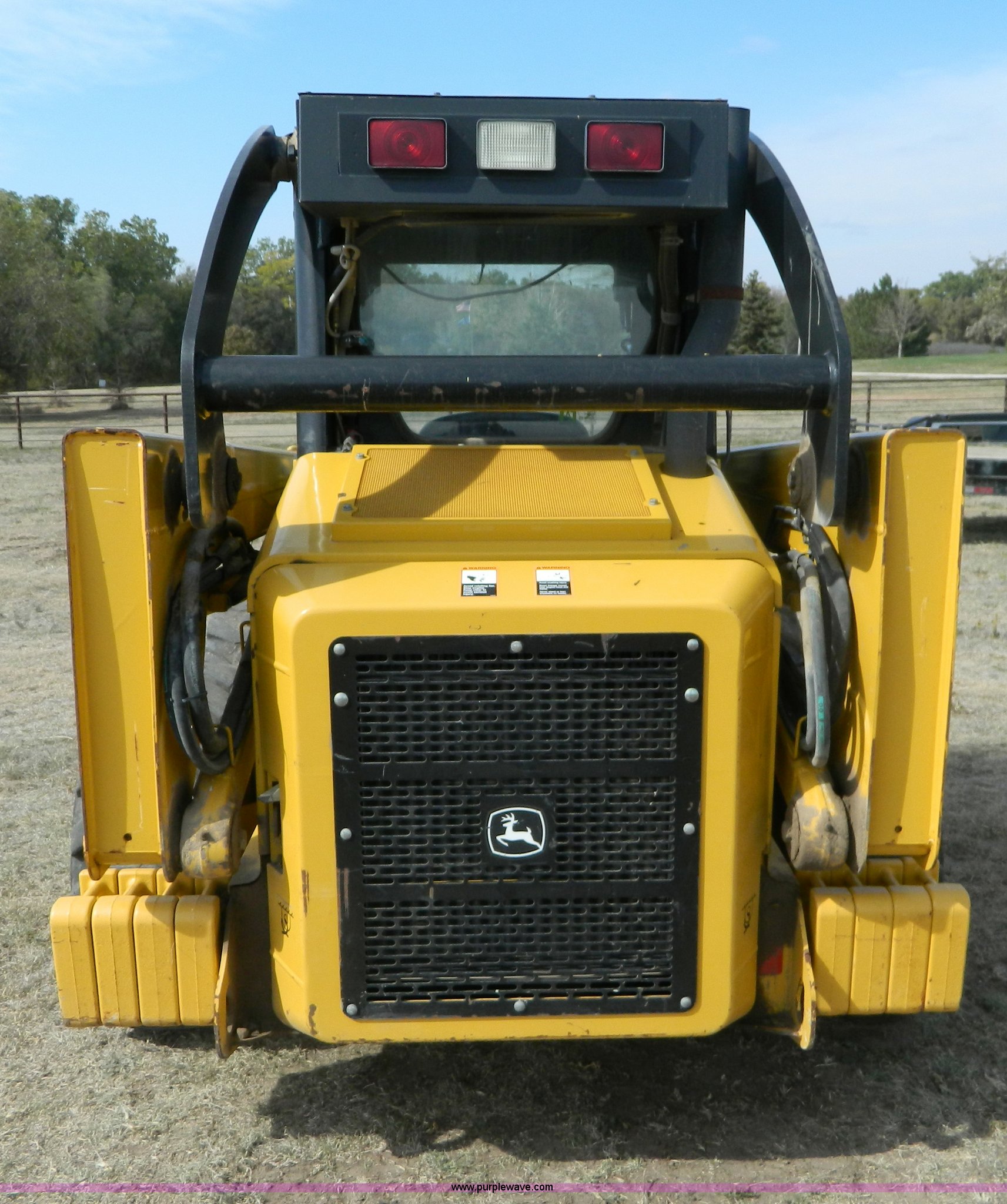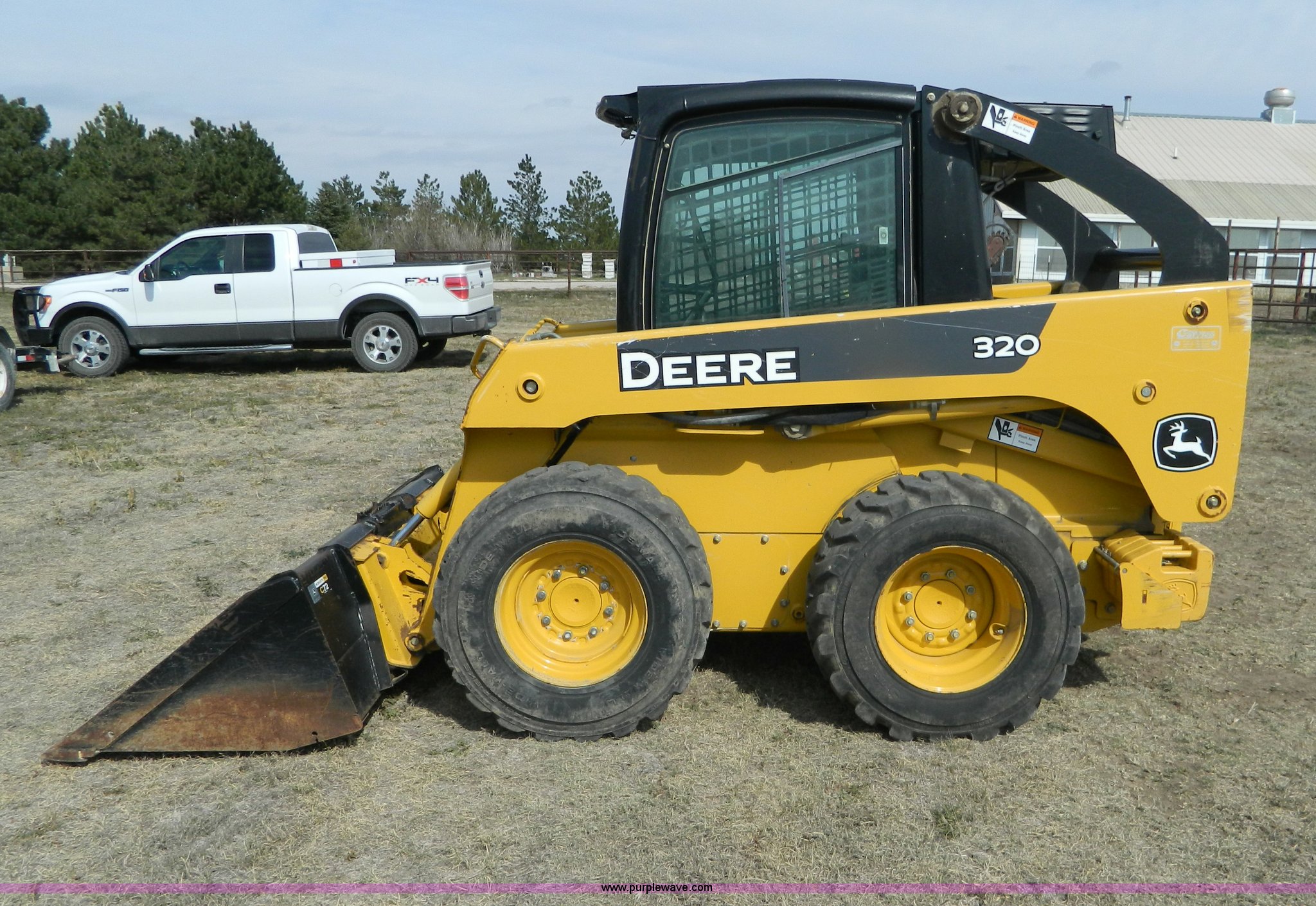 Purple Wave is selling a used Skid Steer Loader in Kansas. This item is a 2006 John Deere 320 skid steer with the following: 901 hours on meter, Hours may vary, John Deere 4024T four cylinder diesel engine, 66 HP, AC and heat, Stick and foot controls, Smooth edge bucket, C-72JD, 2,300 lb operating capacity, Rear weights, 6,435 lbs. base operating weight, 12-16.5 wide wall tires, Serial T00320A131853