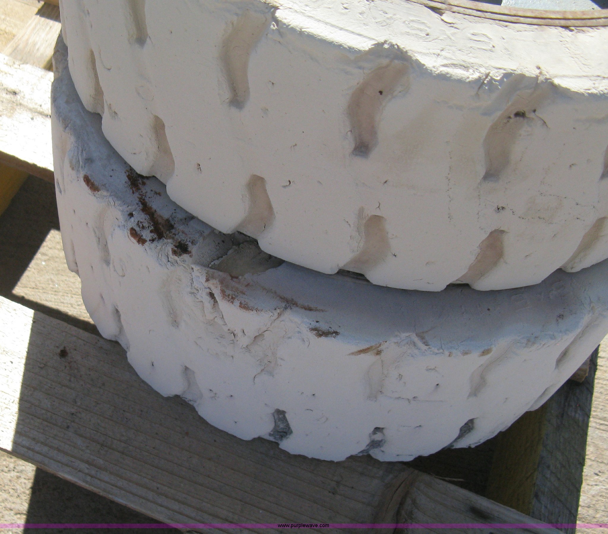 Purple Wave is selling a used Industrial Tires or Tracks in Kansas. This item is a ITL scissor lift hard tires with the following: 381 x 127 x 286, Fits Genie GS 20, 26, 32 scissor lifts