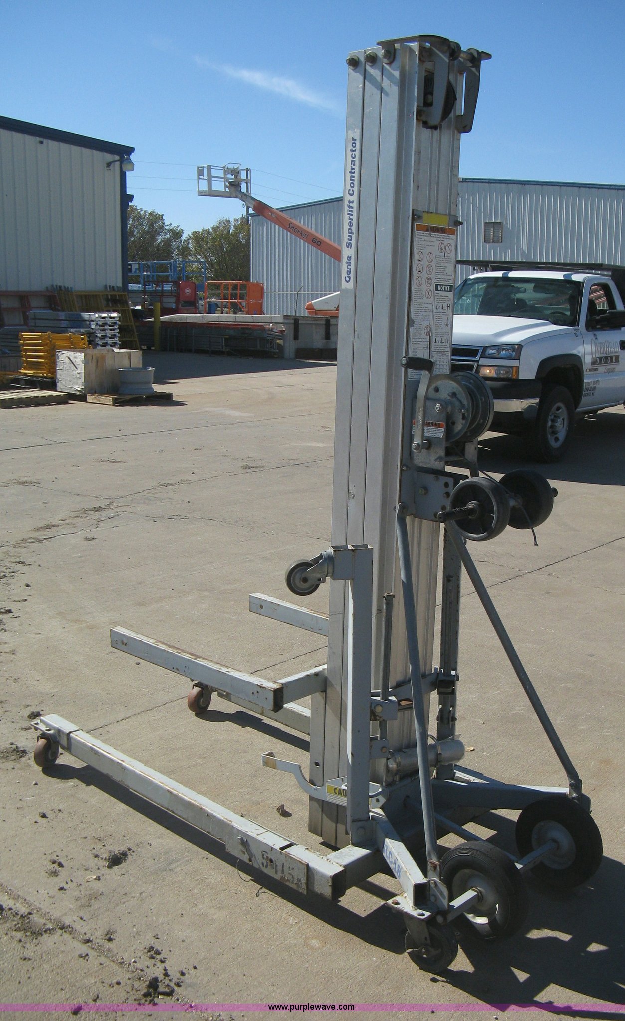 Take a look at this used Geinie Superlift contractor SLC-18 material lift being sold on November 15th, 2012 in the SOLD! Thursday November 15 Construction Equipment Auction made by Geinie. Take a look at all of the item information below or take a look at similar auctions for Aerial Lifts.